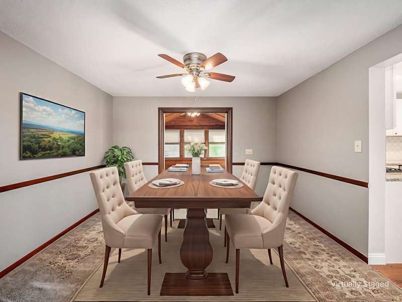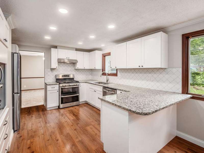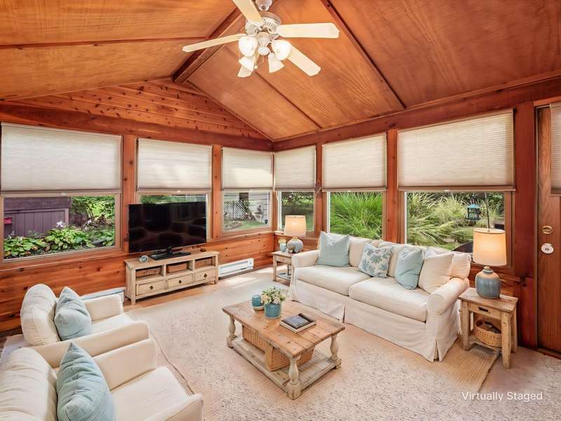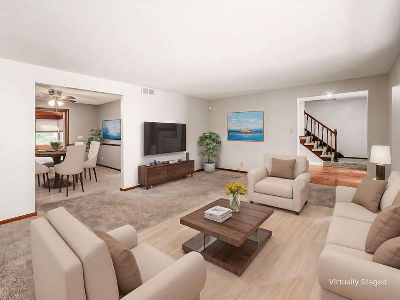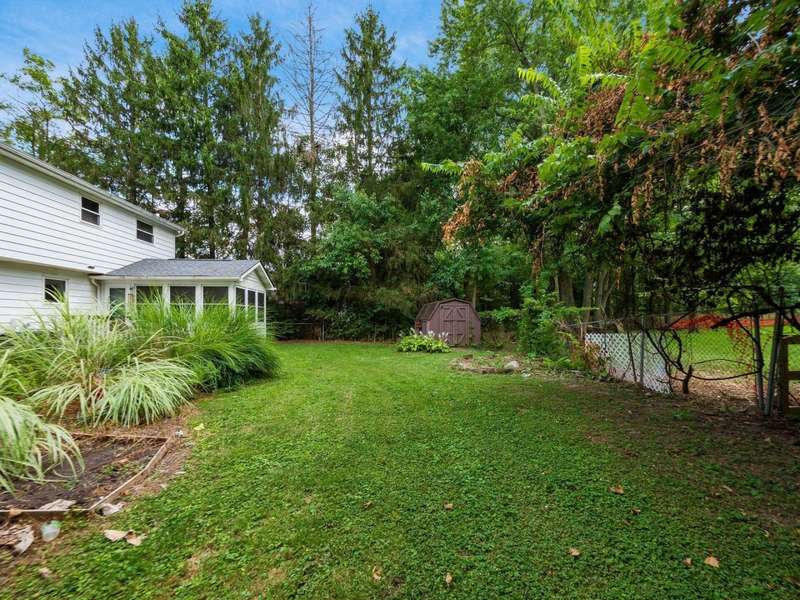 This stunning property offers five spacious bedrooms and three and a half bathrooms, including a beautifully updated primary bath (2021). First floor includes entry foyer, large light filled living room, formal dining room, and a newly updated kitchen featuring new appliances and granite countertops (2024) that opens to an eating area and family room, perfect for modern living and entertaining. Enjoy the four-season room, ideal for year-round relaxation, and the back patio, perfect for outdoor gatherings. The covered front porch adds charming curb appeal. Additional highlights include a partially finished lower-level (Basement Doctor waterproofing system installed with transferable warranty), a two-car attached garage, a new air conditioning system (2024), and fresh interior paint throughout (2025). New roof installed June of 2023. Fenced yard with storage shed. This move-in-ready home combines comfort, style, and practicality in a desirable quiet street. Prepare to be impressed!