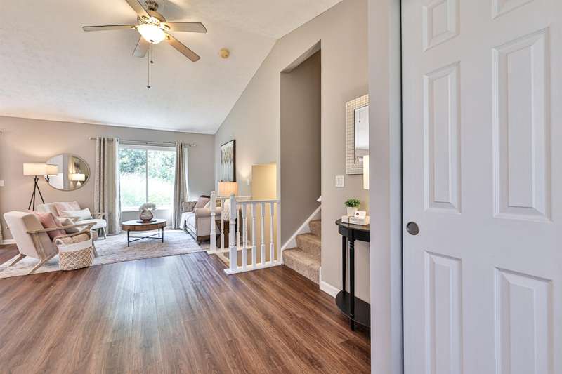 Bright and immaculate! Vaulted ceilings, custom newer kitchen w/bay window. Large flat wooded back yard. Great location to shopping parks and school. Hot Water Heater 2019 HVAC 2017 Sump Pump 2017 Back Windows and Slider 2016 Roof 2011 Leaf Guards 2022 Plumbed for Wet Bar. Washer & Dryer.