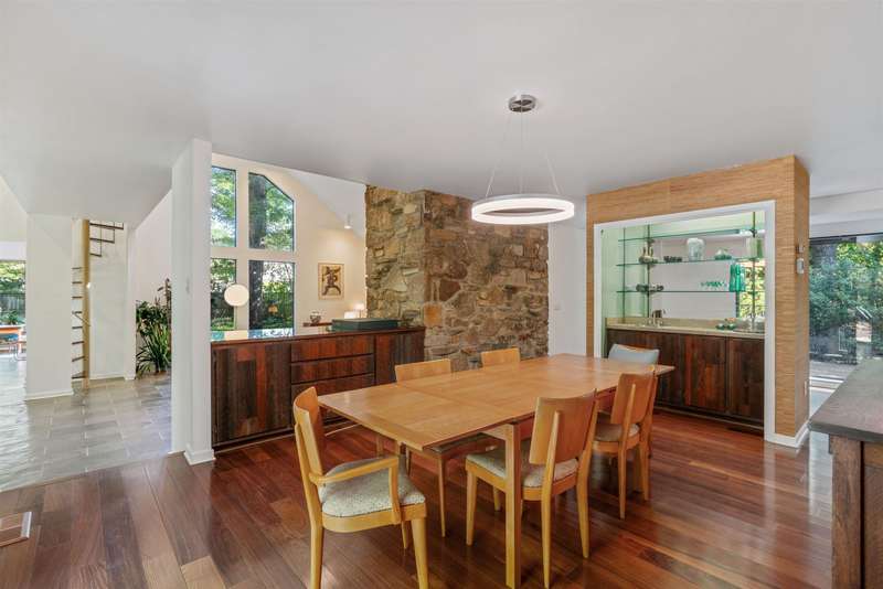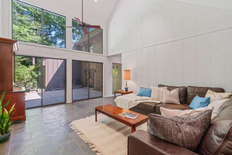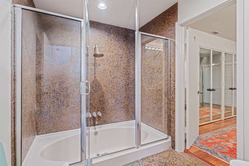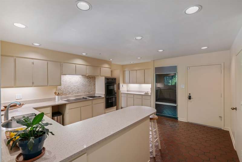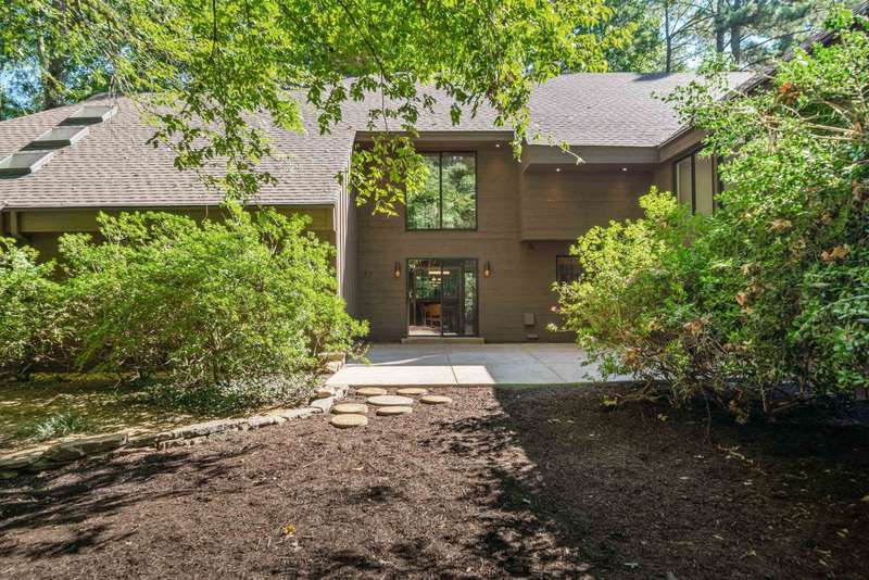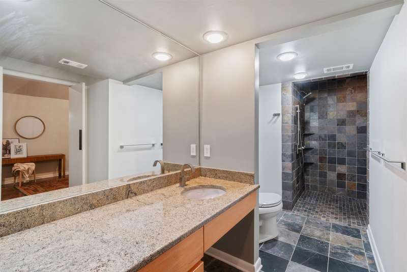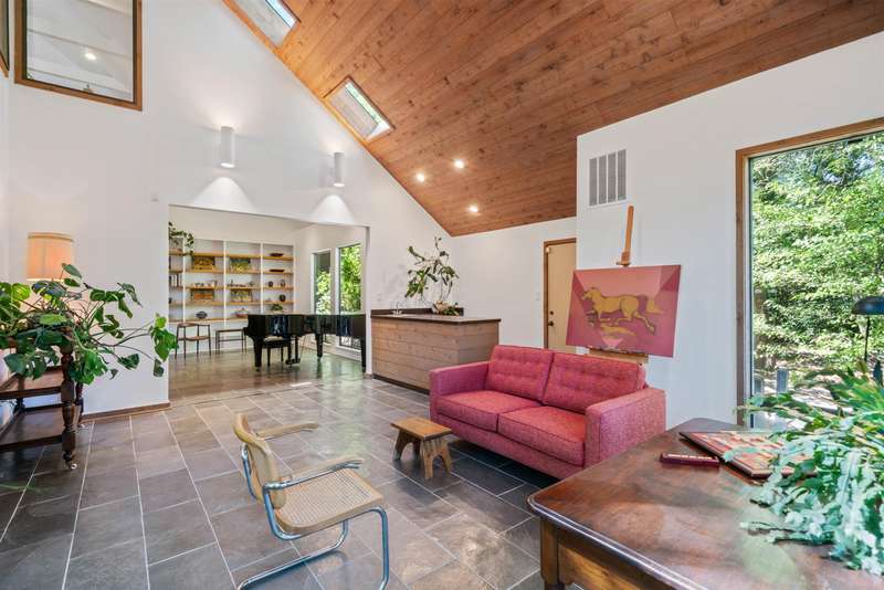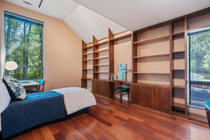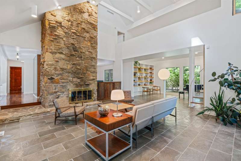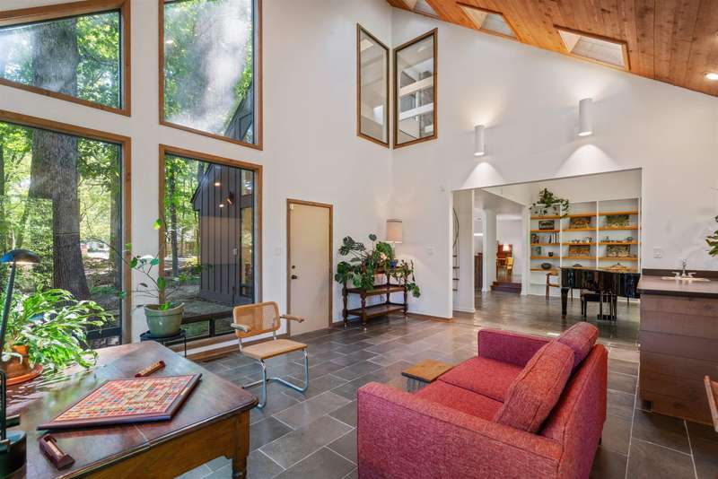 Your River Oaks refuge awaits—Arrive over a stone bridge to a modern retreat in harmony with nature, balancing drama and warmth. Soaring ceilings in the living room with lush views from every angle. The dining room and den open to the patio for indoor/outdoor entertaining. The low-maintenance landscape means you can spend your time enjoying the outdoors, not mowing it. Brazilian hardwood and limestone floors are so durable. The downstairs guest suite was designed for accessibility. Come up to your spacious primary with a balcony overlooking the front of your estate, and a huge window over the back. With a fireplace and bookcases, you could spend hours here. When you do have to get dressed, enjoy the large shower and dressing area with extensive closets and a double vanity. Grab a bottle of wine from the locking wine closet, passing the new induction cooktop, double ovens, and Sub-Zero fridge on your way out to the garage, or detour through the pantry and large mudroom.