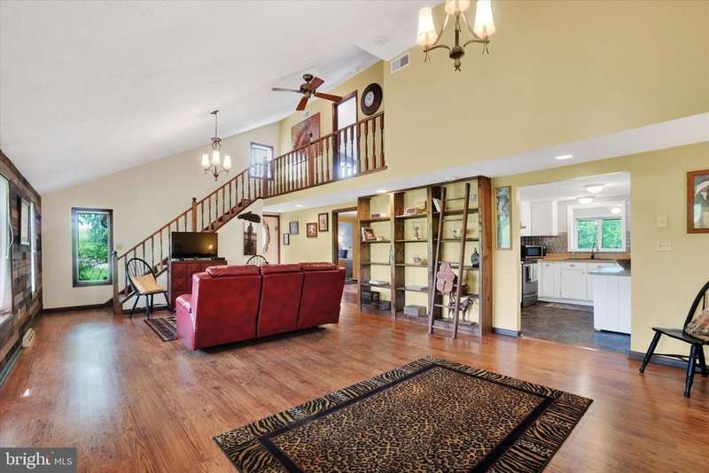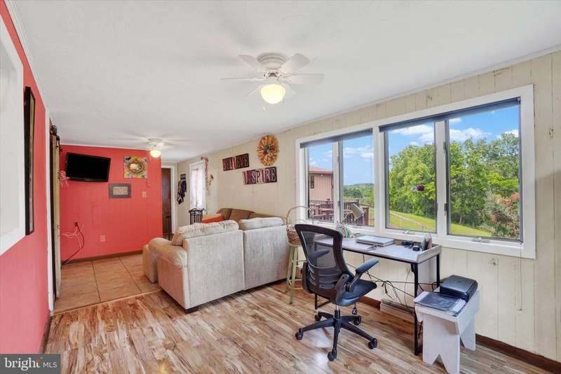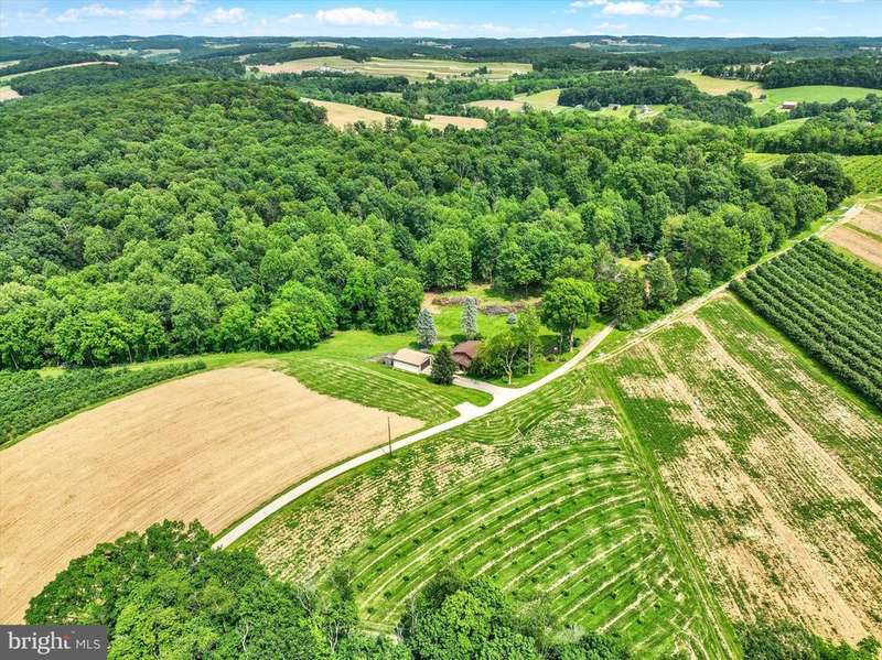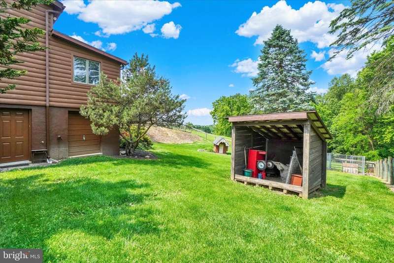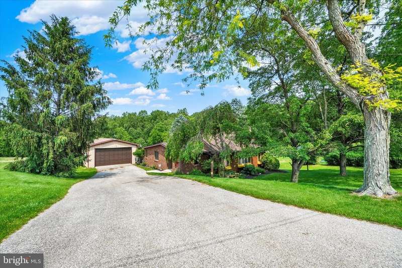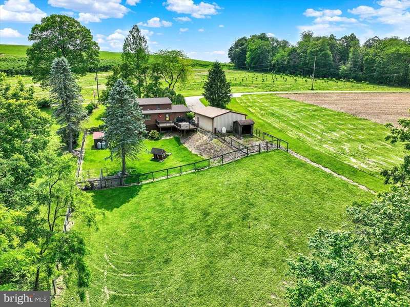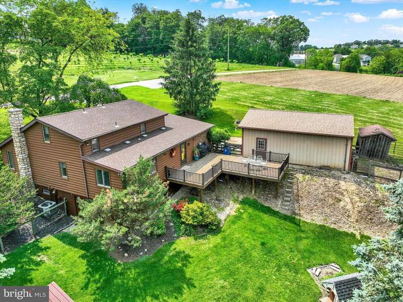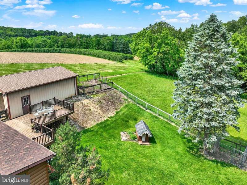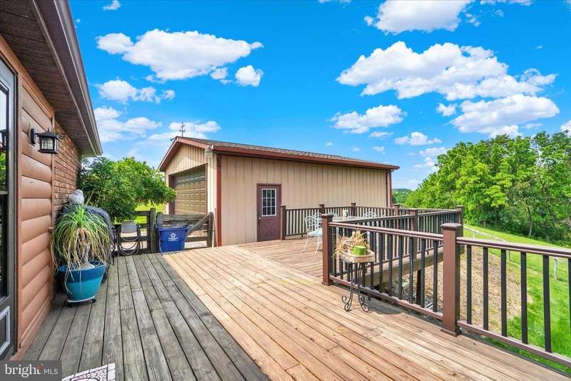 Come home from the hustle and bustle of your day and drive down the 1/4 mile long driveway among strawberry fields and fruit trees to a very private setting for the rest of the day. This fine home is log and brick sided with a huge 466 sq. ft. deck overlooking sheer privacy and a fenced rear yard for the pets. Inside you'll find first floor living with a large cathedral ceiling and lots of windows for light. There's a first floor primary bedroom with huge closets and a great primary bath. (It's nice). On the upper level is two bedrooms and another full bath with a railing overlooking the living room. Lower level has a large family room with a flue if you want to burn a wood or other kind of stove. Another built in garage down there big enough for motorcycles or other toys. Fenced in yard with pens for the pets. There is a large 4 car detached garage too with a loft for storage and shop workbench. Roof on the garage and house are newer, deck is updated. Heat is propane with heat pump. Septic always pumped as required. The home is well kept, the lawns and exterior are well groomed also. This is a wonderful place to call home for those who just want to get away and hang out. Survey stakes well mark all the sides of the two parcels that make up the .958 acre lot. No drive by looks, appointment required to view the property. Call for an appointment, this home is a must see. New septic tank recently installed and the sellers disclosure has been updated to reflect repairs.