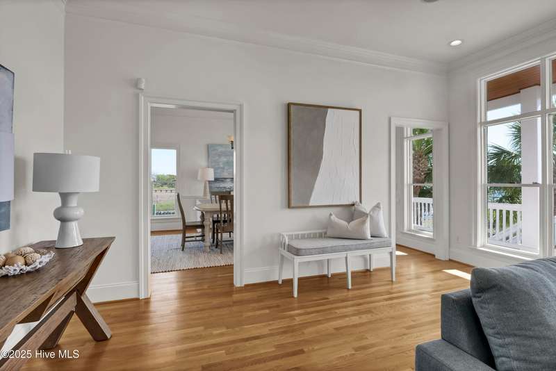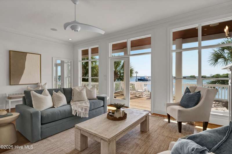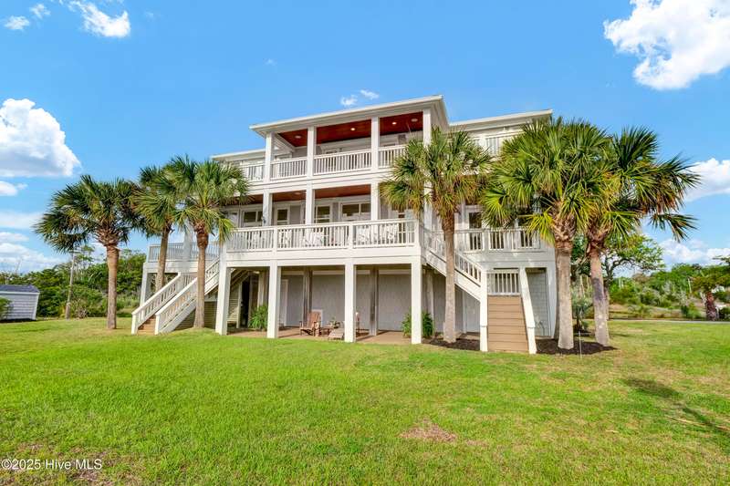 Boaters Paradise! Set on 4.9 private acres with over 260 feet of direct frontage along the Intracoastal Waterway, this exceptional home offers panoramic views of lush marsh, Masonboro Island, and an unmatched coastal lifestyle. Custom built by Eddie Collins, this three-level residence effortlessly blends timeless craftsmanship with modern functionalityall just steps from the water.At the heart of the property is a private dock system, featuring two boat slips with liftsone rated for 12,000 lbs, the other for 6,000 lbscomplete with shore power and a spacious landing area ideal for entertaining or preparing for a day on the water. An additional 24' x 9' floating dock provides easy access for small boats, paddleboards, and water sports gear, enhancing the home's appeal for active coastal living.Inside, the home offers four bedrooms, two flexible bonus rooms, and a first-floor primary suite. Elegant finishes include hardwood flooring, tile baths, crown molding, and custom built-in shelving in a cozy den. A residential elevator provides easy access to all levels, while metal retractable hurricane shutters on the north and east-facing windows offer security and peace of mind during storm season.Outdoor living is elevated with 400 square feet of covered ground-level deck, ideal for entertaining, and expansive double-decker porches that frame uninterrupted coastal views. The estate also features three oversized garages plus over 400 square feet of additional enclosed storageperfect for gear, equipment, or a workshop.Additional highlights include a reverse osmosis water system, central vacuum, outdoor shower, and a well water system serving both the home and the irrigation system. Septic system is off site.This is a rare opportunity to own a refined, turn-key waterfront retreat with deep-water access, exceptional privacy, and world-class boating infrastructureideally positioned along one of the East Coast's most sought-after coastal corridors.
