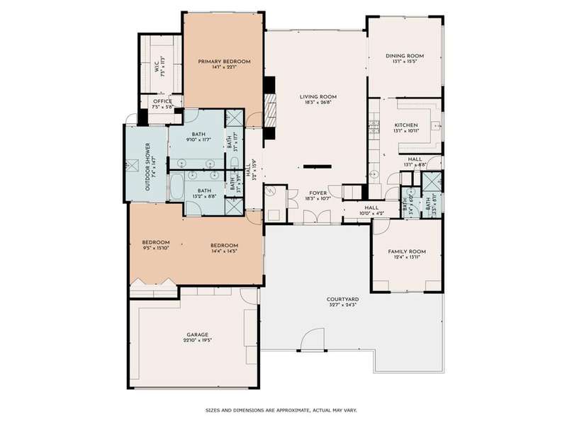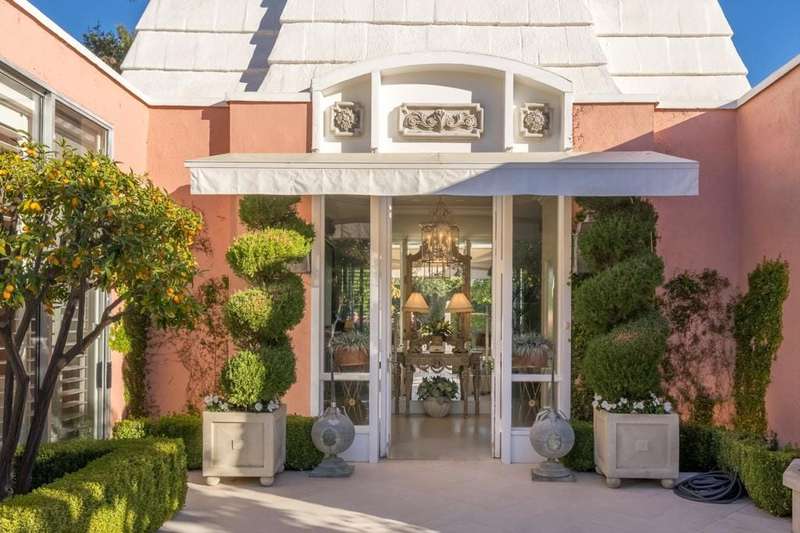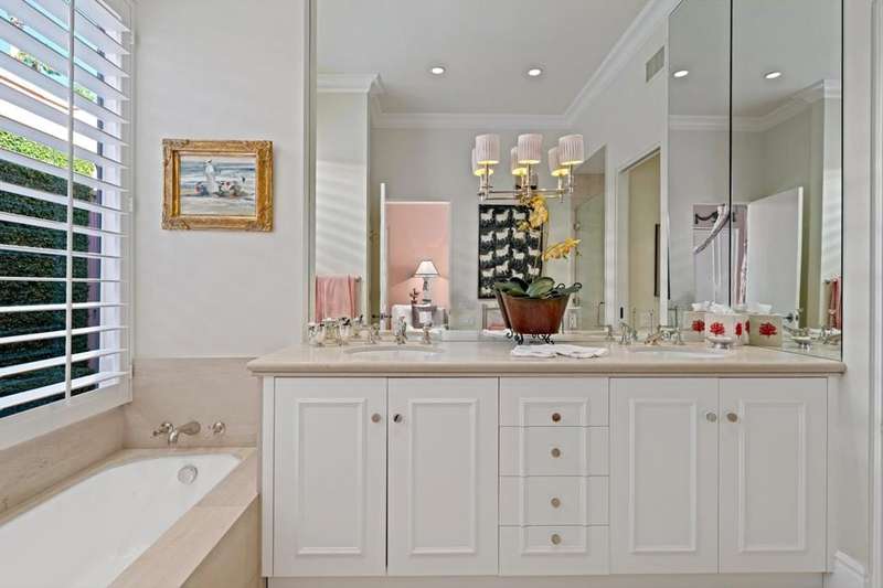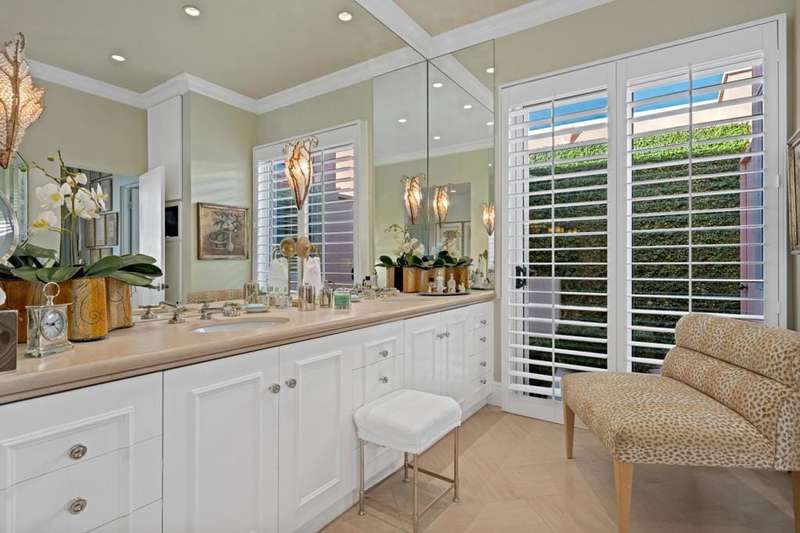 Welcome to Marrakesh Country Club, the '' Jewell of The Desert''. This extensively updated 3BA 3BR villa was designed by John Elgin Woolf, the patriarch of the Hollywood Regency Design and is currently owned by a prominent interior designer as evidenced by the many high quality upgrades. It overlooks a quiet greenbelt area, steps away from one of 14 community pools with spas and off street parking. The large private front European style courtyard has a fountain, a sitting area with great views of Eisenhower Mountain and filled with Lush plantings including fruit trees to enjoy. All the original floor plans at Marrakesh have an attached atrium. This atrium has an outside shower that is accessible from the master bathroom. The Pullman style main entry doors open to a luxuriously appointed large living room which features a traditional fireplace and ten foot ceilings throughout. The interior features a formal dining room, three en-suits, one of which has been converted to a cozy den, a small office and lots of closet space. The garage has an air cooling unit and soft water equipment. The photos tell the story. The Marrakesh Club House recently completed a major renovation designed by the renowned designer Tom Scheere. It has an up to date fitness center , a fully staffed golf pro shop , casual and fine dining with great golf course and mountain views,. It is spectacular. This is your chance to to become a part of the acclaimed Marrakesh Country Club Lifestyle