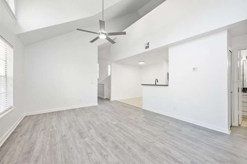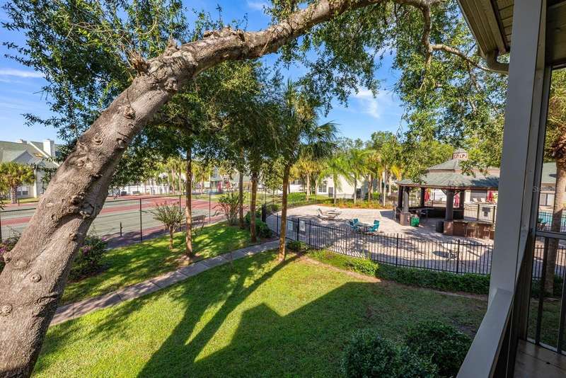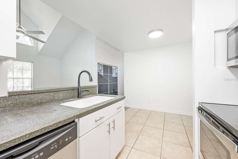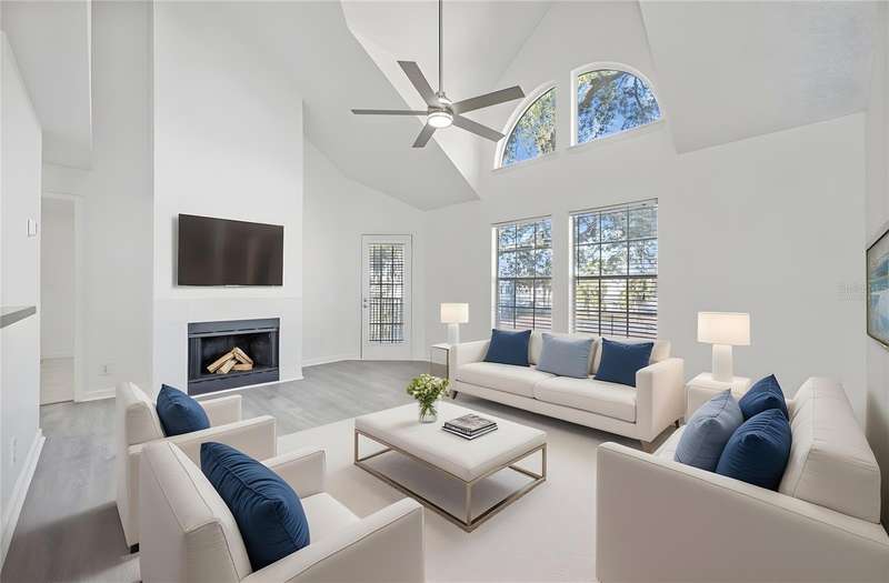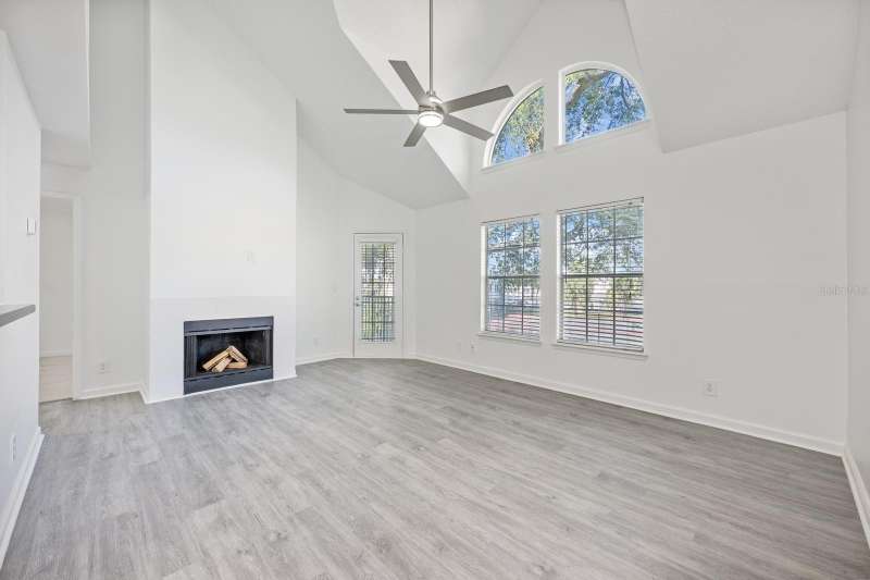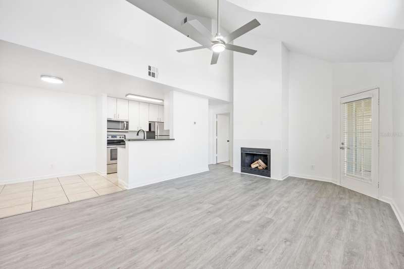 One or more photo(s) has been virtually staged. **Seller may consider buyer concessions if made in an offer**Welcome to this stylish CORNER-UNIT condo that lives more like a townhome, offering the perfect combination of privacy, comfort, and convenience in a GATED community. With 2 bedrooms, 1 bath, and a spacious open layout, this MOVE-IN READY home is filled with natural light and modern touches throughout. Recent updates provide peace of mind, including FRESH INTERIOR PAINT, a NEW AC (2024), and REPIPING (2019). Enter through your private entrance and head up the beautiful WOOD STAIRCASE to the main living level—where you’ll find NO NEIGHBORS ABOVE and a welcoming space that feels both open and airy. The Living area showcases LUXURY VINYL PLANK FLOORING, vaulted ceilings, and large windows, including a beautiful ARCHED FEATURE WINDOW that fills the home with sunshine. A modern electric fireplace adds warmth and character, while a 15-lite clear glass door leads from the Living area to a COVERED, SCREENED BALCONY with a ceramic tile floor, storage closet, and RELAXING VIEWS of the clubhouse, pool, and tennis courts. The Kitchen is complete with crisp white cabinetry, modern stainless steel appliances, stone countertops, a breakfast bar, and CERAMIC TILE FLOORING—creating a perfect blend of form and function. The Dining area sits nearby, ideal for enjoying meals with a view or entertaining guests.The Primary Bedroom is conveniently located on the main floor and includes a WALK-IN CLOSET, while the updated full bath sits nearby for easy access. A laundry closet with shelving is hidden behind TINTED GLASS DOORS, blending practicality with style. Upstairs, a VERSATILE LOFT with a closet offers the ideal space for a second bedroom, guest room, or home office, complete with matching luxury vinyl flooring. Outside, the corner-unit location provides a GENEROUS SIDE YARD for added privacy and a touch of green space—rare for condo living. Enjoy a RESORT-STYLE LIFESTYLE with fantastic community amenities, including a SPARKLING POOL, fitness center, tennis courts, playground, and clubhouse. The community fee also covers water, trash, and grounds maintenance, giving you more time to relax and enjoy your surroundings. PERFECTLY SITUATED near Downtown Orlando, Winter Park, Baldwin Park, Valencia College West, and Universal Studios, you’re just minutes from shopping, dining, and entertainment. EASY ACCESS to SR 436, SR 408, and I-4 makes commuting a breeze and puts you close to everything Central Florida has to offer. With its TOWNHOUSE-STYLE DESIGN, private entrance, and contemporary upgrades, this charming condo offers a LOW-MAINTENANCE lifestyle in a prime Orlando location—ready for you to move in and make it your own!