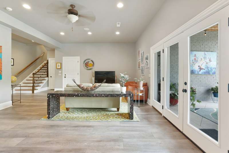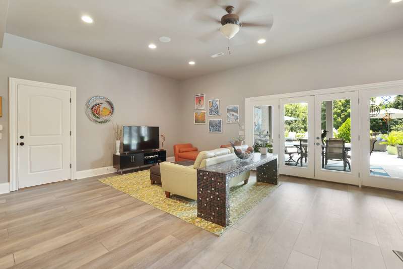 The enclosed porch overlooks a resort-style backyard designed for year-round enjoyment, complete with sports POOL and lush landscaping--the perfect setting for gathering or unwinding.