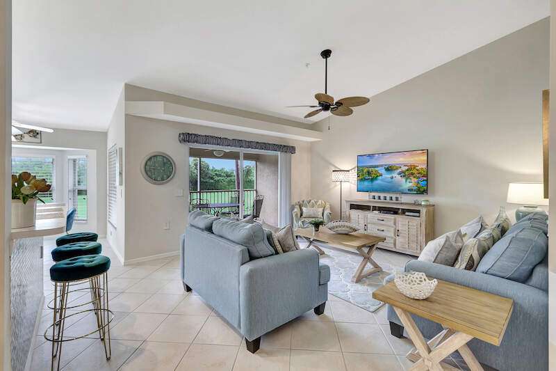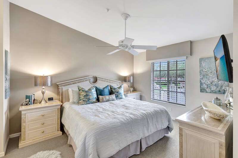 Full Golf and Amenity Membership available for renters! Come and spend your time at this professionally-decorated golf course condo in Cypress Woods. This second-floor condo is fully equipped for your stay and is available for 30-day minimum rentals: December 2024, January 2025, February 2025, March 2025, April 2025, May 2025, June 2025, July 2025, August 2025, September 2025, October 2025, November 2025, December 2025. Cypress Woods Golf and Country Club boasts an 18-hole Gordon Lewis-designed golf course, practice facility and putting green, 8 pickleball courts, bocce court, fitness center w/ group exercise classes, lap pool, resort pool and spa, bar and grill room, full service restaurant, outdoor dining, club events and more!