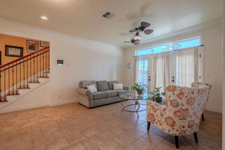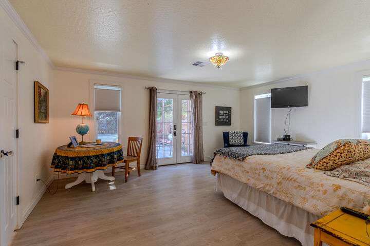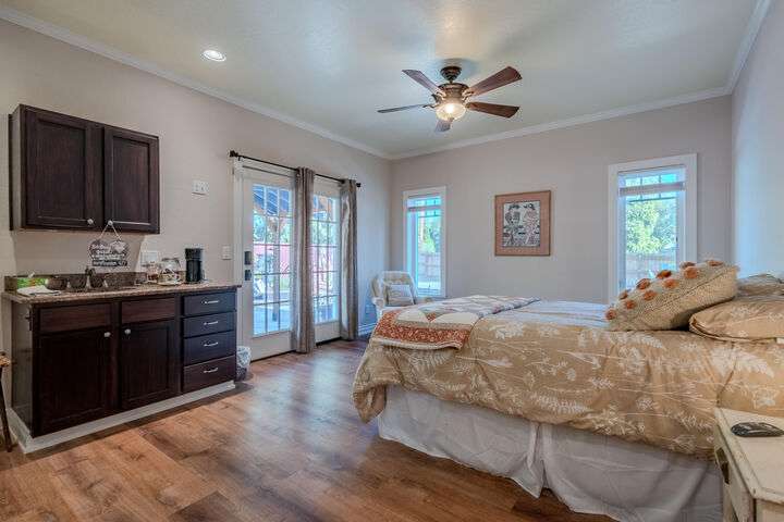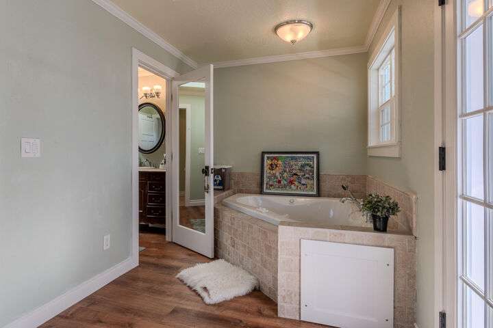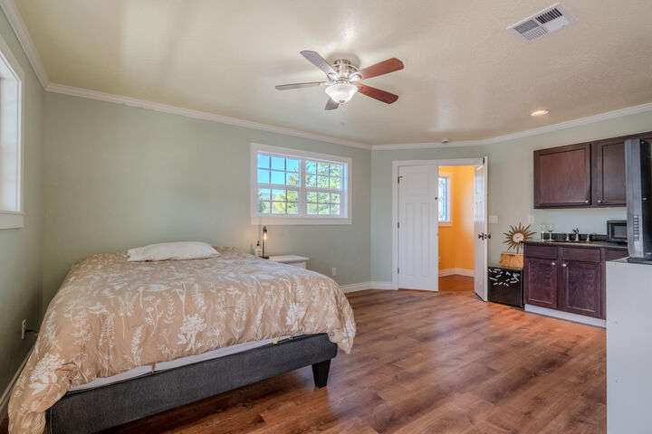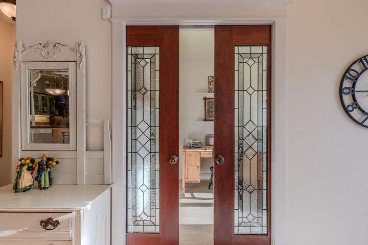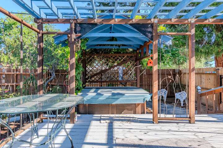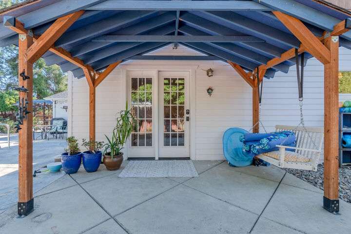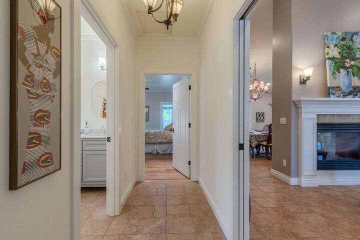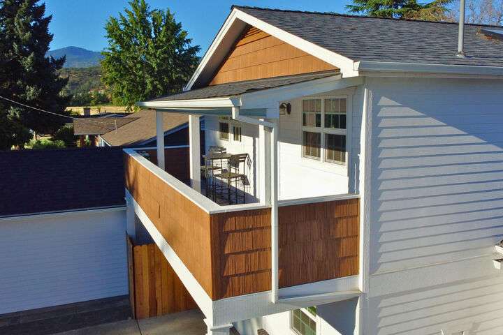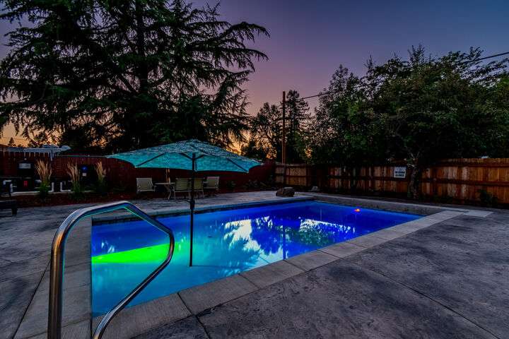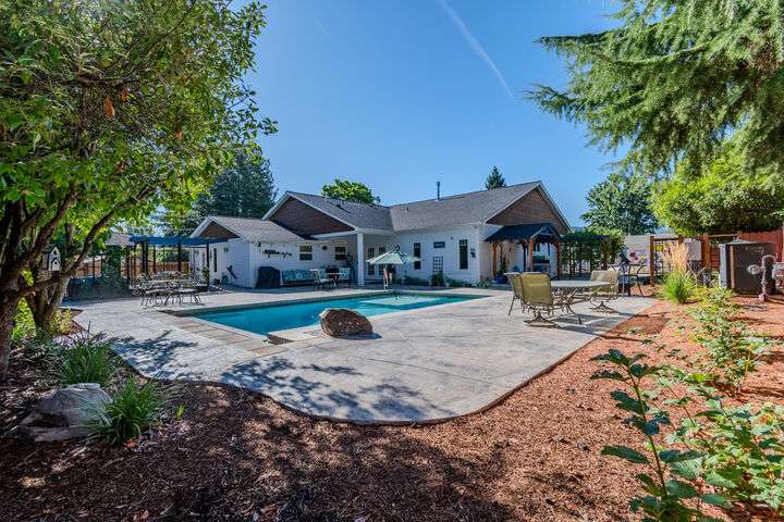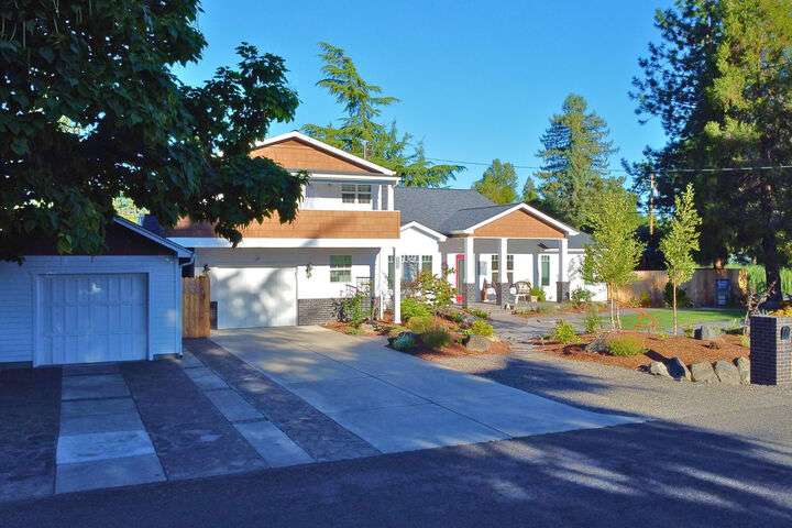 Welcome to this exclusive corner-lot gem in desirable Southwest Medford. Elegantly updated with fresh interior paint, this home features a stunning double sided fireplace connecting the formal dining room and family room for an inviting, open feel. The gourmet kitchen is a true entertainer's dream, showcasing a wraparound bar, upper-end finishes, and ample space for gatherings. Two spacious primary suites—one on each level—each offer a private entrance, ideal for multigenerational living, Airbnb potential, or a luxurious retreat. Outdoors, indulge in resort-style living with a brand-new swimming pool featuring electric and gas heating for year-round enjoyment, a Baja shelf for summer lounging, relaxing hot spa, charming gazebo, and fully fenced, landscaped grounds with stamped concrete—perfect for entertaining or savoring peaceful privacy. Don't miss this chance to own your own staycation haven.