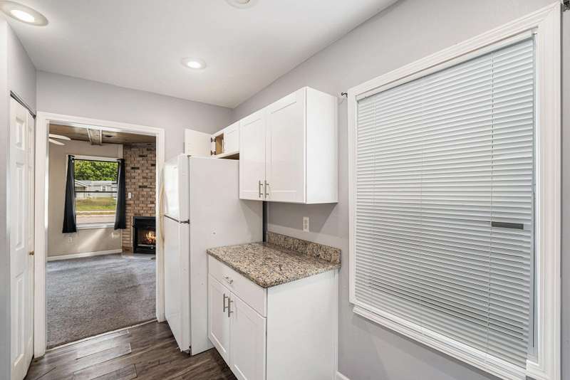 Great Investment Opportunity for First-Time Homebuyers or Investors! Welcome to this spacious 2 bedroom bungalow with the potential for a third bedroom. This home features 1 full bathroom, a detached garage, and a fully fenced in private backyard that's perfect for outdoor entertaining or quiet relaxation. Step inside to a warm and inviting family room with a cozy fireplace. The bathroom has been beautifully updated with ceramic tile on the floors and in the shower, along with a newer vanity. The galley kitchen features newer cabinets, granite countertops, and modern recessed lighting throughout the home. The family room includes laundry hookups for added convenience. A versatile bonus room with a sliding door leading to the backyard—can easily be converted into a third bedroom, mudroom, or home office. The possibilities are endless! Buyer is responsible for obtaining the Certificate of Occupancy. Property is being sold AS-IS. With some finishing touches, this home offers great value and potential—don’t miss your chance to make it your own!