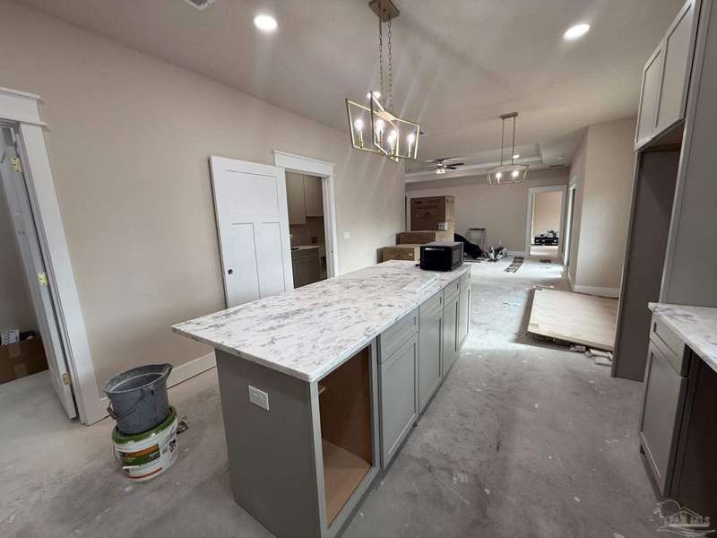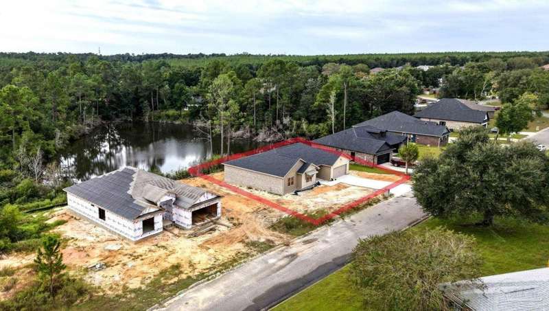 This home is currently under construction, with an estimated completion date of November 2025! Featuring three bedrooms and two bathrooms, the residence sits near the end of a large cul-de-sac in an established neighborhood. The floor plan has an open living/dining concept and a ton of custom upgrades! LOCAL QUALITY CRAFTMANSHIP! Your custom homebuilder is paying very close attention to detail throughout the entire building process and is using high-end construction materials and practices that are not typical with most other local builders or semi-custom spec homes. Kitchen boasts a large center island, all appliances (including a refrigerator!), a range, and a walk-in pantry. There is an abundance of cabinetry, as well as farm sinks, in both the kitchen and the laundry room. Tray ceilings are in the living room and in the master bedroom. The two-car garage has an external door to the side yard. Enjoy relaxation outdoors on both the front porch and the spacious back porch that overlooks a beautiful natural pond! The covered back porch can be accessed through the living room with a sliding glass door or from the master suite. The master suite has a double vanity, a mirrored door leading to the walk-in closet, an epic shower, and a separate tub! All bedrooms, the living room, and the back porch have ceiling fans. Plenty of natural lighting, recessed lighting, and LVP flooring are throughout the home.. As well as suburb light and plumbing fixtures! The creamy and cozy color scheme, with gold accents, in this home is gorgeous! * BOTH INTERIOR AND EXTERIOR FEATURES WILL BE UPDATED AS THE BUILD-OUT PROGRESSES! ** Call today for your private showing!