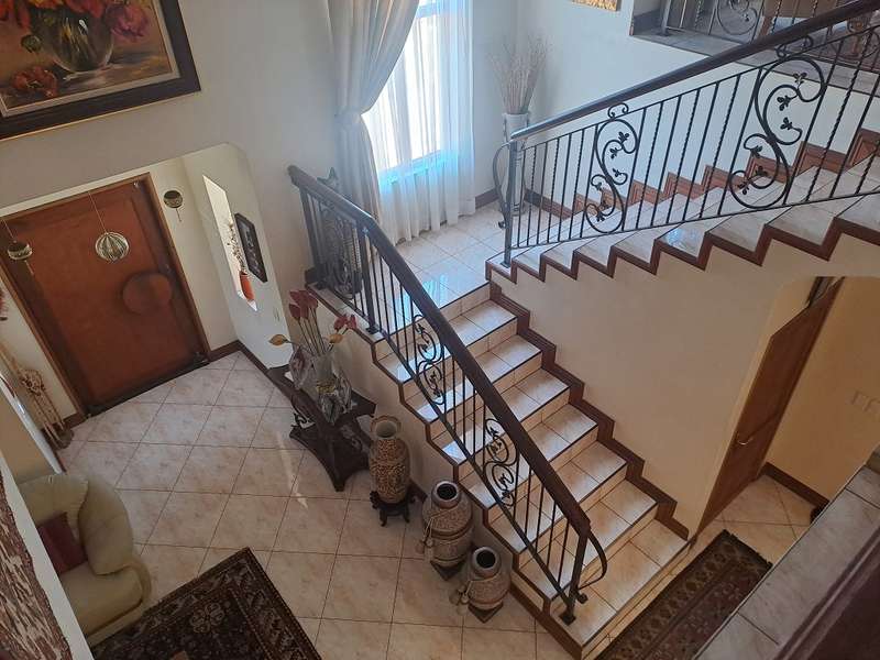 This double storey home boasts an entrance hall leading to a formal lounge, family room, dining room and a huge eat-in kitchen with 2 ovens, ample cupboard space, granite tops as well as a laundry area. There is 1 bedroom with a full en-suite bathroom downstairs, as well as a cinema room for your entertainment and a guest toilet for added privacy and convenience. Upstairs is where you will find the remaining 3 well sized bedrooms, all with full en-suite bathrooms, a study, as well as a pajama lounge. To complete this perfect picture are 3 garages plus additional secure parking, a sparkling pool, entertainment area with built-in braai, large storage area, inverters, electric fencing, and lots more.... Situated close to main access roads, highways and amenities - Call me now to view this not to be missed property...