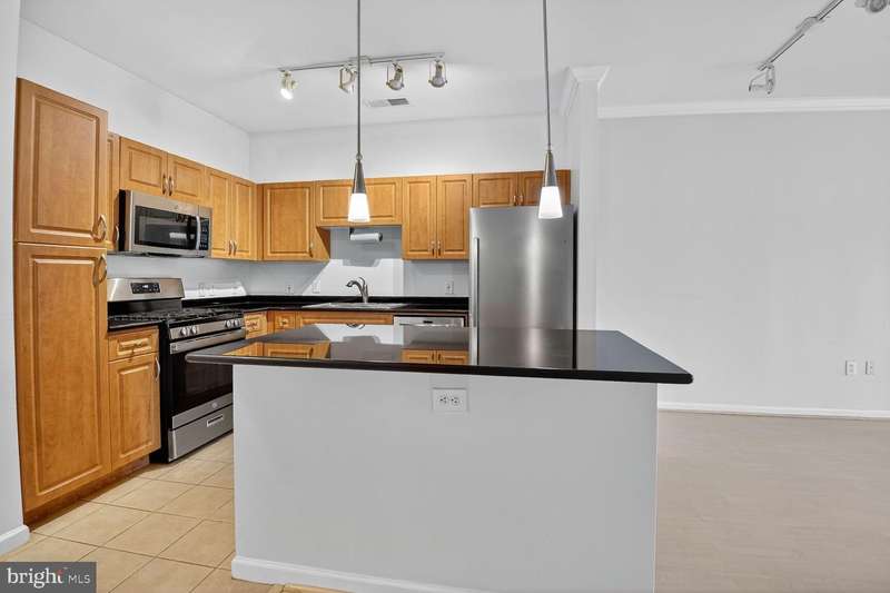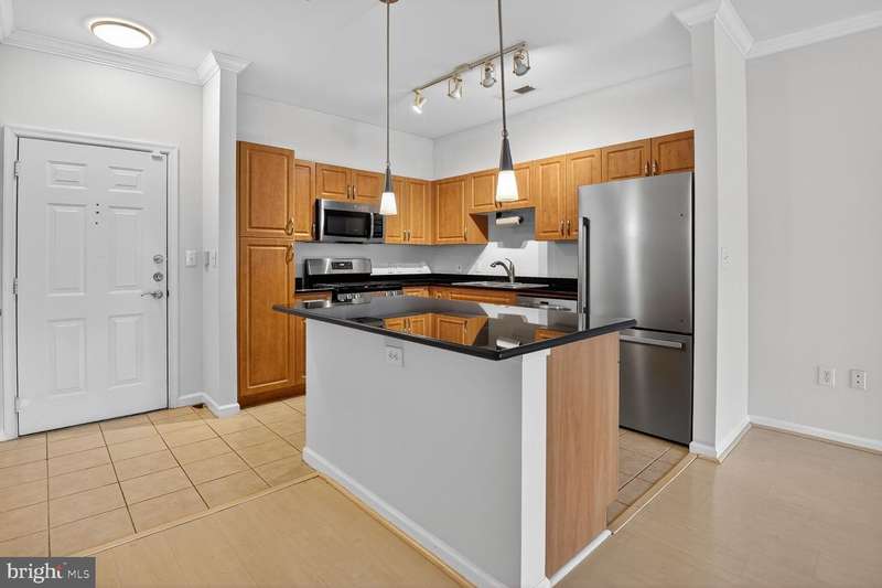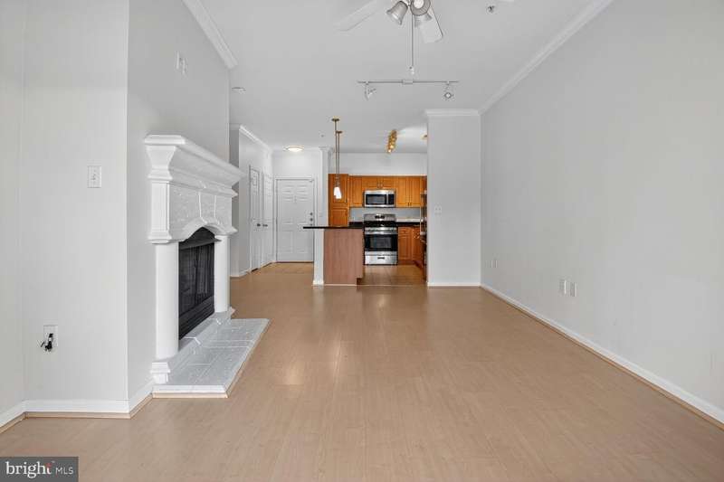 Welcome to 12905 Centre Park Circle, a lovely 1-bedroom condo with covered garage parking in Herndon's sought-after Bryson at Woodland Park community. Classic hardwood floors flow throughout the living areas and bedroom, while nine-foot ceilings and an open floor plan give the home a spacious feel. The updated kitchen features ceramic tile flooring, 42-inch cabinets with brushed-nickel hardware, stainless-steel appliances, sleek granite countertops, and a useful island illuminated by chic pendant lights with an overhang for bar-stool seating. Elegant crown molding and track lighting add a touch of sophistication to the living room, and the cozy fireplace is perfect for winter evenings. Step out the sliding glass door to your private patio overlooking the serene courtyard-an ideal spot for morning coffee. The roomy owner's suite offers a large walk-in closet with built-in shelving for added organization, and the en-suite bath includes a deep soaking tub, ample counter space, and a linen closet for towels and accessories. Additional conveniences include an in-unit washer and dryer and two covered garage parking spaces. Bryson at Woodland Park provides luxury amenities such as gated entry, a clubhouse, concierge services, a fitness center, billiards room, business center, and two outdoor pools. Conveniently located minutes from the Herndon Metro with quick access to the Dulles Toll Road, Fairfax County Parkway, Route 28, and Dulles International Airport. You're also steps from a vibrant shopping center with Harris Teeter, Starbucks, and great dining options, and just 0.3 miles from Reston Town Center-this place truly has it all!