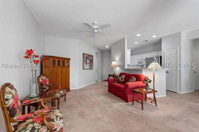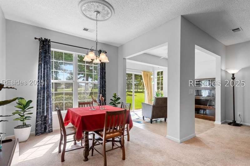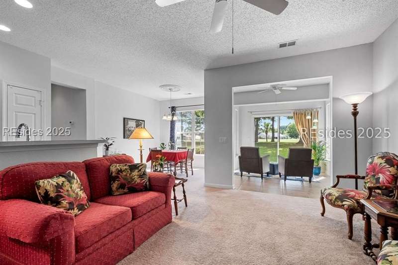 Beautiful Cardinal model with fabulous golf course views! Enjoy maintenance free living in The Preserve neighborhood of Sun City. Spacious 2 bedroom, 2 bath villa with light-filled Carolina Room and 2 car garage. Hvac 2020, Water Heater 2022, Roof 2025. Start living the Active Sun City Lifestyle today!!!