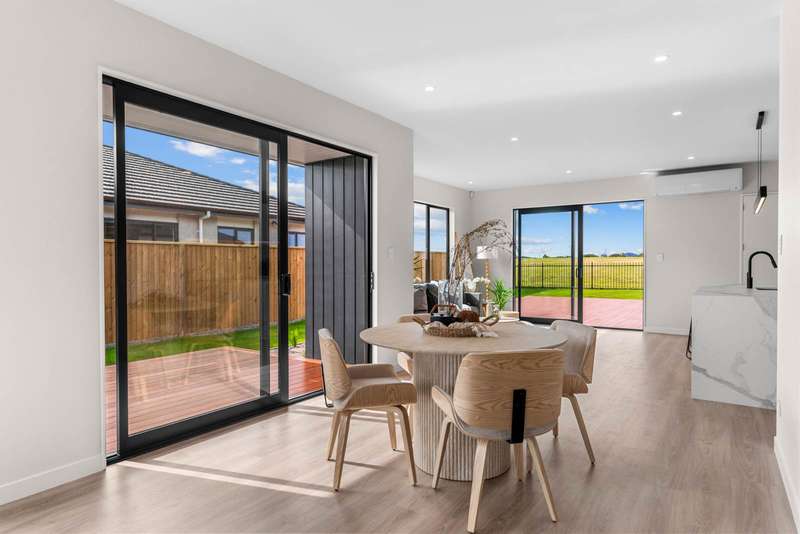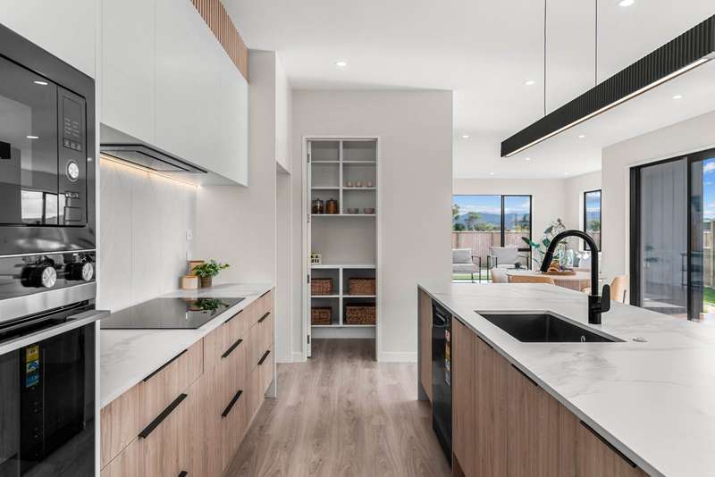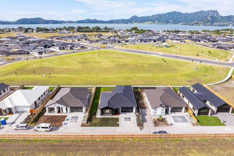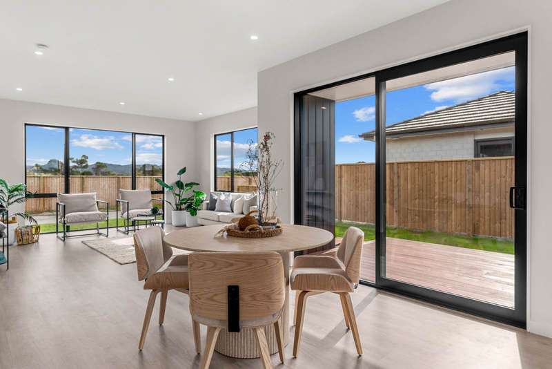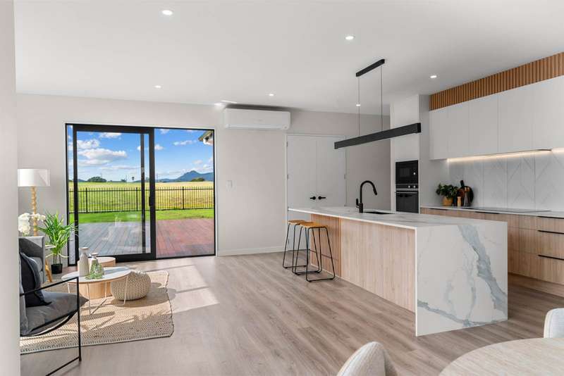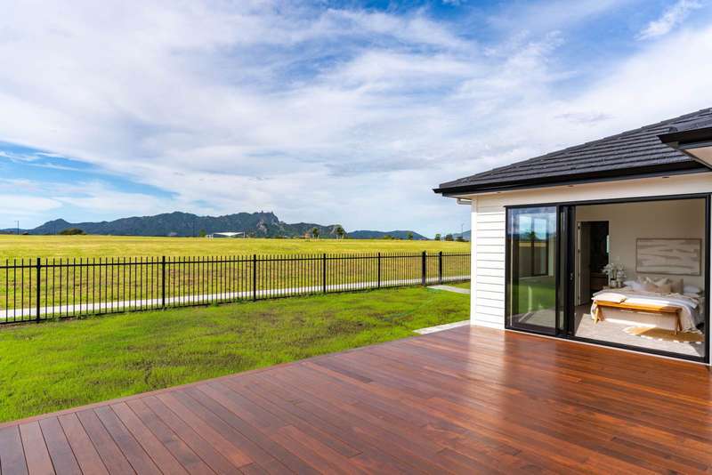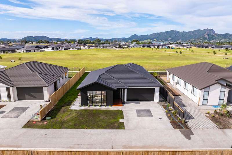 Introducing a stunning new residence that combines modern design with functionality and boasts uninterrupted views over the adjacent park to Mt Manaia. This home is approximately 208 sqm and features impressive 2.7m high ceilings, creating a bright and airy atmosphere. At its heart is a gourmet kitchen with elegant stone countertops, a walk-in pantry, and high-end appliances, including double ovens and a 900mm induction cooktop—perfect for the chef-in-you and entertaining. The kitchen flows into a spacious living area that leads to an expansive hardwood deck, offering lovely views of parkland and Mt. Manaia—ideal for outdoor enjoyment with friends and family. The four generous bedrooms ensure comfort, with both the master and guest rooms providing access to the north-facing deck. Stylish bathrooms feature herringbone tiles and modern fixtures, adding elegance throughout. Additional features include a fully carpeted garage with a separate laundry area and ample storage. The fenced backyard is ready for your personal touches. With the area gaining popularity and improved commuting options to Auckland, this home presents a fantastic opportunity. Just a short walk from the beach, a popular café, and local schools. Don’t miss out—secure your new home today!