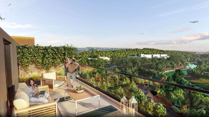 Apartments with forest views are equipped with a smart home system, built-in white goods, a dressing room, en-suite bathrooms, intercom, steel door, balcony, shower cabin, ceramic flooring, ceiling floor, and lighting system.