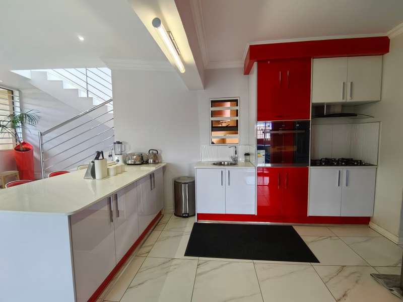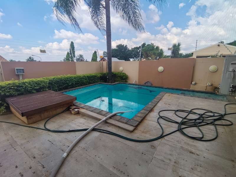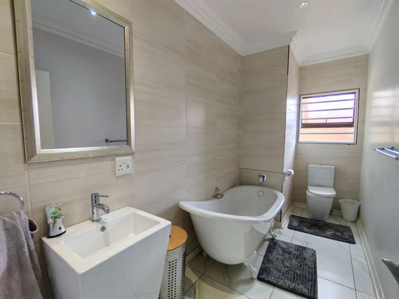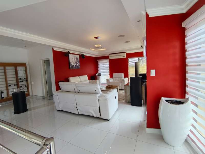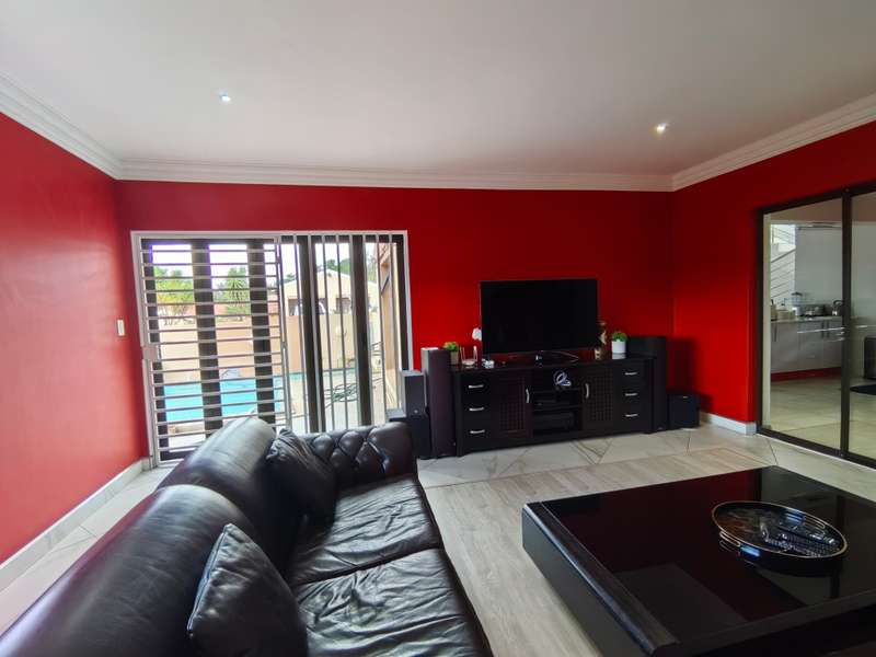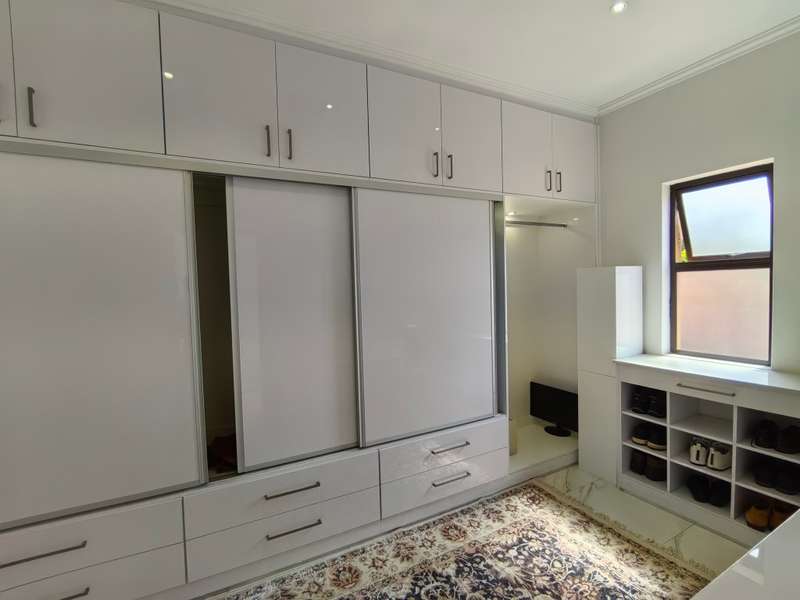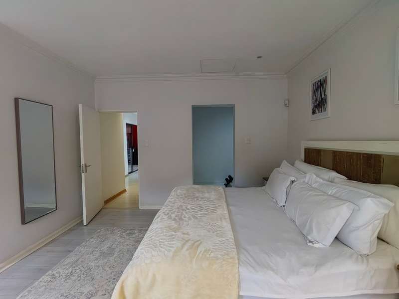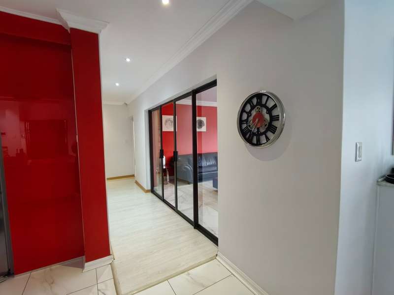 This stunning double-storey residence is a true testament to modern design and luxurious comfort. Immaculately planned and built to offer space, style, and practicality, this home is perfect for large families, entertainers, or anyone seeking a sophisticated lifestyle in a secure and versatile setting. Upon entering, you’re greeted by a bright and expansive open-plan kitchen and dining area, the heart of the home. This modern space flows effortlessly into a spacious lounge, where large sliding doors open out to a covered patio and beautiful pool area, blending indoor and outdoor living to perfection. Whether you’re hosting a summer braai or enjoying a quiet morning coffee, this space invites relaxation and connection. The ground floor features two well-sized bedrooms, one of which includes a private ensuite and a generous walk-in closet—ideal for guests or extended family. Every room, including common areas, is fitted with air conditioning, providing year-round comfort in every corner of the house. A separate full bathroom downstairs adds convenience and functionality to the layout. Upstairs, the home continues to impress. A cozy yet stylish second lounge offers a relaxed family space, while the adjoining entertainment area is complete with a standout wine wall, ideal for showcasing a curated collection or entertaining guests in style. The master bedroom suite is nothing short of a private sanctuary. Spacious and light-filled, it boasts a luxurious ensuite bathroom with a huge walk-in shower, an expansive walk-in closet, a dedicated dressing and makeup station, and a built-in work desk for those who work from home. Glass sliding doors open to a private balcony, offering serene views and a peaceful retreat from daily life. Adding incredible value and flexibility are two separate flatlets, each fully equipped with its own kitchen, bathroom, and built-in wardrobes—ideal for rental income, guest accommodation, or multigenerational living. The outdoor space is designed for enjoyment, featuring a beautiful pool, a covered patio, and manicured surroundings that enhance the overall aesthetic. The property also includes a double garage with seamless flow into a third covered carport, providing ample parking for multiple vehicles. Security and practicality are key, with CCTV surveillance in all common areas for peace of mind, three geysers ensuring efficient hot water supply throughout the home, and a JoJo water tank with pump system, offering a sustainable water solution. This property is a rare find—elegantly styled, generously proportioned, and packed with modern features. It offers the perfect balance between luxurious family living and smart investment potential.