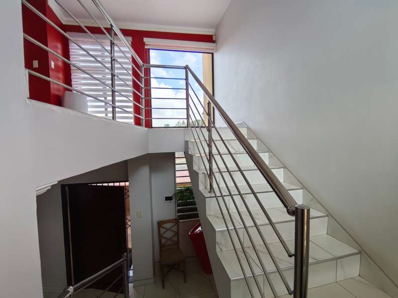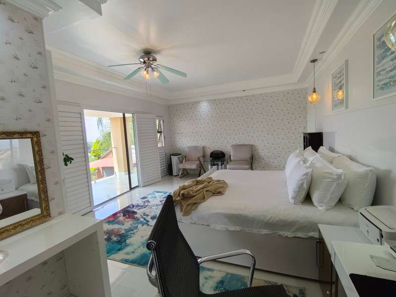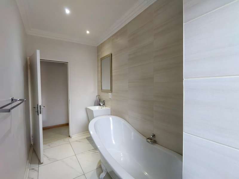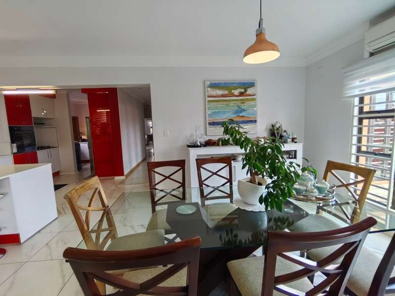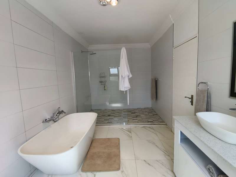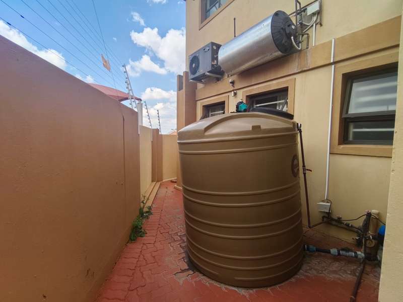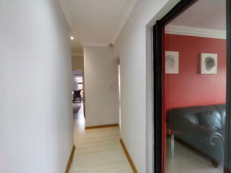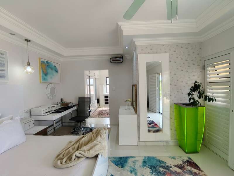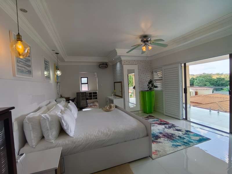 This stunning double-storey residence is a true testament to modern design and luxurious comfort. Immaculately planned and built to offer space, style, and practicality, this home is perfect for large families, entertainers, or anyone seeking a sophisticated lifestyle in a secure and versatile setting. Upon entering, you’re greeted by a bright and expansive open-plan kitchen and dining area, the heart of the home. This modern space flows effortlessly into a spacious lounge, where large sliding doors open out to a covered patio and beautiful pool area, blending indoor and outdoor living to perfection. Whether you’re hosting a summer braai or enjoying a quiet morning coffee, this space invites relaxation and connection. The ground floor features two well-sized bedrooms, one of which includes a private ensuite and a generous walk-in closet—ideal for guests or extended family. Every room, including common areas, is fitted with air conditioning, providing year-round comfort in every corner of the house. A separate full bathroom downstairs adds convenience and functionality to the layout. Upstairs, the home continues to impress. A cozy yet stylish second lounge offers a relaxed family space, while the adjoining entertainment area is complete with a standout wine wall, ideal for showcasing a curated collection or entertaining guests in style. The master bedroom suite is nothing short of a private sanctuary. Spacious and light-filled, it boasts a luxurious ensuite bathroom with a huge walk-in shower, an expansive walk-in closet, a dedicated dressing and makeup station, and a built-in work desk for those who work from home. Glass sliding doors open to a private balcony, offering serene views and a peaceful retreat from daily life. Adding incredible value and flexibility are two separate flatlets, each fully equipped with its own kitchen, bathroom, and built-in wardrobes—ideal for rental income, guest accommodation, or multigenerational living. The outdoor space is designed for enjoyment, featuring a beautiful pool, a covered patio, and manicured surroundings that enhance the overall aesthetic. The property also includes a double garage with seamless flow into a third covered carport, providing ample parking for multiple vehicles. Security and practicality are key, with CCTV surveillance in all common areas for peace of mind, three geysers ensuring efficient hot water supply throughout the home, and a JoJo water tank with pump system, offering a sustainable water solution. This property is a rare find—elegantly styled, generously proportioned, and packed with modern features. It offers the perfect balance between luxurious family living and smart investment potential.