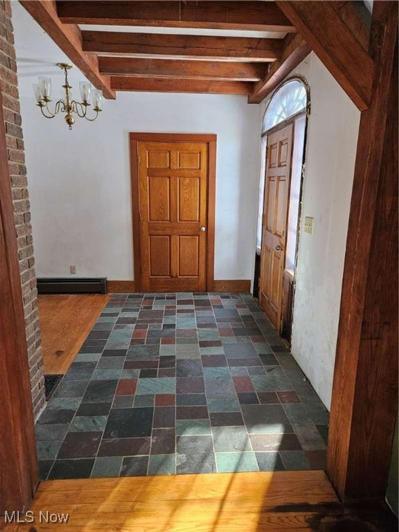 Custom Built home by original owner. The woodwork is amazing in this house offering beamed ceilings, hard wood floors, built ins, wood burning brick fireplace. 3 bedrooms on second floor and a finished attic that would could be used as a office or 4th bedroom. Newer hot water tank. Hugh 3 car garage with woodshop upstairs, on almost 6 acres. Come enjoy this private setting with the house about 300' off the road. Use caution when using the driveway, it has a high area down the middle of the driveway. Vehicles that sit higher up are recommended when going up the driveway. All information is believed to be accurate But not guaranteed. Estate Sale - Seller can not make any repairs. Selling as is. Seller will be leaving lawn mower and somethings with the property.