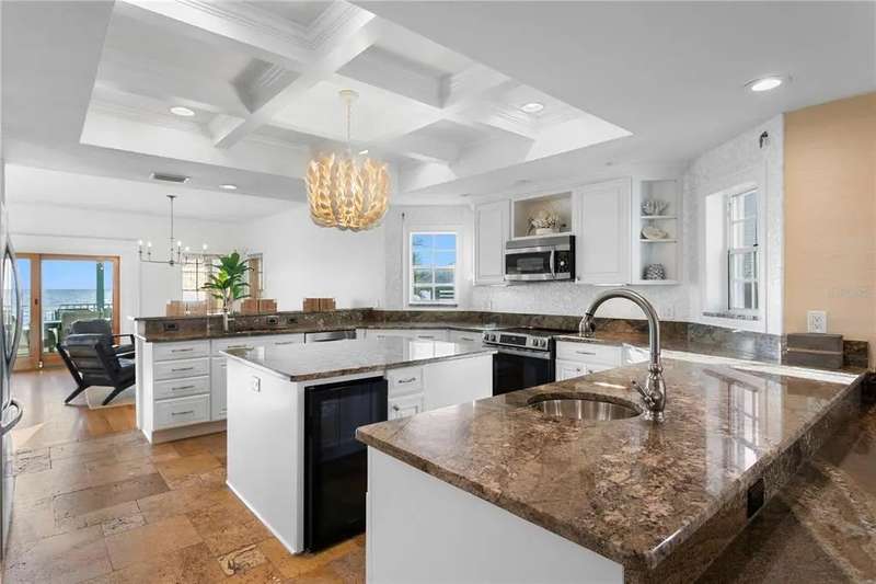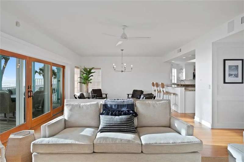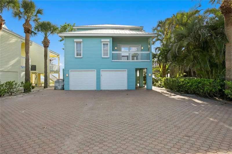 Welcome to your own private sanctuary on Indian Shores—an exclusive waterfront estate that blends timeless architecture, elevated comfort, and unrivaled Gulf-to-Intracoastal access. This one-of-a-kind property spans both sides of Gulf Boulevard, offering direct beach frontage on the west and private boat access on the east. The eastern parcel features a private, covered dock ideal for boating enthusiasts. Buffered by discreet commercial land, this area offers additional potential for creative expansion, boutique business, or investment. To the west, the main residence rises gracefully above the dunes, allowing you to step directly onto the sand from your private beachfront terrace. Privately commissioned and perfect for those with passion for refined living, the estate was thoughtfully designed for those who appreciate both sophistication and ease. Panoramic Gulf views greet you the moment you step into the elevated living areas, while rich interior finishes and a custom chef’s kitchen elevate every gathering—from vibrant entertaining to peaceful mornings with a sea breeze. The second floor offers an effortless flow: from the expansive living and dining spaces to a family room ready for game nights and two beautifully appointed bedrooms. Ascend to the third-floor master retreat—a true haven in the sky. With a spa-inspired en-suite bath, oversized walk-in wardrobe, and serene sitting area, it’s a place to unwind and watch the sunset melt into the ocean, wine glass in hand. Multiple balconies provide spectacular indoor-outdoor living, ideal for intimate mornings or hosting unforgettable beachside soirées. Below, the first level delivers function and flexibility, with an oversized garage, spacious workshop, storage suite, and additional half bath/beach bath. A detached guest house completes the estate, offering full privacy for guests or the perfect opportunity for a luxe rental, home office, or artist’s retreat. This is more than a home—it’s a once-in-a-lifetime coastal estate, crafted for those who demand the exceptional. Rarely does such a property become available on one of Florida’s most desirable and exclusive stretches of shoreline.