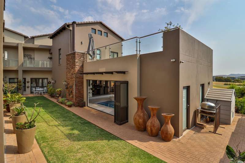 This extraordinary property offers a seamless blend of luxury and practicality across an extensive array of living, working, and entertainment spaces. As you enter, you?ÇÖre greeted by an expansive open-plan lounge and kitchen area, which flows effortlessly into a games room, an air-conditioned entertainment area, and a built-in bar complete with a wine cellar and cool room. An integrated sound system enhances the ambiance throughout. The kitchen is thoughtfully designed with a gas stove, ample space for a double fridge-freezer, and a charming breakfast nook. It also features both a walk-in pantry and a convenient cupboard pantry, ensuring plenty of storage for all your culinary needs. Stacking doors open to a magnificent deck with panoramic views of the 12th fairway and a serene water pond. The deck leads to an indoor heated pool and an 8-seater jacuzzi, all beneath a stunning pyramid skylight. The main residence includes four generously sized bedrooms, each with en-suite bathrooms and walk-in closets. The Master suite is particularly opulent, featuring air-conditioning, a kitchenette, and a luxurious double spa bath. For work and leisure, there?ÇÖs a dedicated study with open-plan office space and a boardroom, as well as a separate salon/office with its own kitchenette and bathroom. A private gym, also air-conditioned and overlooking the golf course, complements an indoor squash court that can double as a golf simulator. The property is designed with interconnected passageways for effortless movement between spaces. Three spacious flatlets, each with two bedrooms, a full bathroom, and separate lounge and dining areas, offer both comfort and privacy with their own entrance. All kitchens within the flatlets are equipped with a gas stove hob, electric oven, and extractor fan. Additional features include advanced home automation, a solar power system with 64 panels, 3x8KW inverters, 38KWh battery backup, CCTV surveillance, and comprehensive wifi and LAN connections. For added convenience, there?ÇÖs gated parking for a trailer or small caravan, and rainwater harvesting systems with a 10,000-liter underground tank for roof water and a 5,000-liter underground tank for greywater. This property is not just a home but a lifestyle statement, blending sophisticated design with functional excellence. ~~~~~-----~~~~~ Copperleaf Golf & Country Club. Home of the Ells Club, is situated in the greater metropolitan area of Tshwane, on a plot of land where Ernie's late grandfather Ernie Vermaak grew up. The Els Club at Copperleaf is the second ?ÇÿSignature?ÇÖ Ernie Els designed golf course in South Africa. This beautiful course has been designed to the highest possible specifications and USGA Specifications. The Els Club at Copperleaf is based just 40 minutes outside of Sandton or just 15 minutes outside of Centurion in Mnandi, Gauteng.