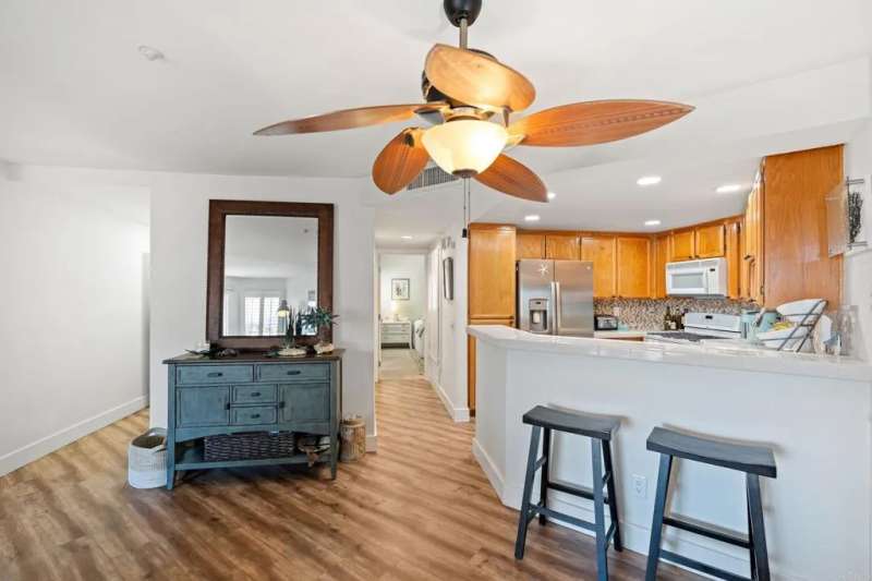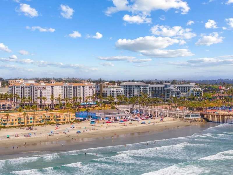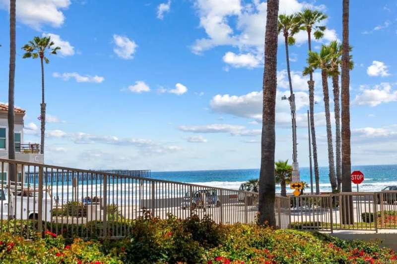 Step into the ultimate coastal lifestyle at this stunning beach condo in the highly coveted San Miguel complex--just a few steps from the sand and surf. Perfectly positioned along Oceanside's iconic Strand, this beautifully updated residence offers stunning views of whitewater waves, surfers dancing across the tide, the historic pier, and nightly postcard-worthy sunsets. Yes, dolphins included. Imagine waking up to the sound of the ocean, sipping your morning coffee while watching the waves roll in, and ending your day with a glowing, beautifully lit Oceanside Pier as your backdrop. Whether you're grilling on your private ocean-view deck, dining al fresco, or simply soaking up the vibrant energy of the Strand, this home lets you experience the beach lifestyle 24/7. Offering true single-level living, this ground-floor residence allows you to skip the stairs entirely--ideal for both everyday ease and entertaining. Inside, pride of ownership shines throughout. The home features new dual-pane windows, upgraded bathroom and kitchen plumbing, modernized ceiling electrical, and plantation shutters that add a touch of classic coastal elegance. The remodeled bathroom is a showstopper with dual sinks, quartz countertops, a new pocket door and barn door, and private in-unit laundry for added convenience. The patio slider's discreet roll-up shade offers both style and function. San Miguel is one of Oceanside's most desirable oceanfront communities--fully gated, pristinely maintained, and rich in amenities including underground parking, elevators, and two ocean view spas. The HOA has recently re-piped the entire complex, adding peace of mind to this already turnkey property. Step outside and the best of Coastal Oceanside is at your feet--the vibrant harbor and marina, the buzzing Oceanside Pier, renowned restaurants, trendy coffee shops, and boutique shopping all within a short stroll. Whether you're watching the surfers, enjoying the people-watching along the Strand, or catching a stunning sunset, every moment here is like a vacation. This isn't just a home--it's a front-row seat to the Southern California beach lifestyle.