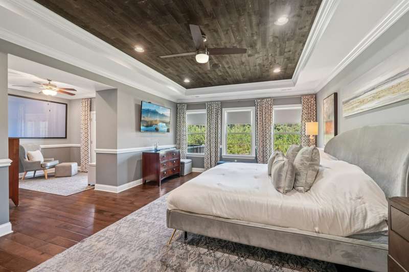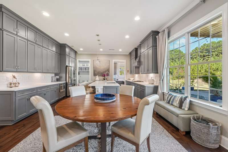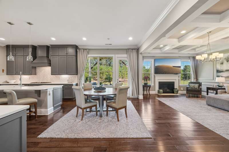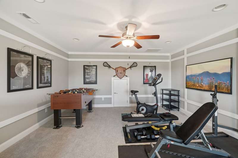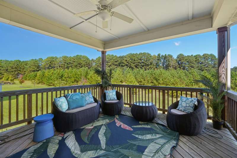 Welcome your Weddington estate home that defines luxury living. This former model home offers an unparalleled combination of elegance, comfort, and state-of-the-art features. Stunning curb appeal, complete with a welcoming front porch and an oversized 3-car side-load garage, set against the backdrop of a wooded and expansive private backyard. Grand foyer with soaring 10-foot ceilings, exquisite millwork, and hardwood floors. Formal dining room and living room. Family room with gas fireplace and coffered ceilings leads to the heart of the home; a gourmet kitchen, a chef's dream featuring a massive island, tons of countertop space and extensive cabinet storage, stainless steel appliances, a farmhouse sink, walk-in pantry, drop zone with cubbies and a private office nook. Direct access to the covered patio and firepit- relaxing outdoor living! Guest br and full ba on main. Second floor features a luxurious primary suite; a true sanctuary, offering a spa-like en-suite bath, dual closets and direct access to laundry room. Plus++ a sitting area and balcony for your own private escape! All bedrooms are spacious and have their own bath. The massive bonus room, with its designer shiplap and surround sound, is perfect for a media room, recreation area, or workspace. Third floor recreation area is that perfect flex space- one more area that perfectly completes the ease and flow of this home. Garage with finished floor and tons of storage opportunity, full yard irrigation. As a former model home, this property is filled with high-end upgrades and thoughtful details that set it apart. From designer lighting to custom built-ins, every aspect of this home has been meticulously curated to offer the pinnacle of modern luxury. Enjoy the perfect balance of serene, private living while being just minutes from highly rated public schools, vibrant shopping and dining of Waverly, Rea Farms, and Blakeney. This is more than a home; it's a lifestyle.