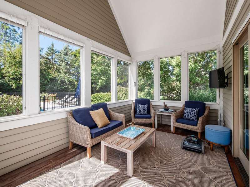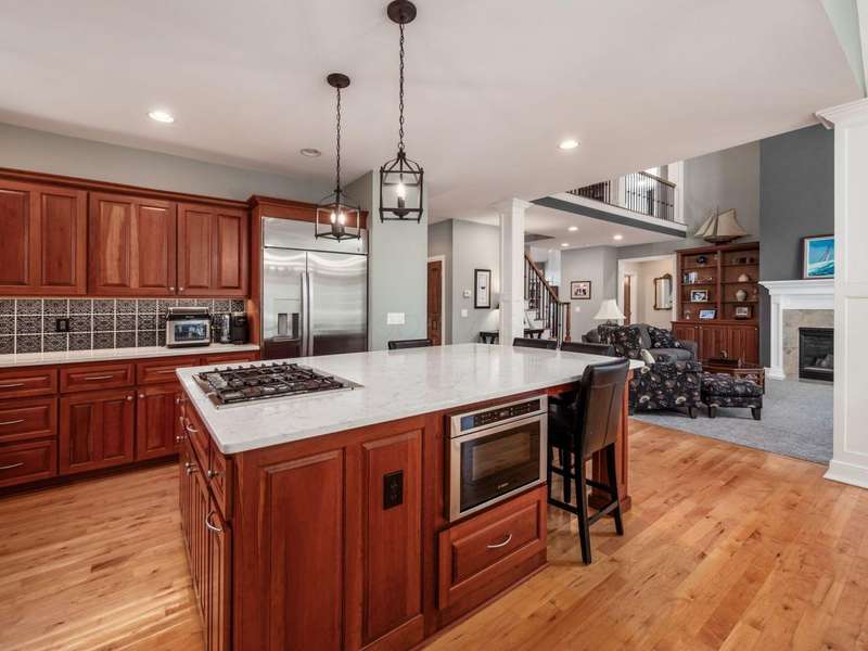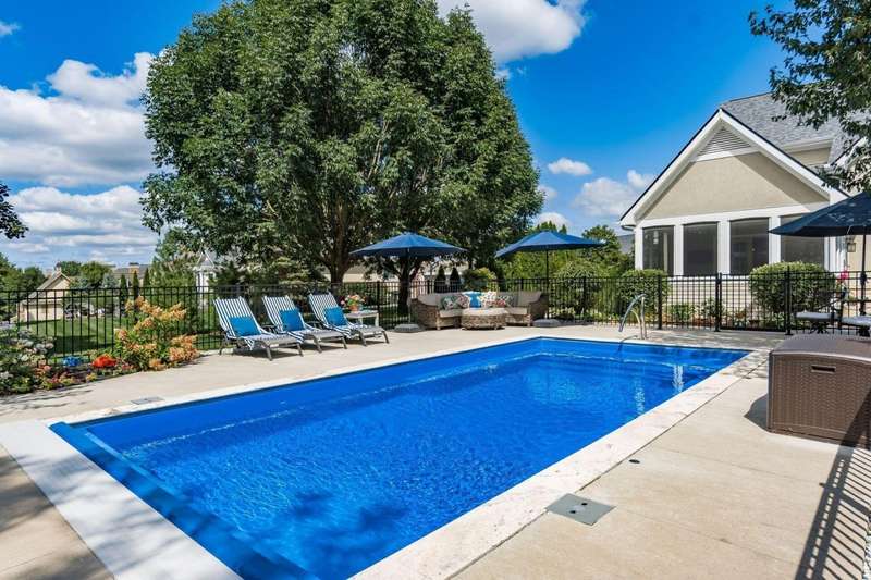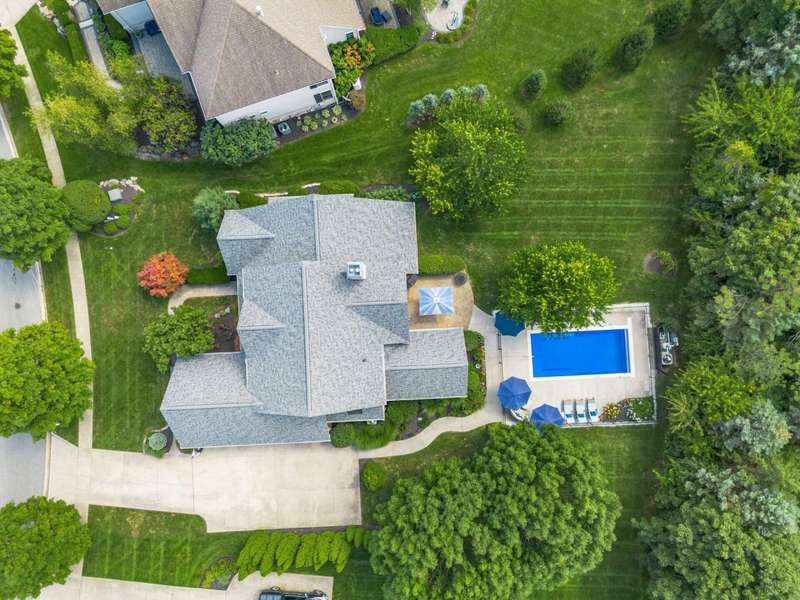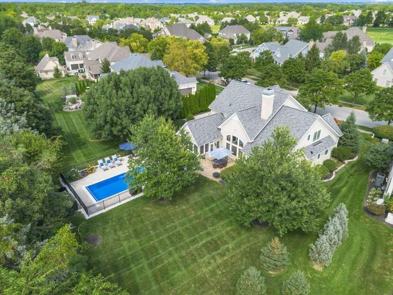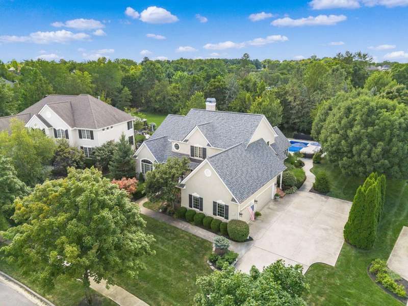 Gorgeous custom built home on a huge private lot surrounded by trees! Pull up the concrete drive and step into the 2 story entry & on to hardwood floors that flow throughout much of the main level. The open floorplan has tall ceilings throughout highlighted by beautiful built-in shelving and gorgeous woodwork. The updated kitchen (2020) features white quartz counters, new Bosche stainless steel appliances & a new GE refrigerator/freezer. The vaulted eating space w/new lighting off the kitchen opens to the screened in porch overlooking the paver patio, new inground pool & tranquil private backyard. The main level owner suite bath was remodeled in 2020 and features a zero entry roll in shower plus a quartz vanity & new tile throughout. Upstairs are three large bedrooms w/huge closets, a jack and jill plus an ensuite bath. The finished lower level has the 5th bedroom + a full bath, workout room, 2 egress windows. a work space desk and large unfinished storage space. The gorgeous pool (installed in 2020) is surrounded by trees for privacy. Ideally situated allowing for plenty of greenspace to play!