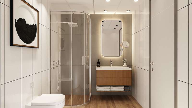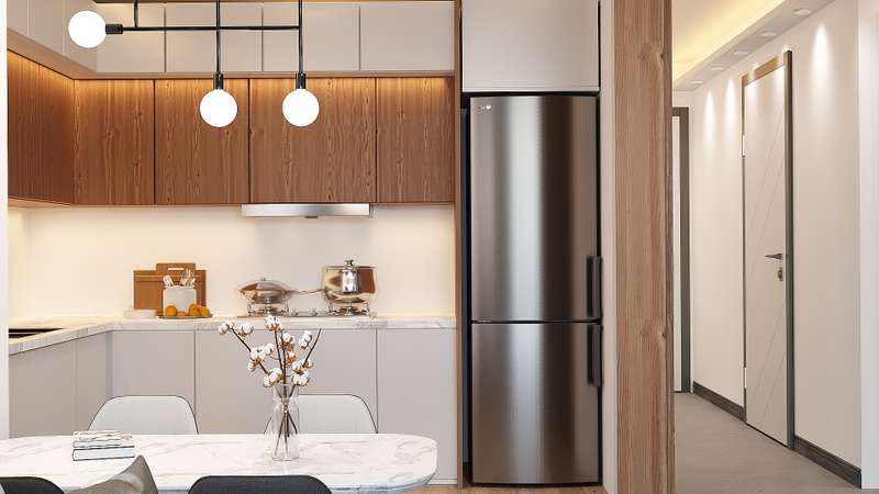 The apartments with 1, 2, and 3 bedrooms have a living room, a kid’s room, an open-plan kitchen, a bathroom, and a balcony. The project was constructed with high-quality materials.