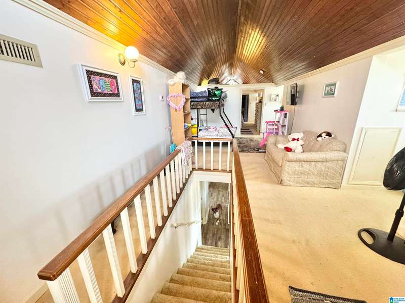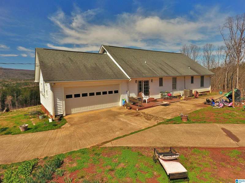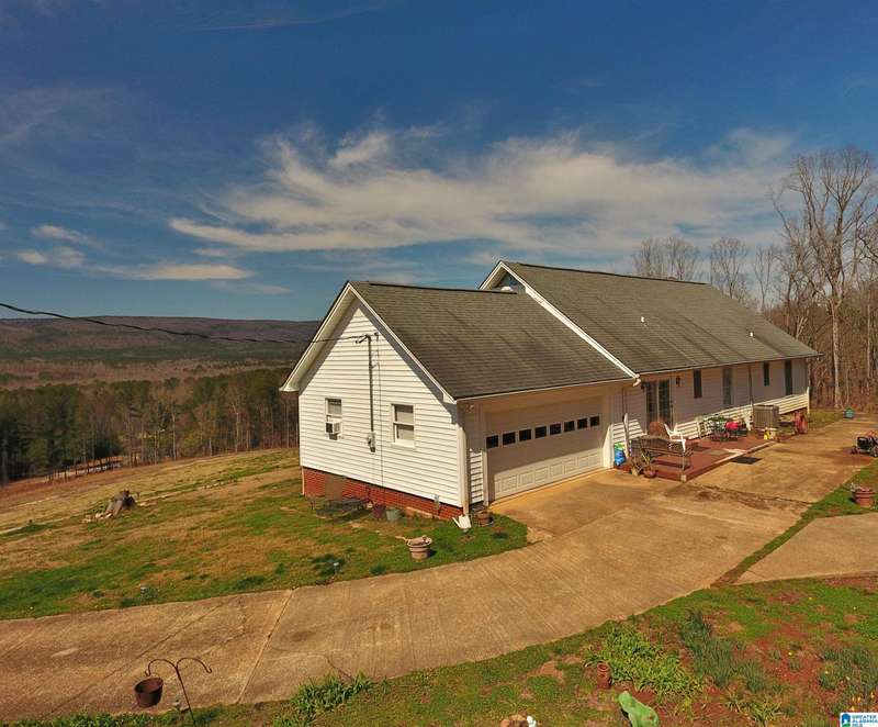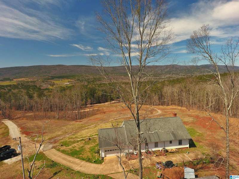 Location, Location, Location with a mountain view! This home sits almost 1,200 feet above sea level with 12.7 acres and is facing Cheaha Mountain range. Cheaha is only ten miles from this property which is the highest point in Al. with plenty of hiking trails and nature beauty. Inside this home you will find 3 bedrooms and 3 baths with room to grow. The den has a wood burning fire place with is open to the dining area. The kitchen is spacious and has a great view from the kitchen sink. There is also an area for a home office and two car garage. Upstairs is the 3rd bedroom and 3rd full bath with much more room to use as needed. There's a work shop with storage above it in the back yard. There is also a fresh water spring on the property and according to the owner it runs year round.