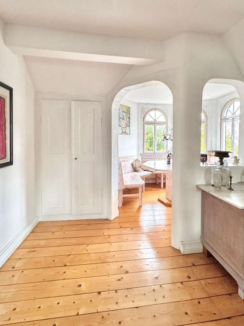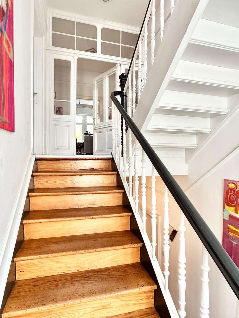 In the heart of the sought-after villa district of Heppenheim, this impressive villa dating from 1890 is a true gem of historical architecture. The listed property was extensively renovated in 1988 and has since combined stylish old building elements with solid structural substance. There are currently three self-contained units spread over around 280 m², which open up a wide range of possible uses. The first floor houses rented office space, which offers an attractive source of income. The upper floor and the generously developed attic are currently used by the owner himself - also as office space or for private living. Two subsequently added balconies on the upper floor and top floor offer a fantastic view of the vineyards and Starkenburg Castle. The villa impresses with its classic old building charm: high ceilings, original style elements, an impressive staircase and an elegant façade design convey the special character of this historic building. The location could hardly be better. Situated in one of Heppenheim's most exclusive residential areas, surrounded by stylish old buildings and plenty of greenery, the property offers both prestigious character and peace and privacy. The proximity to the city center, daily amenities and freeway access round off the offer. Naturally, there is ample parking space in the courtyard.