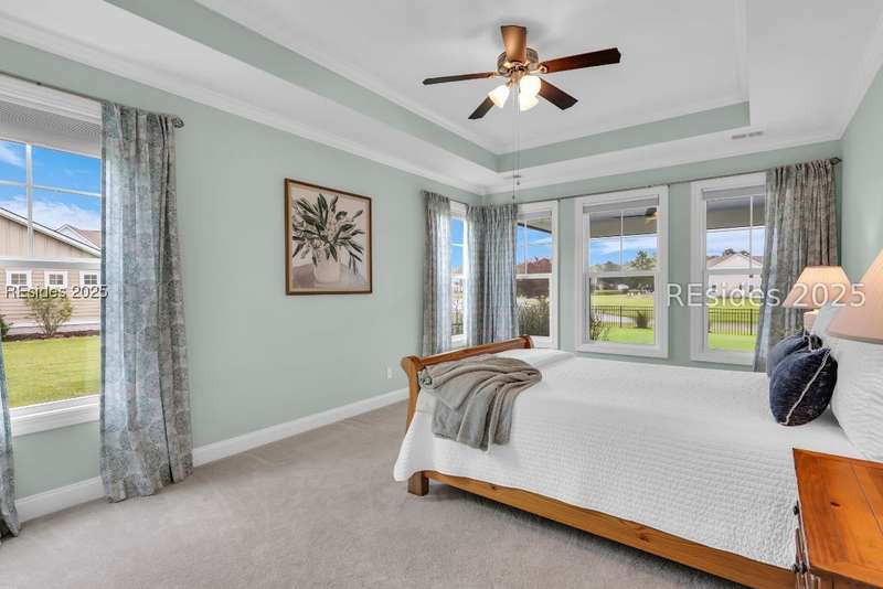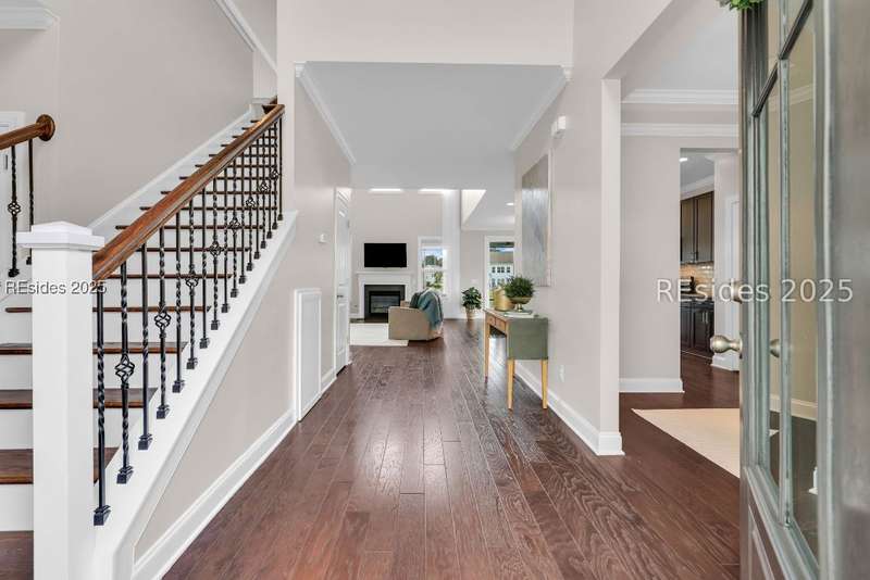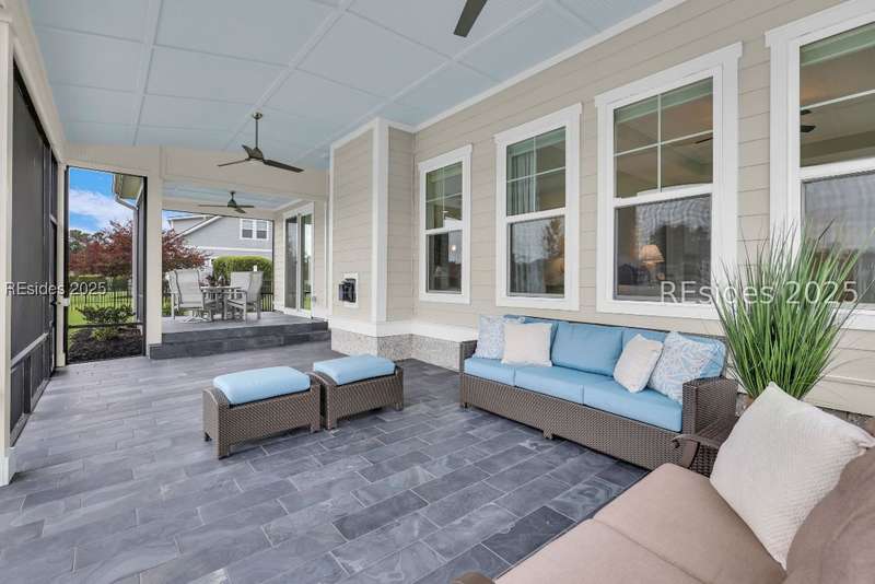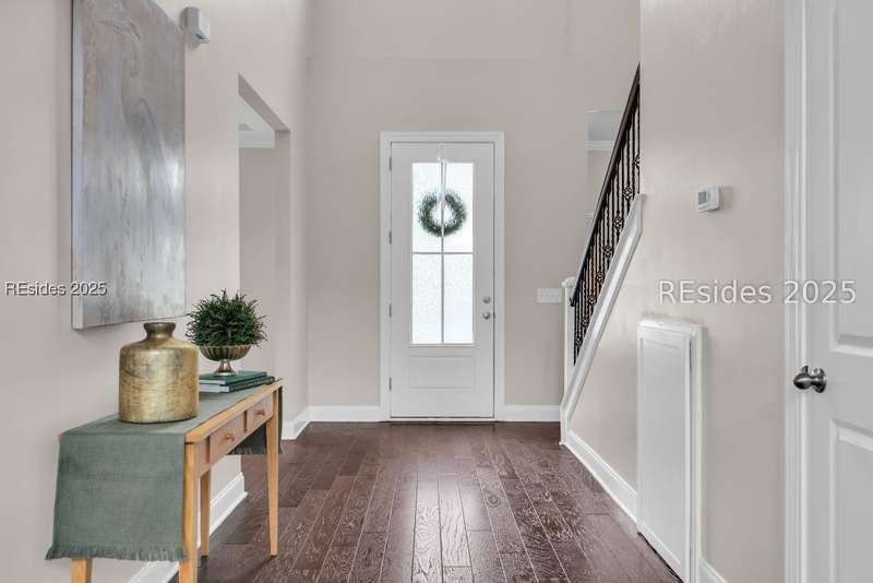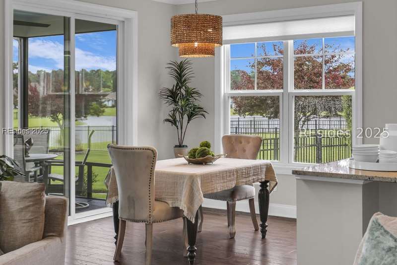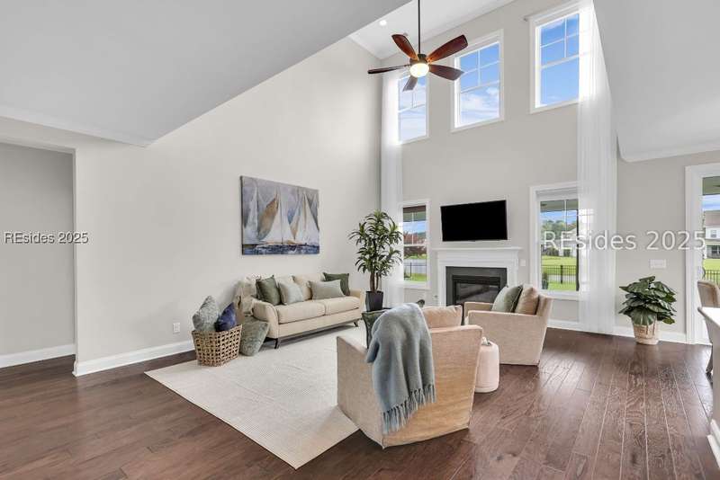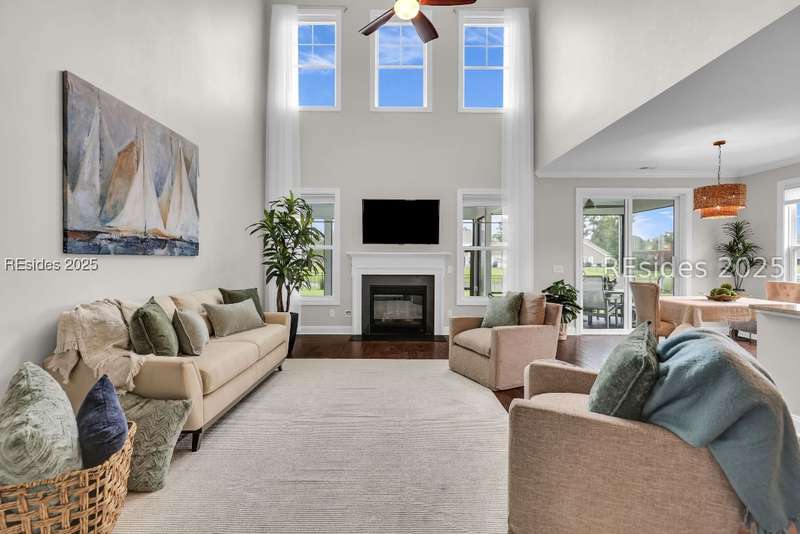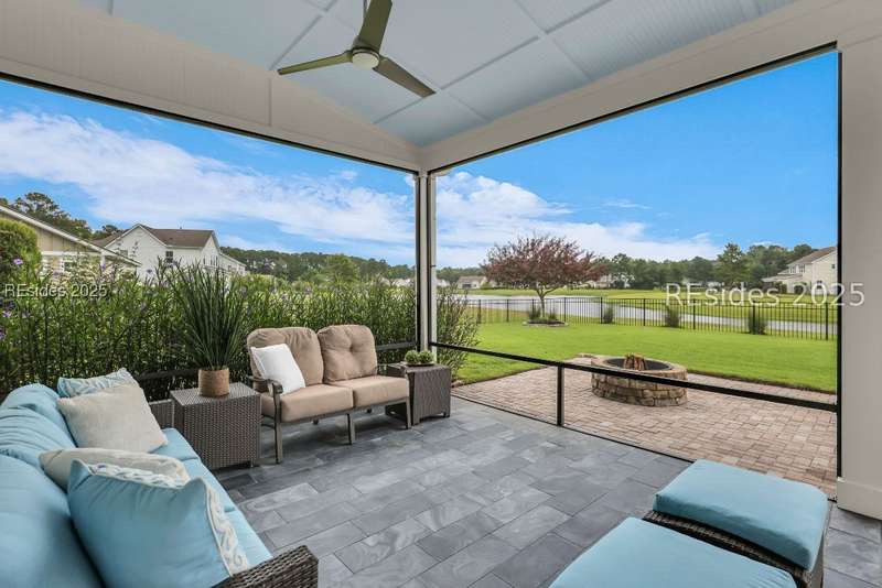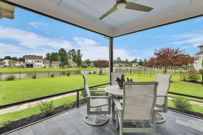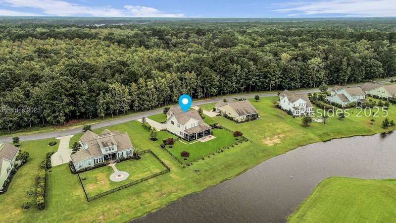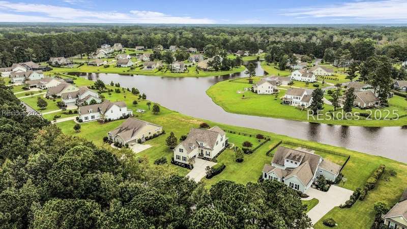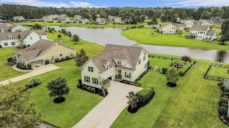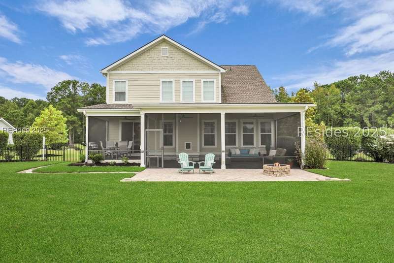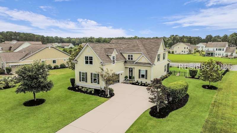 Welcome to this stunning 4-bedroom, 3.5-bathroom home in the highly sought-after gated community of May River Preserve in Bluffton, SC. Built in 2017 and meticulously maintained by the original owners, this spacious two-story home sits on over half an acre and offers breathtaking lagoon and water views.Step inside to an open-concept floor plan featuring engineered hardwood floors, elegant crown molding, soaring cathedral and tray ceilings, and a bright, airy layout designed for modern living. The first floor includes a welcoming foyer, a large great room with a built-in gas fireplace, a gourmet kitchen with granite countertops, stainless steel appliances, a large center island, and a sunny breakfast area. You will also find a separate dining room, laundry room with washer & dryer, powder room, and a spacious owners suite with a luxurious en-suite bathroom, soaking tub, oversized custom walk-in closet and the 40-foot screened porch overlooking the lagoon. Upstairs, enjoy brand new carp