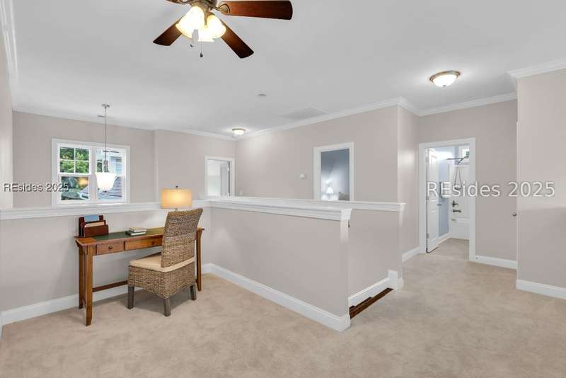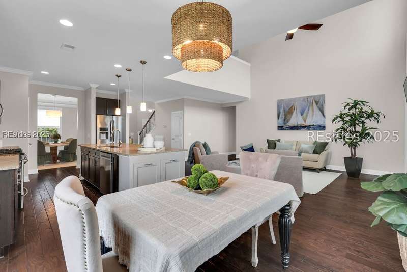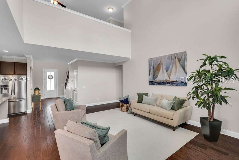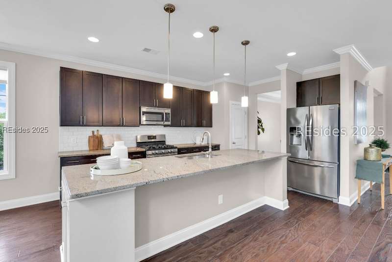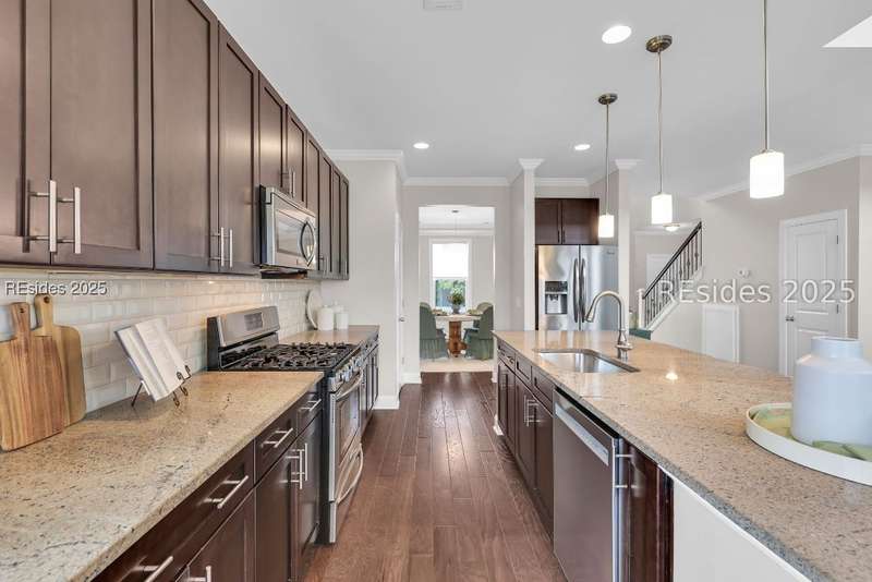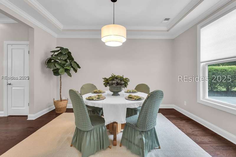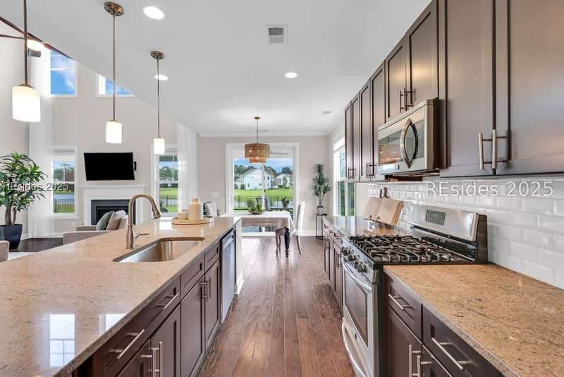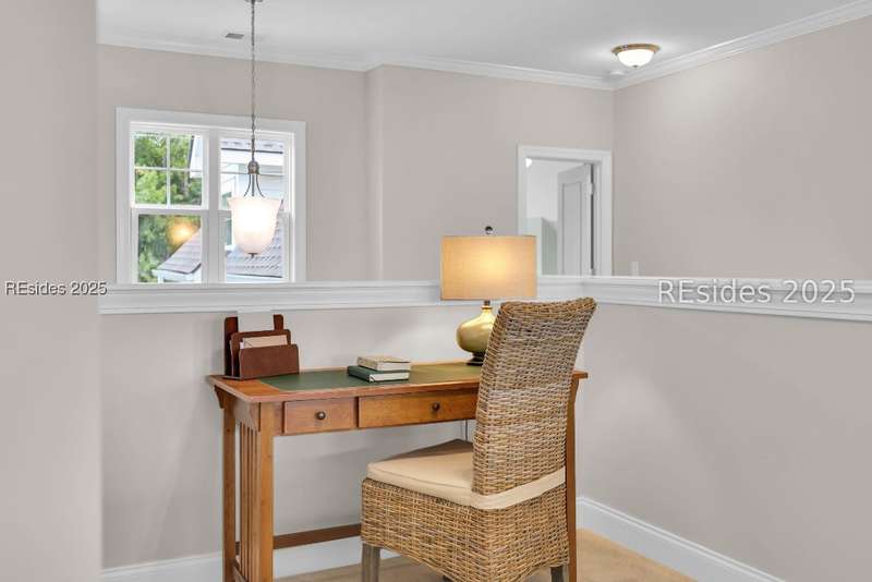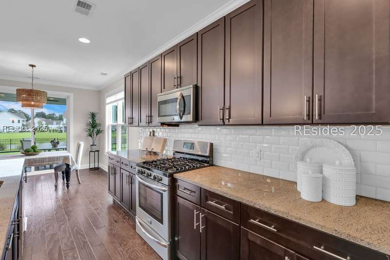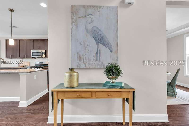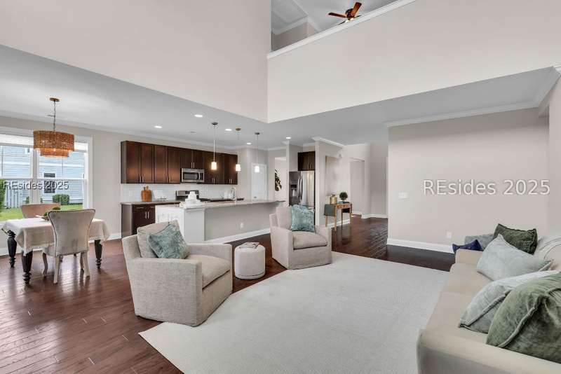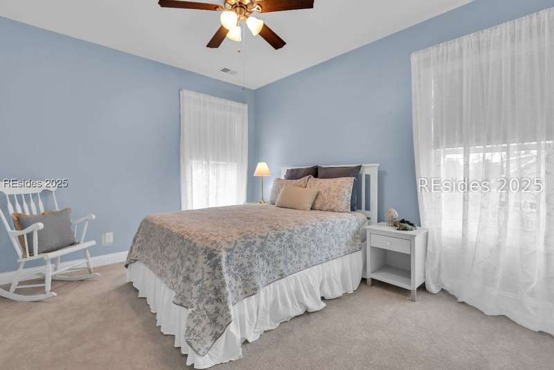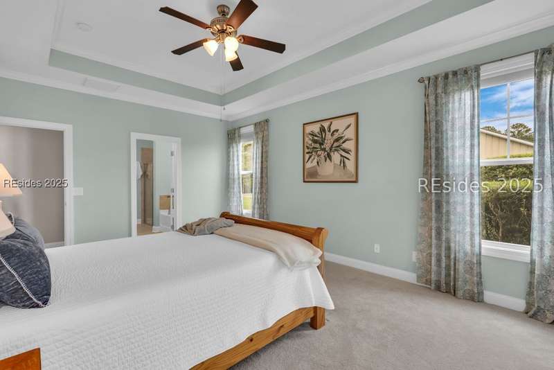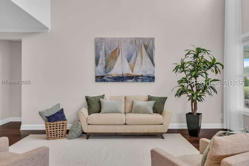 Welcome to this stunning 4-bedroom, 3.5-bathroom home in the highly sought-after gated community of May River Preserve in Bluffton, SC. Built in 2017 and meticulously maintained by the original owners, this spacious two-story home sits on over half an acre and offers breathtaking lagoon and water views.Step inside to an open-concept floor plan featuring engineered hardwood floors, elegant crown molding, soaring cathedral and tray ceilings, and a bright, airy layout designed for modern living. The first floor includes a welcoming foyer, a large great room with a built-in gas fireplace, a gourmet kitchen with granite countertops, stainless steel appliances, a large center island, and a sunny breakfast area. You will also find a separate dining room, laundry room with washer & dryer, powder room, and a spacious owners suite with a luxurious en-suite bathroom, soaking tub, oversized custom walk-in closet and the 40-foot screened porch overlooking the lagoon. Upstairs, enjoy brand new carp
