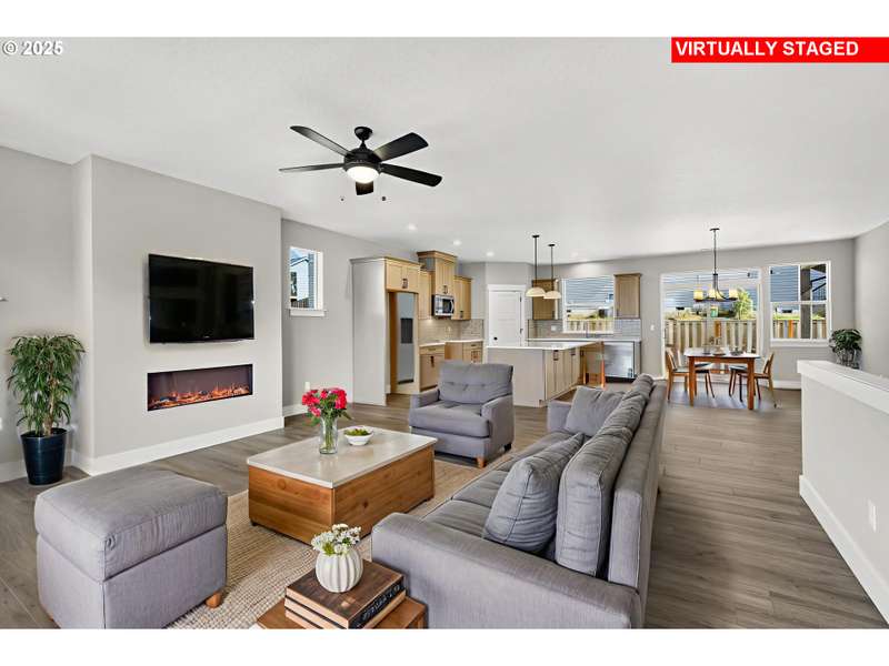 MOVE IN READY!Start your tour at the host home at 744 NE Trillium Dr, to view available homes in Dugan Estates! DUGAN ESTATES IS OPEN WEDNESDAYS THROUGH SUNDAYS 1 TO 4! SPECIAL INCENTIVES WITH PREFERRED LENDER. The Ramona ADU plan offers the perfect blend of spacious living and added privacy with a separate ADU! The main home includes 3 bedrooms and 2 bathrooms highlighted by a vaulted primary suite with a walk-in closet, double sinks and shower. The gourmet kitchen boasts sleek slab countertops, Energy Star Whirlpool stainless steel appliances, a large island, laminate flooring and a pantry all open to a generous great room and dining area—ideal for entertaining. The attached ADU provides its own private entry, 1 bedroom, 1 bathroom, and a cozy kitchen and living combo perfect for guests or rental potential. The property is fully landscaped in both the front and back yards completing this exceptional home. Dugan Estates homes are Stop in to see this fantastic property in person! Washers, Dryers and Refrigerators are not included.