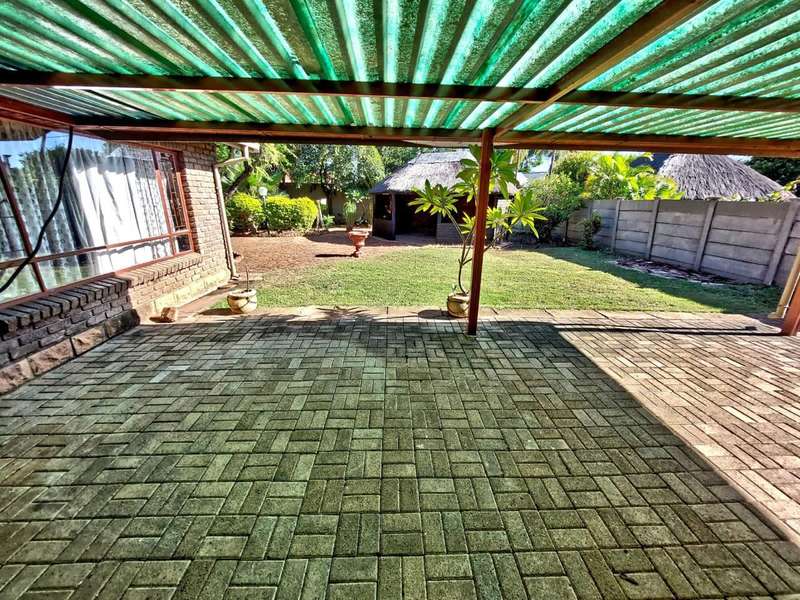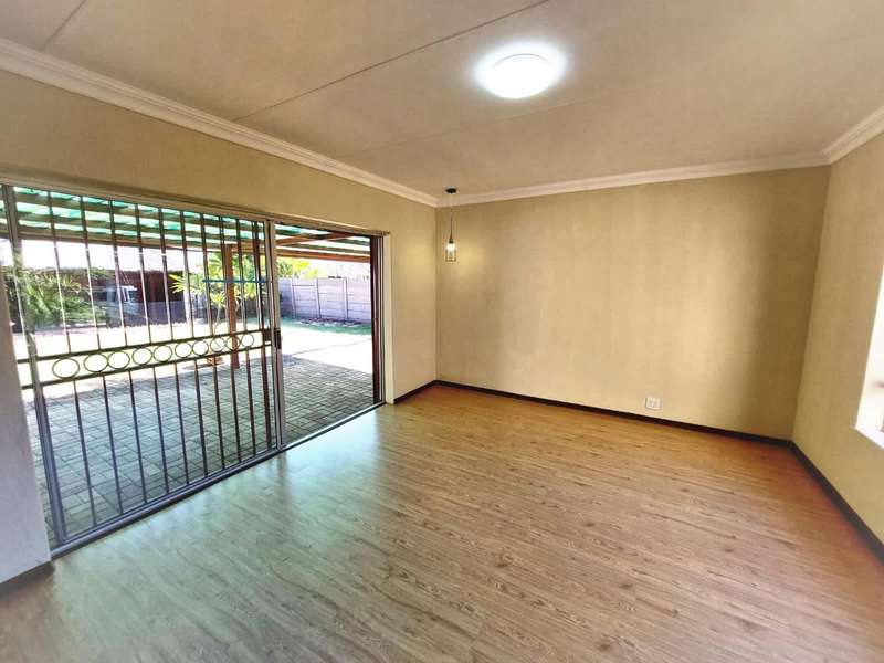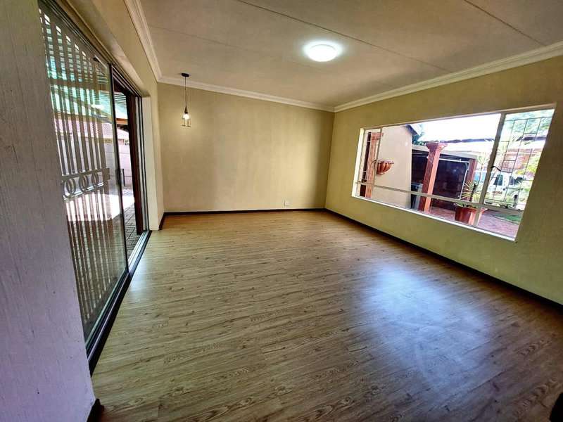 This 3-bedroom, 2-bathroom property on a generous 1118 sqm stand offers space, comfort, and great potential. Featuring two inviting living areas that open onto a covered patio, a separate dining room, and a well-equipped kitchen, this home is perfect for family living and entertaining. Outdoor features include a thatch lapa, a covered courtyard, and an established garden, creating a peaceful retreat. The property also offers excellent security with burglar bars throughout. Additional conveniences include three garages, a flatlet with a kitchenette and bathroom, and two boreholes (currently not in use). Don’t miss this opportunity—schedule a viewing today!