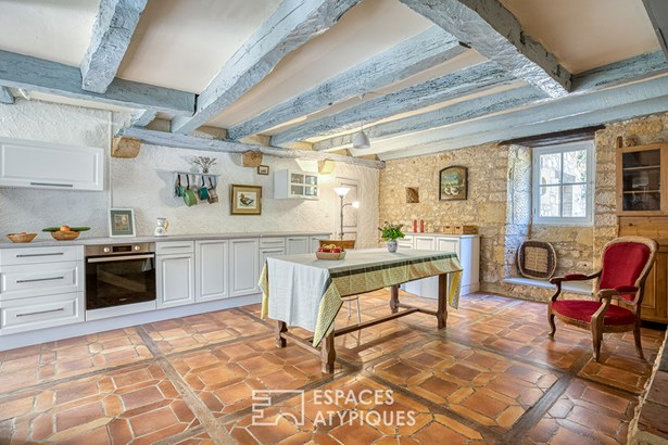 The warm Perigord stone, exposed beams, and stone fireplaces will leave you speechless, giving an undeniable cachet to this beautiful building dating from 1730.