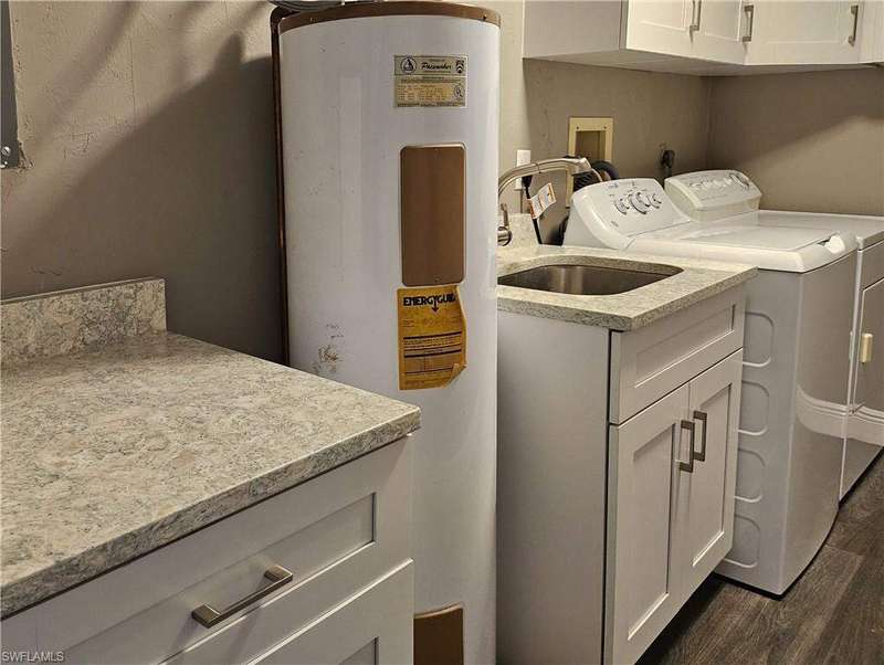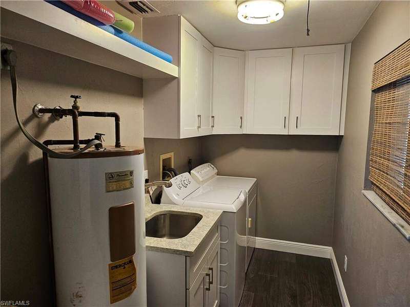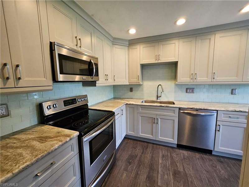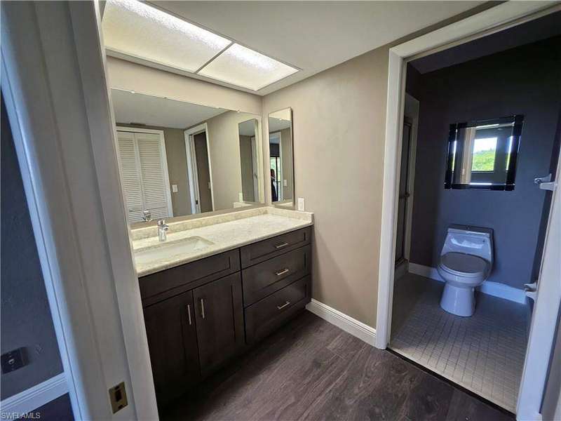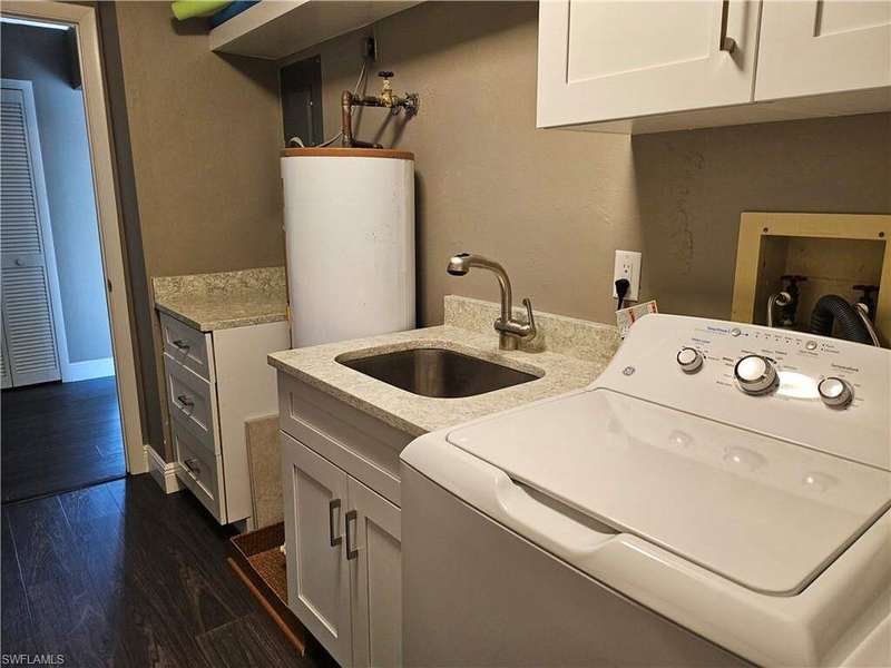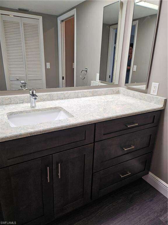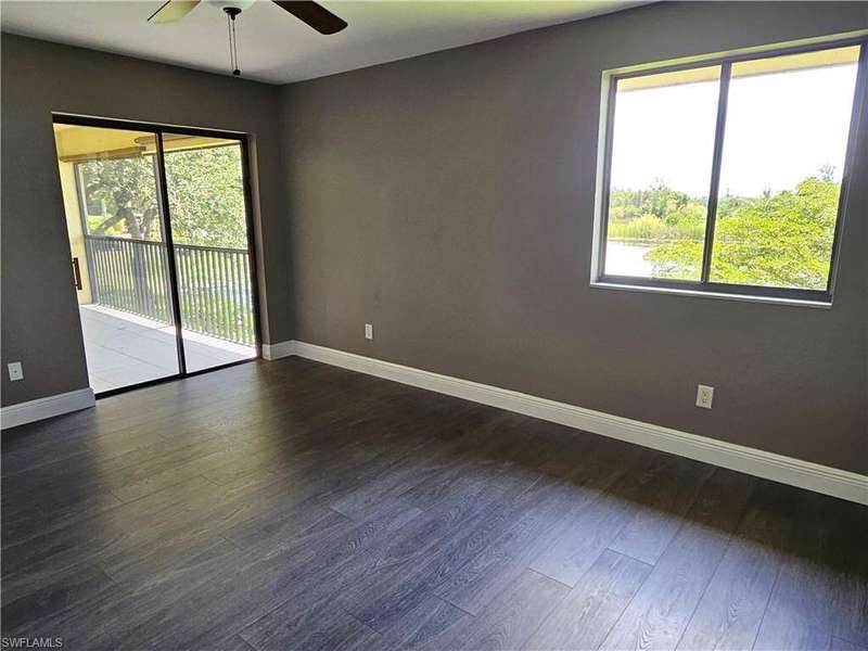 Absolutely stunning unit with a breathtaking lake view. This unit has been renovated to the latest trends. Beautiful kitchen with nice cabinets, under cabinet lighting, quartz counter tops and upgraded appliances. Bathrooms have been remodeled with nice vanities, granite countertops and upgraded fixtures. New window coverings. Spacious laundry room in unit with washer and dryer, extra storage plus hallway closets in unit for storage. The building features a lovely pool with lounge chairs, tables, umbrellas and outdoor area for your use. Assigned parking in front of unit, plus cable and internet are included! All this located in a very quiet, but super convenient part of South Fort Myers, tucked back off of 41. Responsible owner, looking for a responsible tenant to take good care of this beautiful property.