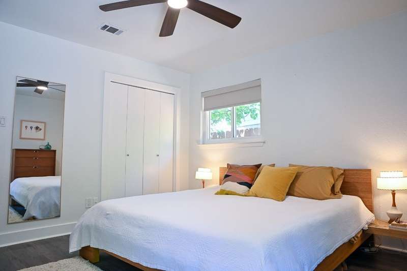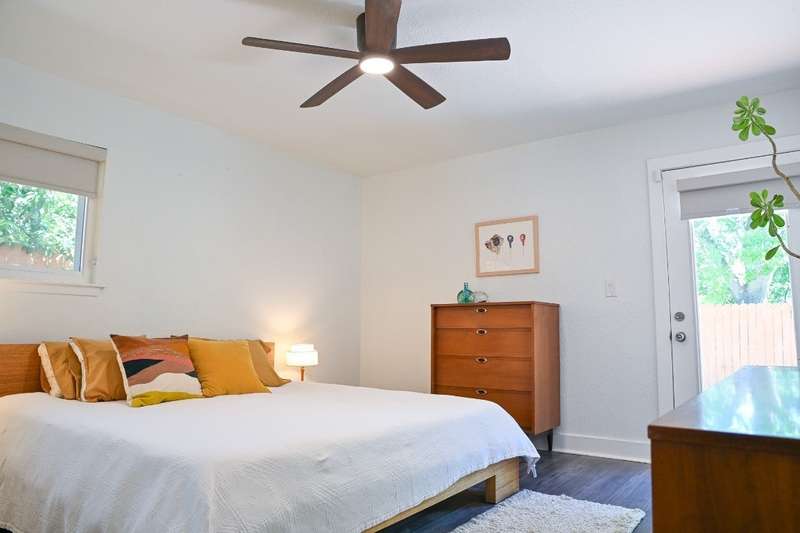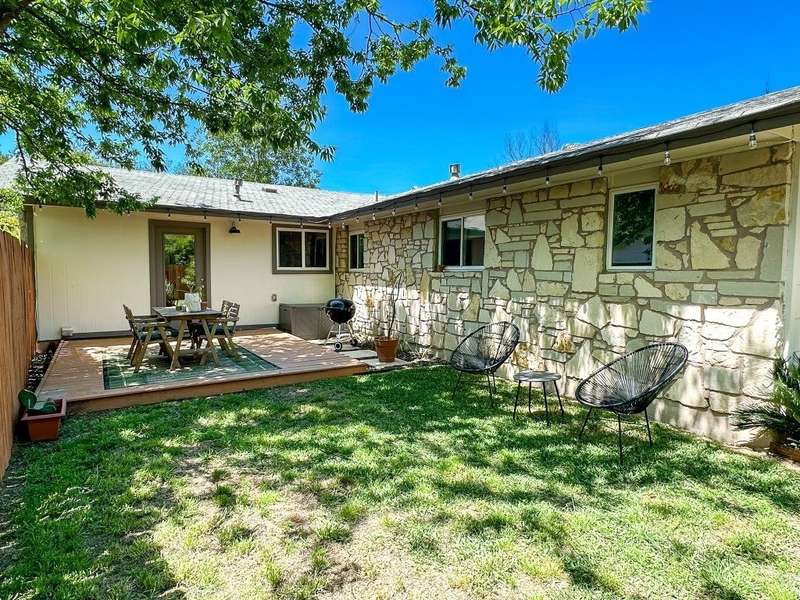 Bring us an offer! Motivated seller offering up to $15,000 in closing cost assistance to be used towards a rate buydown or however is most helpful to buyer. Natural light from the limestone entry courtyard fills the living area of this Quail Creek oasis. Enjoy the fireplace and vaulted ceilings in the open floor plan living space that connect to the sleek, updated kitchen. Primary bedroom opens onto a private deck overlooking a backyard rock garden. Beautiful, marble-tiled primary bath boasts a double vanity, glass enclosed shower with built-in bench, and modern light fixtures. Bonus room with pocket door and closet (not included on TCAD) currently used as an office. A branch of Little Walnut Creek surrounds the property with trees, creating a feeling of privacy in the spacious backyard. Energy efficient windows installed in 2023 and custom window shades, including motorized shades in the living room, convey. Refrigerator and washer/dryer included. Google nest camera doorbell and thermostat are also included as well as the Rubbermaid FastTrack system and wall shelves in the garage. Minutes from the Domain, North Austin tech hub, Q2 Stadium and dining, including some of Austin’s favorite breweries!