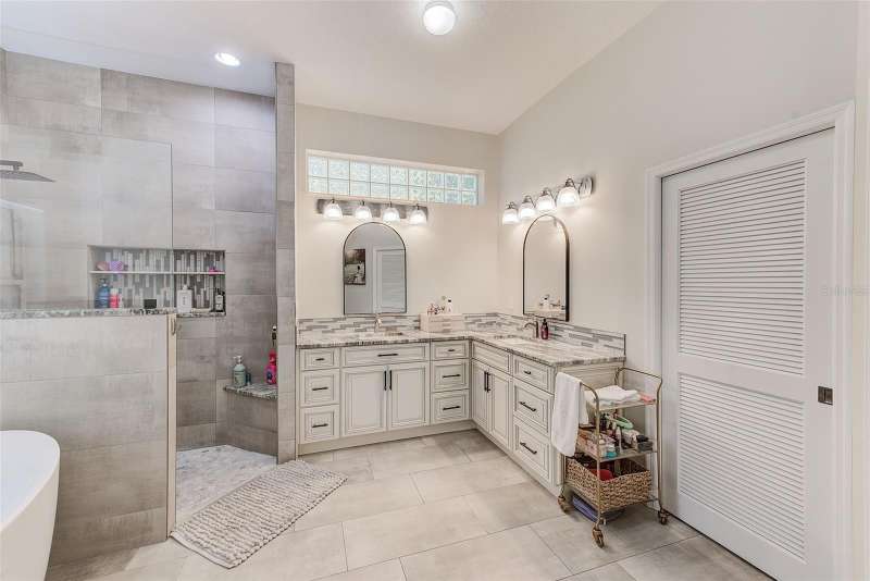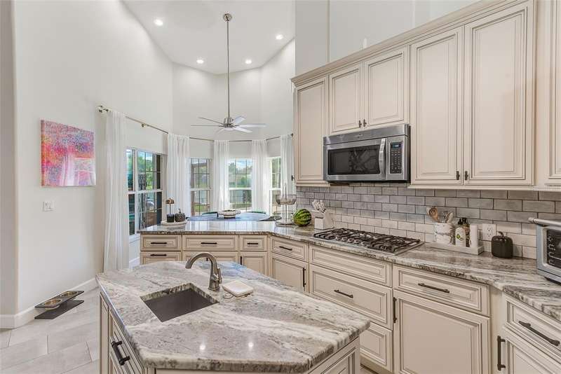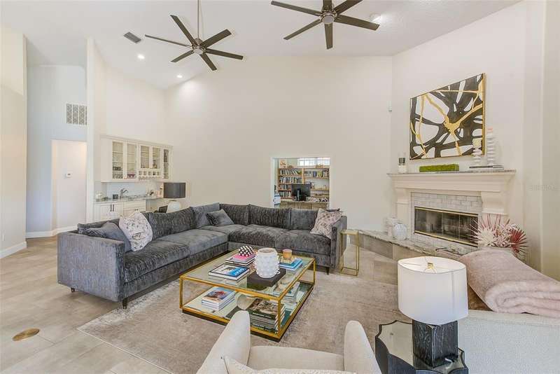 Experience refined Florida living in this stunning 3-bedroom, 3.5-bath home offering 3,458 square feet of beautifully renovated living space, a 4-car garage, and an incredible pool overlooking a tranquil lake with a fountain, all tucked within the highly sought, guard-gated Bayou Club Estates. Step inside to find soaring ceilings, abundant natural light, and a flowing open layout that highlights the home’s quality finishes and thoughtful design. The main living areas feature elegant oversized porcelain tile flooring laid on the diagonal, creating a seamless, designer look throughout the great room, kitchen, office, and primary suite. The expansive great room is the heart of the home, centered around a beautiful fireplace and complemented by a built-in wet bar, ideal for entertaining. The chef’s kitchen, remodeled in 2021–2022, blends form and function with custom cabinetry, granite countertops, stainless appliances, and a large island that opens directly to the living space. A triple pocket sliding door expands the interior onto the 425-square-foot screened lanai, complete with a summer kitchen, wet bar, and ample covered space for dining or lounging alfresco. Beyond, enjoy the sparkling pool and peaceful lake views, creating the perfect backdrop for relaxing or hosting guests. The primary suite is a luxurious retreat featuring a freestanding jetted soaking tub, a spacious walk-in shower, dual vanities, and a custom walk-in closet. Two additional bedrooms share a beautifully updated full bath, while a third full bath conveniently opens to the lanai and pool area for outdoor use. The private office offers built-in shelving, a charming bay window overlooking the water, and pocket glass doors for quiet separation—making it ideal for working from home or reading in peace. The spacious laundry room provides abundant cabinetry, a sink, and generous counter space, adding convenience to everyday living. Recent updates include a barrel tile roof (2013), new HVAC systems and water heaters (2022), a fully renovated kitchen and primary bath, and new flooring throughout, making this home truly move-in ready. Located within the award-winning Bayou Club, residents enjoy 24-hour guarded security, tree-lined streets, and the option to join the private golf club offering championship golf, tennis, pickleball, a fitness center, and a community pool. The location is unbeatable—just 15 minutes to the Gulf Coast’s beautiful beaches, 20 minutes to vibrant downtown St. Petersburg, and 30 minutes to Tampa and Tampa International Airport. Don’t miss your chance to own an exceptional piece of paradise in one of Pinellas County’s most sought-after gated communities.