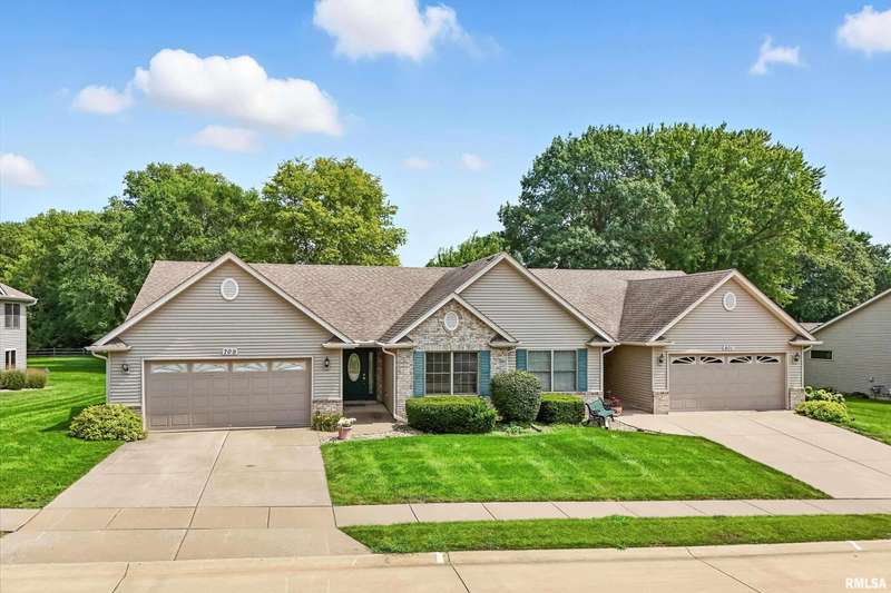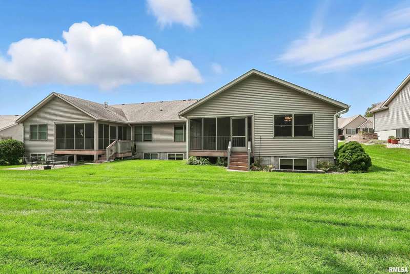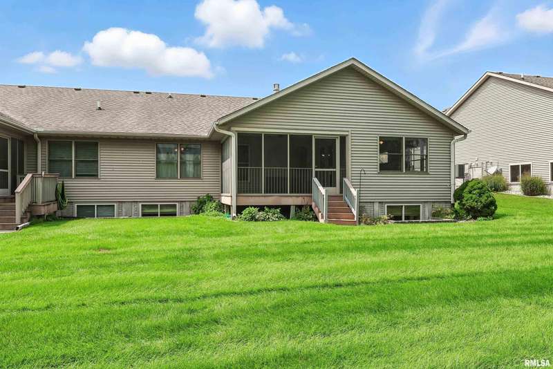 NEW PRICE! LeClaire, Iowa 2-bedroom, 3-bath RANCH CONDO. (no step entry) Lawn care & snow removal included, a low-maintenance lifestyle! Small town charm with quick access to city conveniences & interstate travel. Take in the scenic drive along the Mississippi River on your way home. Enjoy the cozy fireplace, screen porch new 2019, private backyard, 1st floor laundry. Primary bedroom features private bath with low step shower and walk-in closet. Furnace/AC new in 2021 (regularly serviced), water heater 2024. Partially finished basement features a rec room, 3rd bath, lots of storage, 2 egress windows and the potential for a 3rd bedroom. Generous $5,000.00 carpet allowance with an acceptable offer. (bid of $3,426 from Wayne Montgomery Flooring Co.) New roof (shingles) to be installed Sept 2025.