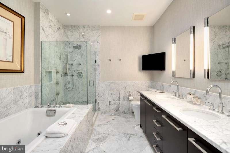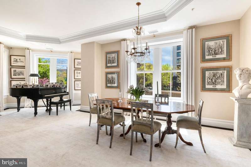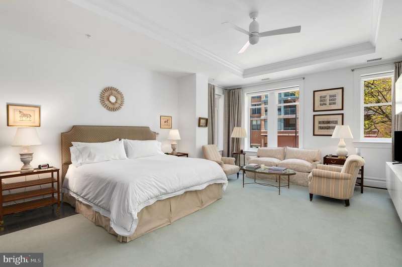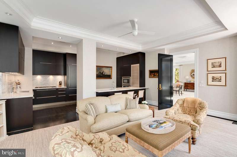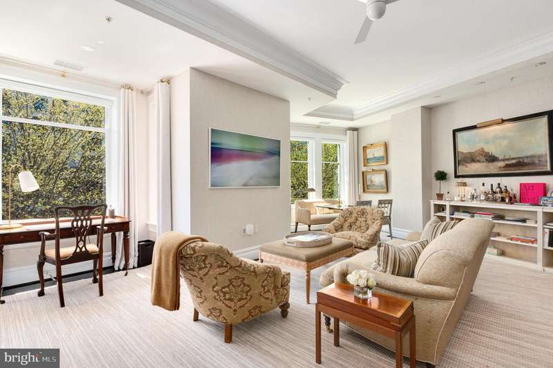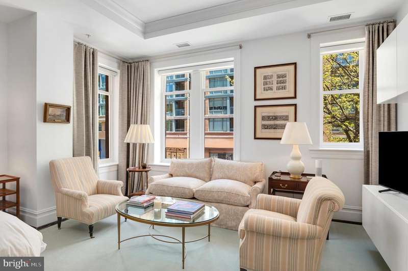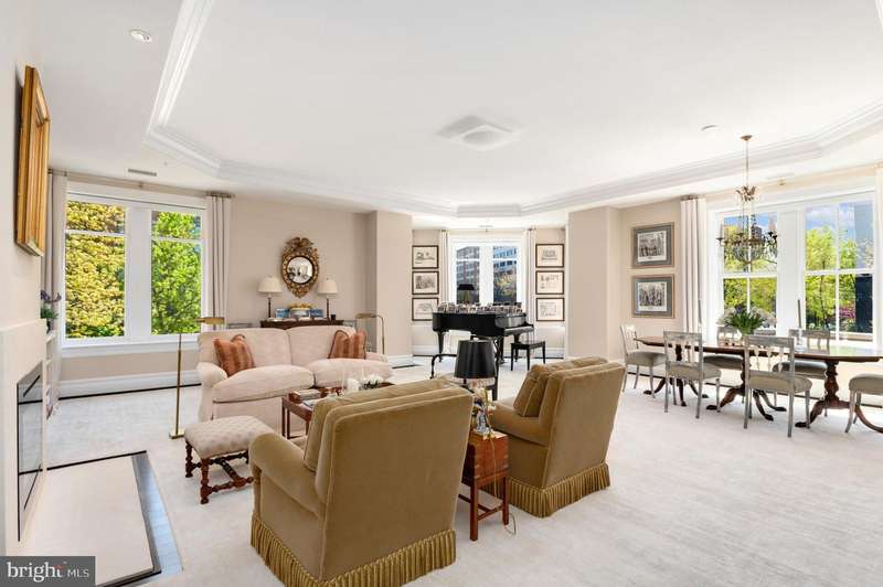 Nestled at the intersection of Georgetown and the vibrant West End neighborhood of Washington, D.C., 2501 Pennsylvania Ave NW #2A epitomizes sophisticated luxury paired with city conveniences. This expansive residence offers over 2,700 square feet of exquisite living space, featuring 2 Bedrooms and 2.5 Bathrooms. The unit is bathed in natural light and showcases elegant finishes alongside designer fixtures. Designed for both entertaining and comfortable daily living, the open floor plan enhances functionality without sacrificing opulence.Upon entry, a circular foyer ushers you into the expansive living room, highlighted by 10-foot tray ceilings, an electric fireplace, and abundant windows. The dining room flows effortlessly into the gourmet kitchen, which is a chef's dream, equipped with marble countertops, top-tier appliances, and custom cabinetry. Adjacent to the kitchen are the family and breakfast rooms, as well as a sun-drenched office space, making everyday living a breeze.The private suites are situated in the west wing, offering lavish comfort. The spacious primary suite features 10-foot tray ceilings, a built-in media console, a generous dressing area, and a spa-like ensuite bathroom adorned in marble with a dual vanity, soaking tub, and walk-in shower. The second ensuite bedroom is equally impressive, with high tray ceilings, built-in storage, a dressing area, and a marble bathroom with a tub shower. A sizable laundry room with a service entrance completes this exceptional offering.Situated in a boutique condo building established in 2009, residents enjoy unparalleled security and convenience, including a 24/7 concierge service, two underground parking spaces, and a large storage room. The building's prime location offers incredible access to local grocers, esteemed dining venues, and premier retail destinations in Georgetown, Dupont Circle, and Foggy Bottom.