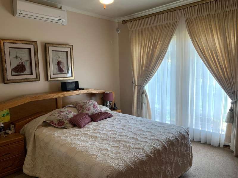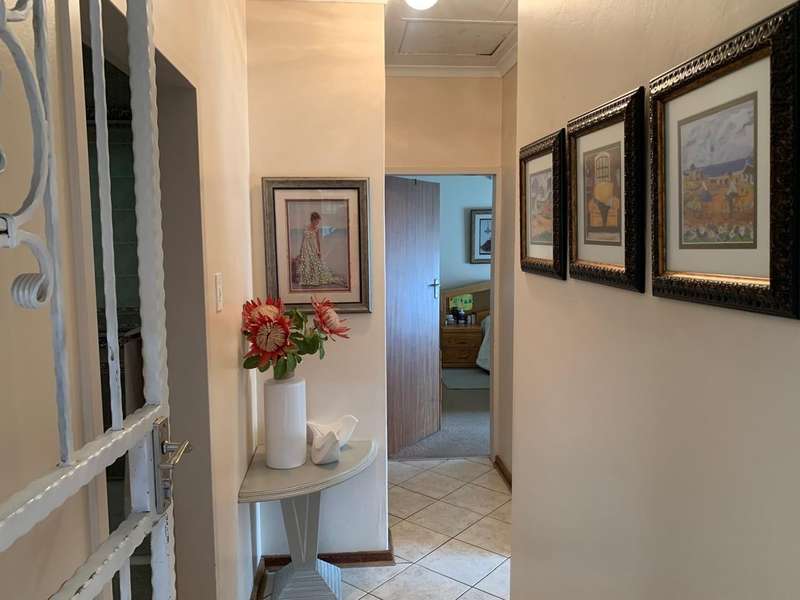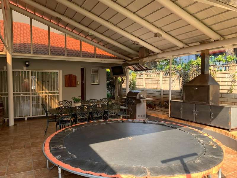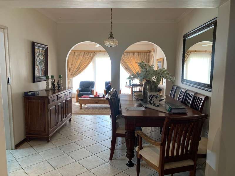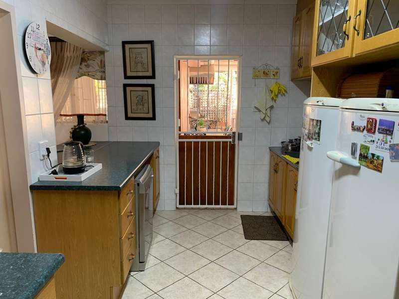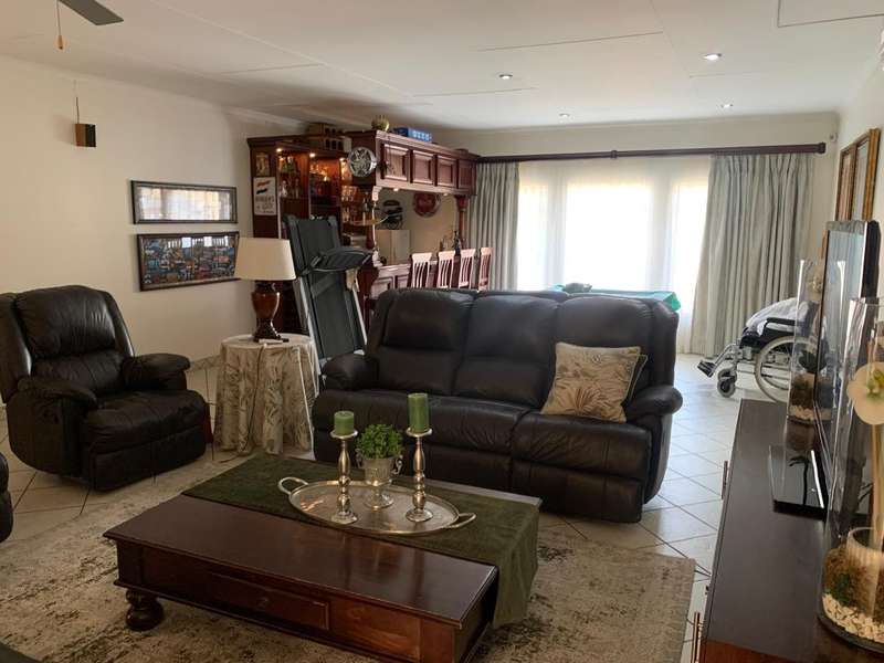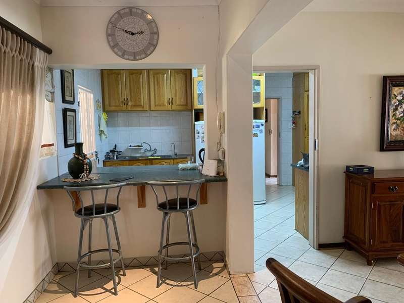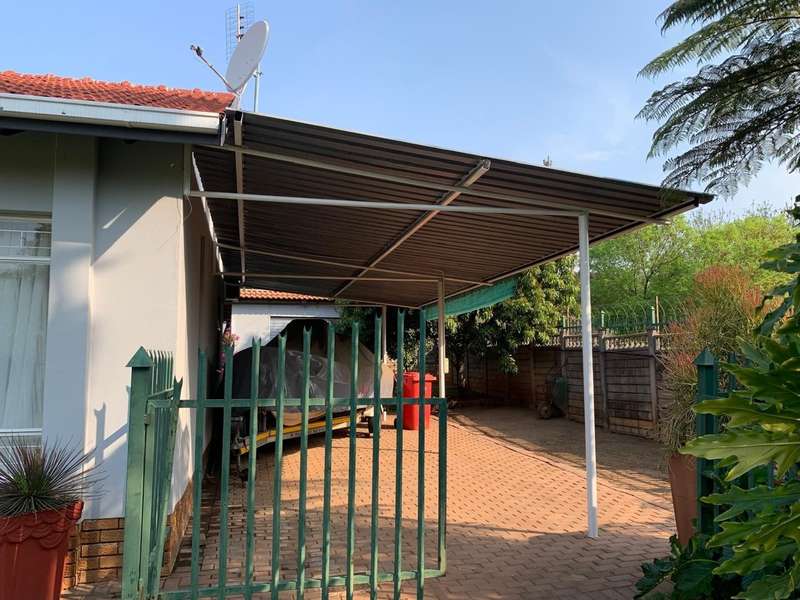 Step into elegance and comfort with this spacious 355sqm home, perfectly situated in a sought-after neighbourhood built on a corner stand. This beautifully maintained property offers the ideal blend of luxury, practicality, and security. Featuring 3 well-sized bedrooms, all carpeted with built-in cupboards and air-conditioning, the home ensures year-round comfort. The main bedroom includes a stylish en-suite bathroom, complemented by a second full bathroom for family convenience. Multiple living areas provide space for everyone. A welcoming lounge, a dedicated TV room with aircon, and a dining room seamlessly flowing into a stunning modern kitchen. Designed for the home chef, the kitchen boasts a gas stove, a dual gas and electric oven, a pantry, scullery, and laundry area. Entertaining is a pleasure with a covered patio and a built-in braai, ideal for hosting family and friends. The manicured garden, with a manual irrigation system, enhances the outdoor lifestyle. Additional features include: 2 garages plus 2 carports Outside toilet Storage/tool shed with garage door Burglar bars, security gate, and alarm system Prefab walling at back and sides and palisade walling in front Fibre-ready with pre-paid electricity This property combines luxury finishes, functional spaces, and excellent security, making it the perfect home for modern family living.