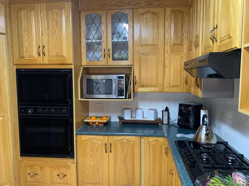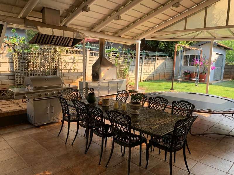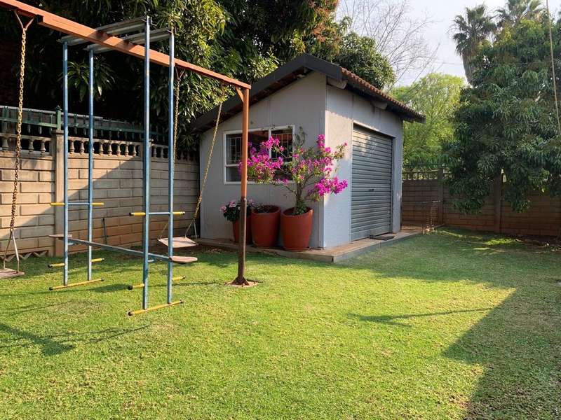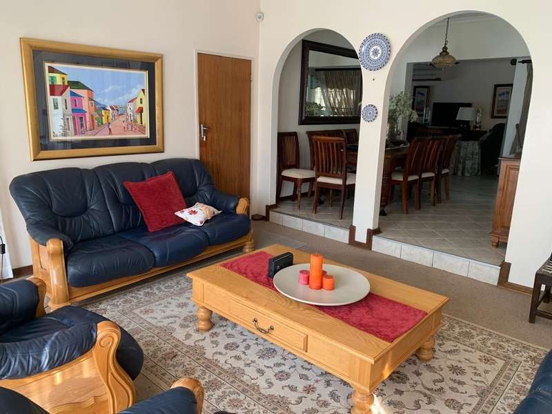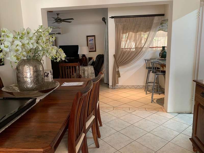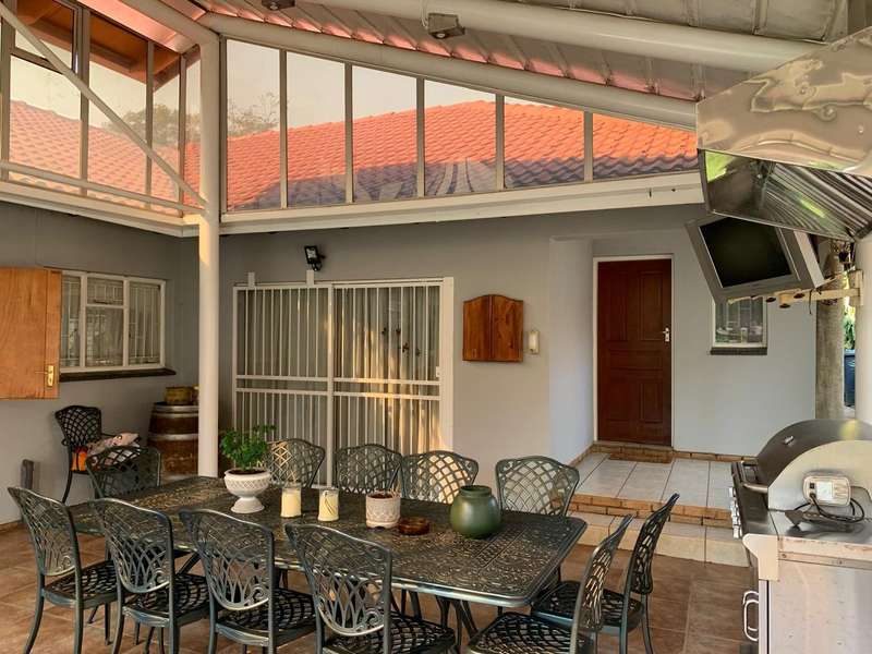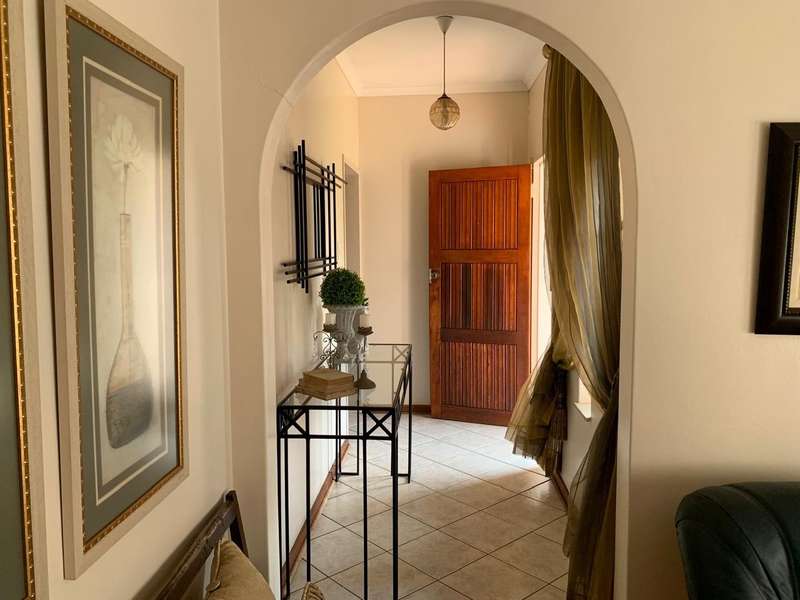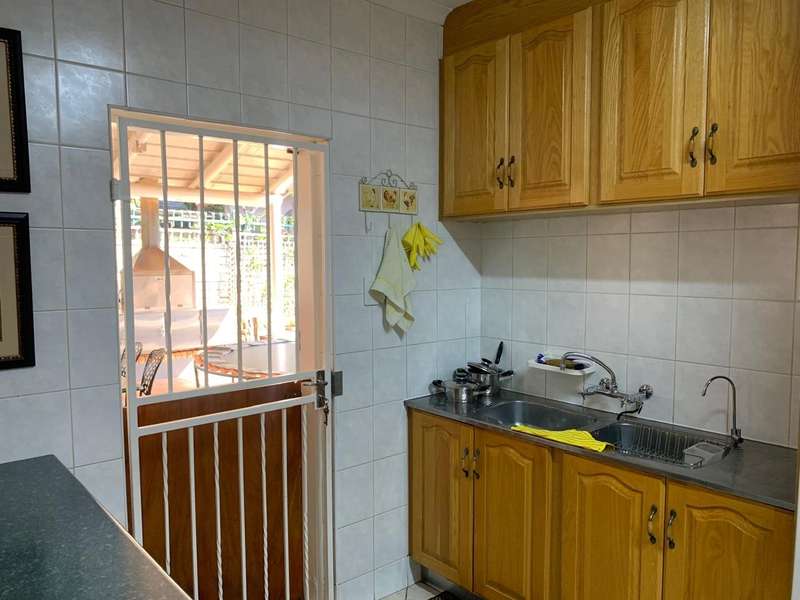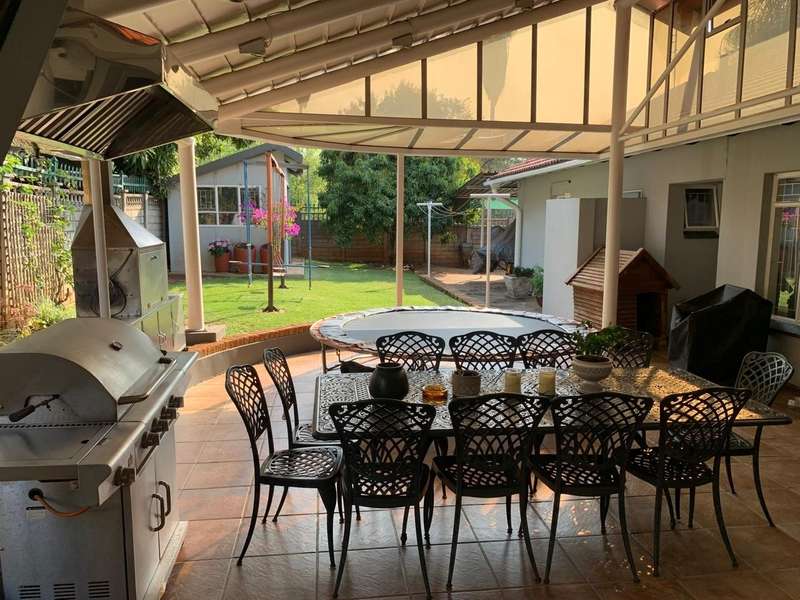 Step into elegance and comfort with this spacious 355sqm home, perfectly situated in a sought-after neighbourhood built on a corner stand. This beautifully maintained property offers the ideal blend of luxury, practicality, and security. Featuring 3 well-sized bedrooms, all carpeted with built-in cupboards and air-conditioning, the home ensures year-round comfort. The main bedroom includes a stylish en-suite bathroom, complemented by a second full bathroom for family convenience. Multiple living areas provide space for everyone. A welcoming lounge, a dedicated TV room with aircon, and a dining room seamlessly flowing into a stunning modern kitchen. Designed for the home chef, the kitchen boasts a gas stove, a dual gas and electric oven, a pantry, scullery, and laundry area. Entertaining is a pleasure with a covered patio and a built-in braai, ideal for hosting family and friends. The manicured garden, with a manual irrigation system, enhances the outdoor lifestyle. Additional features include: 2 garages plus 2 carports Outside toilet Storage/tool shed with garage door Burglar bars, security gate, and alarm system Prefab walling at back and sides and palisade walling in front Fibre-ready with pre-paid electricity This property combines luxury finishes, functional spaces, and excellent security, making it the perfect home for modern family living.
