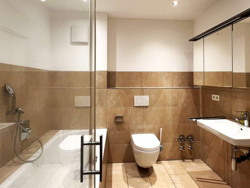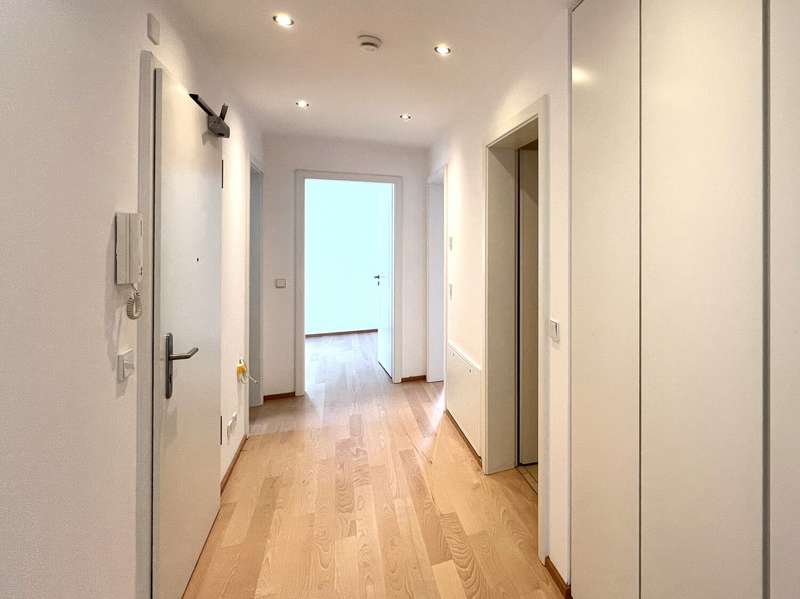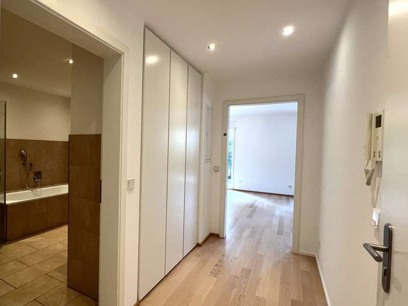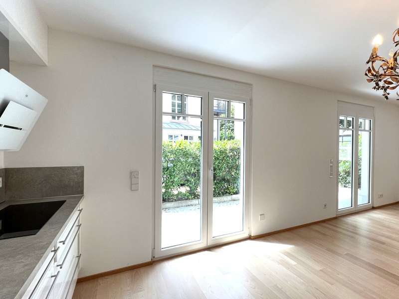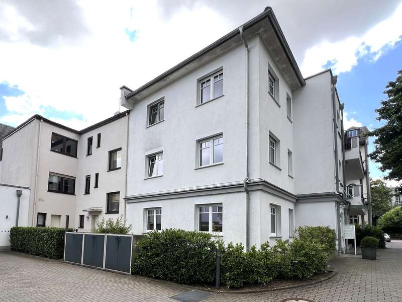 Central city apartment in Bad Homburg This well-kept, as-new 3-room apartment with terrace is located on the first floor of an exclusive apartment building built in 2011 by Bernhard Bauträger GmbH. The elegant residential complex consists of three exclusive-looking townhouses with a total of nine residential units. Each building has its own sub-company with three residential units. There is a shared underground parking garage with a car lift. The first floor apartment is furnished to a high standard and modern and offers a well thought-out room concept on a living space of approx. 88 m²! Here you live centrally in Bad Homburg, just a few minutes' walk from the pedestrian zone and the spa gardens! A location that is ideal for buyers who prefer to leave their car in the underground garage and be active on foot or by bike. Public transport can also be used, as there is a bus stop close to the building. The entrance area, past the elevator that takes you comfortably to all other floors, takes you to the hallway of the apartment on the first floor. All rooms can be accessed from here. To the right is the light-flooded, spacious living and dining area with an open, integrated kitchen and high-quality electrical appliances. The beautiful, white fitted kitchen blends harmoniously into the contemporary ambience of the apartment and is included in the purchase price. Floor-to-ceiling folding glass doors lead to the approx. 16 m² covered south-west-facing terrace. This is lined with evergreen hedges, so you can enjoy privacy when dining, sunbathing or relaxing. The hallway leads to the left to the private rooms: two spacious rooms are available as bedrooms or studies. A guest WC is adjacent. A spacious bathroom (with bathtub and walk-in shower) is equipped with modern fittings and also has a practical washing machine connection. High-quality parquet flooring in all living areas and tasteful, light-colored tiles in the kitchen and bathrooms create an exclusive living ambience. Electric shutters provide comfort. The walls are covered with non-woven paint and have thermal insulation, while the floors have underfloor heating and sound insulation. A cellar compartment, which belongs to the apartment, is located in the basement of the building. However, this can only be used to a limited extent as a dehumidifier has been installed. A private parking space in the underground garage with car lift is available and rounds off this special offer. The apartment is ideal for senior citizens as it is barrier-free. Owner-occupiers and investors looking to invest in central locations with excellent connections will be delighted with this location. You don't often find a contemporary, modern and very well-maintained property. We therefore recommend that you come and view this beautiful property for yourself!