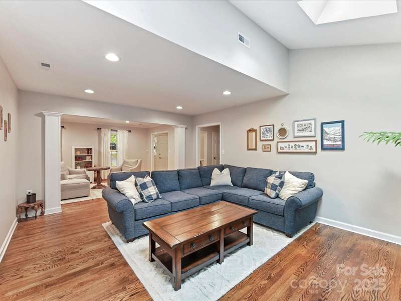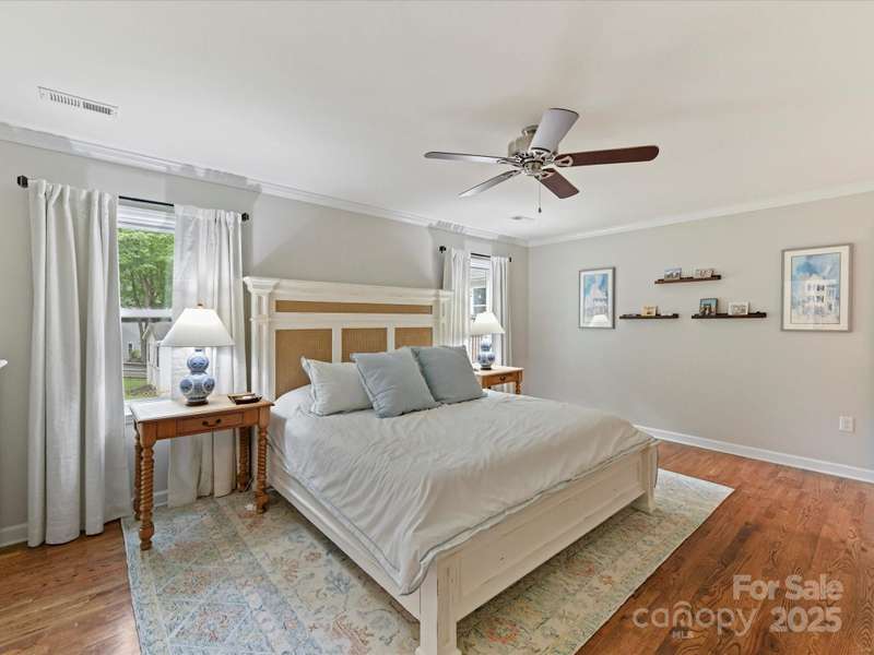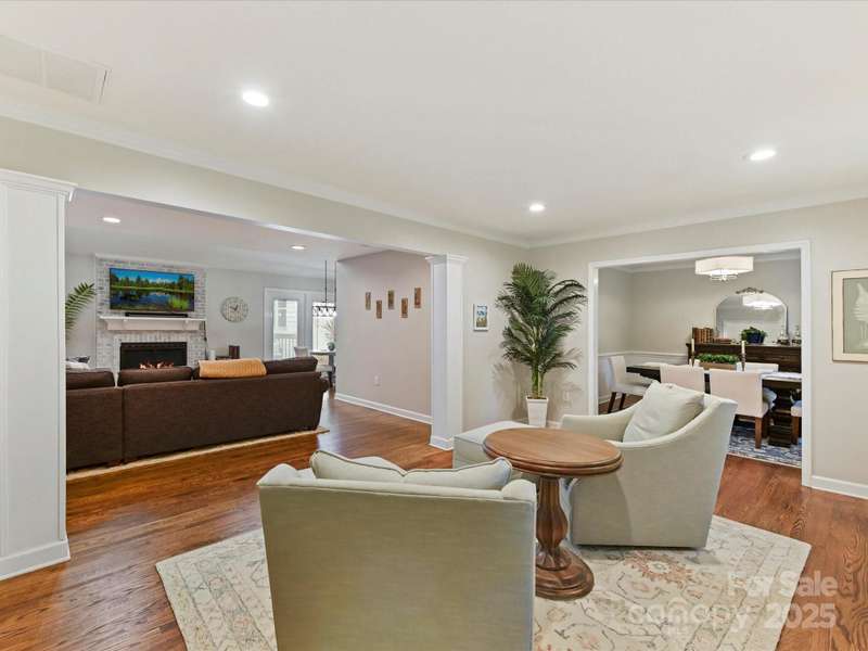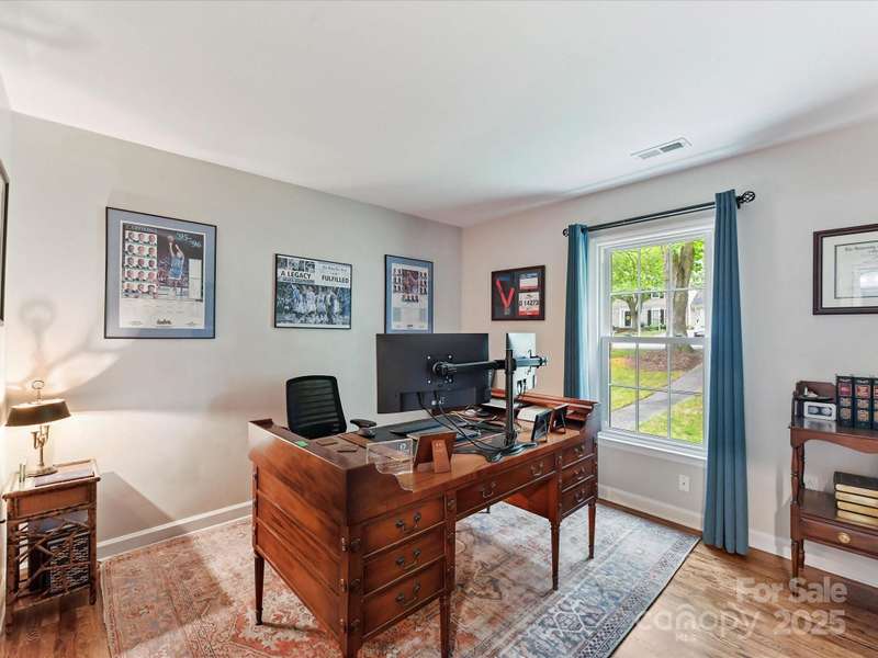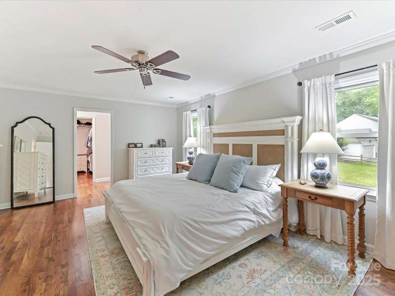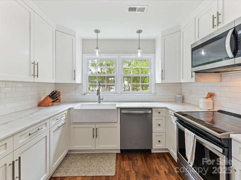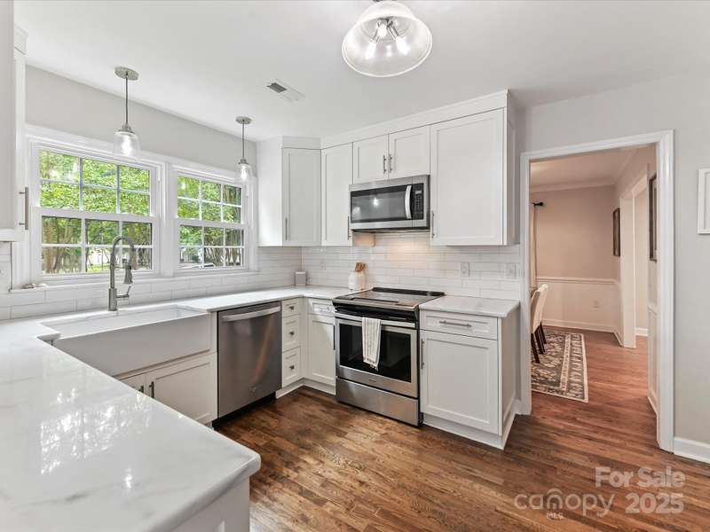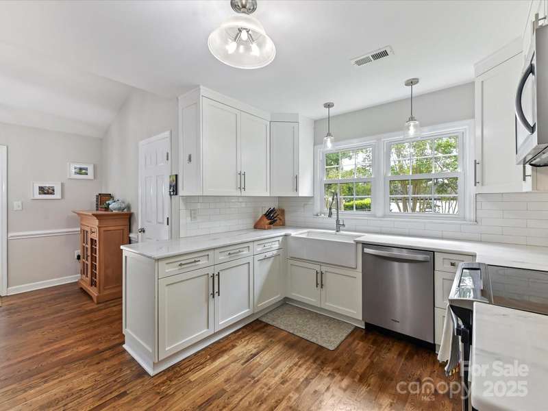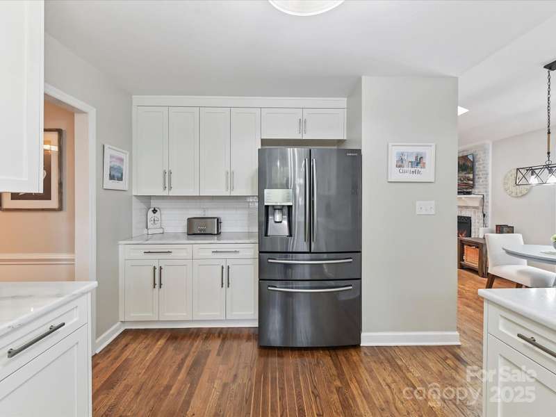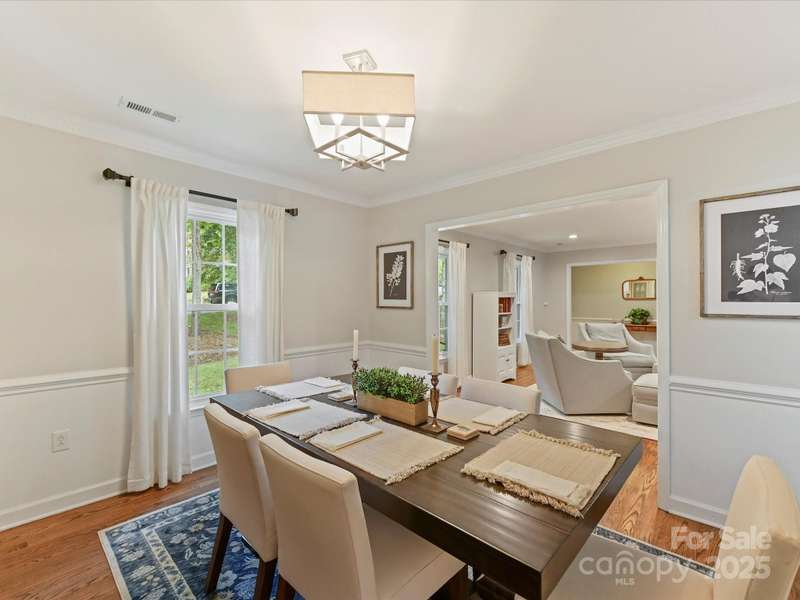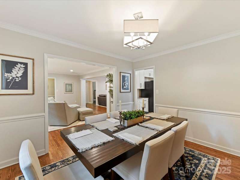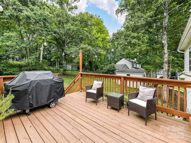 Meticulously maintained 4-bed, 2-bath, one-story home nestled in the coveted South Charlotte area. Kitchen features white shaker cabinets, quartzite countertops, farmhouse sink, and stainless-steel appliances. Traditional floor plan flows seamlessly into the inviting living room complete with wood burning fireplace, and open to separate sitting area and dining room. Primary bedroom offers an en-suite bathroom with dual vanities, updated shower, and oversized walk-in closet. Three additional bedrooms share a well-appointed bathroom. French doors from the breakfast area open to a back deck with an expansive, fully fenced backyard. Rare 2-car garage includes a versatile room above that can serve as an office, entertainment space, workshop, exercise room, etc. Enjoy the convenience of proximity to all the amenities of Ballantyne and South Park.