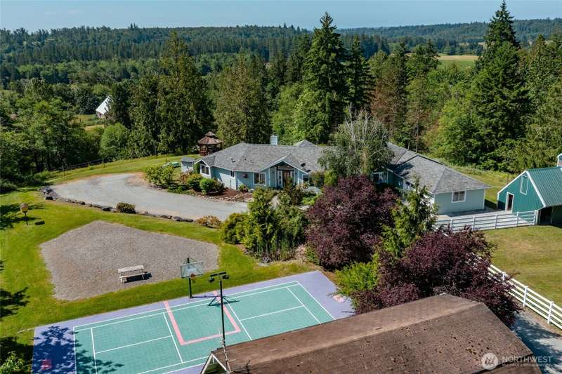 Here is the stunning & expansive Equestrian property you’ve been waiting for. Stable w/3 stalls & 2 outdoor arenas. 2,777 sq foot custom built one story home was constructed w/thoughtful attention to detail every step of the way+ample storage. Hardwood floors engineered to be silent. 3 bedrooms + office, spacious great room w/oversized windows overlooking beautiful views & large media room. Primary bedroom w/views, a walk-in closet, an en-suite double vanity, soaking jetted tub, shower & private water closet. Large media room, shop w/loft above 1 bedroom apartment, chicken coop+fenced garden area, sports court, gazebo, stamped concrete custom fire pit. This is one of those “must sees” to view everything this spectacular home has to offer.