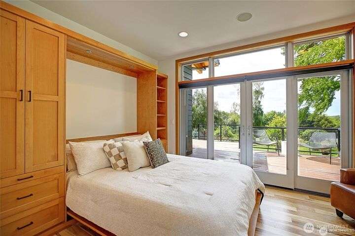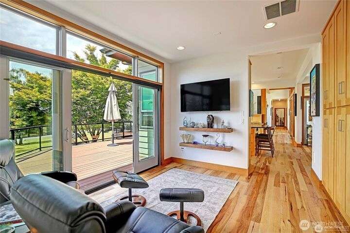 Exquisite Mid Century style home on 6.4 beautiful acres with evergreens and trails throughout. Views of the Olympics, Sound, City, Sunsets, & Valley. 6 parcels within the city limits. Drive up to your finished 4 car garage and walk through a gorgeous courtyard into your own piece of Paradise. Beautiful open kitchen with large island. Stainless high-end appliances. Adjoining is your dining area with lots of built-ins. TV room, with adjoining office. Huge deck the width of the house. Large living room with steel fireplace. Secondary bedroom, 3/4 bath, machine room and guest closet are steps away. Spacious primary suite with updated bath and walk-in closet. Detached studio guest room with beautiful granite counters and 3/4 bath. Green Built!