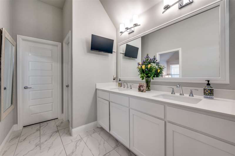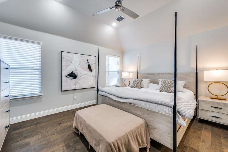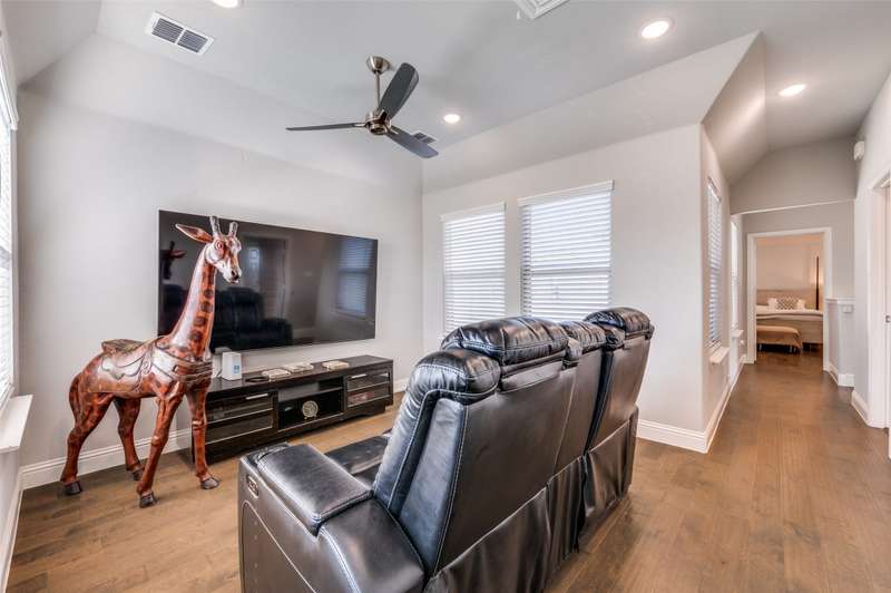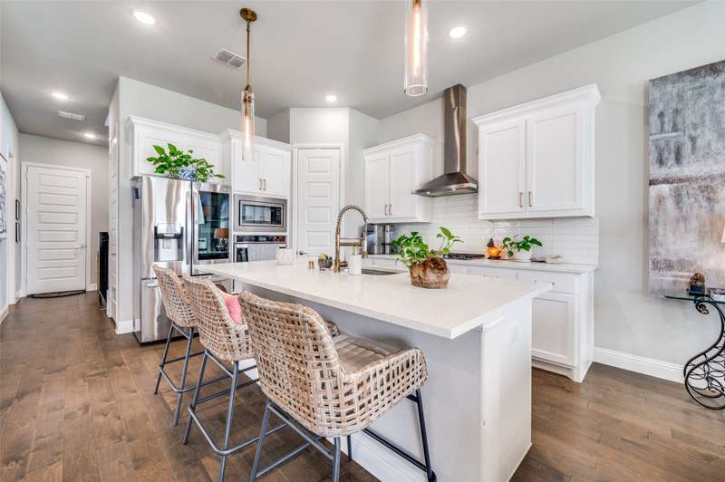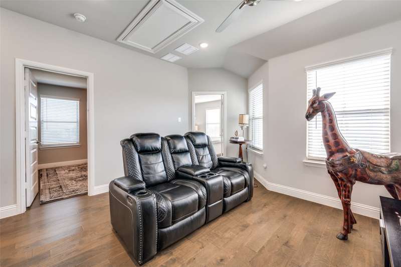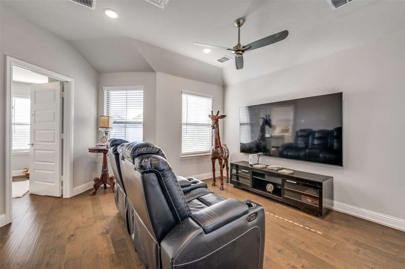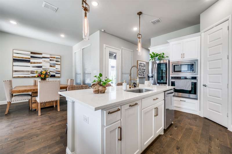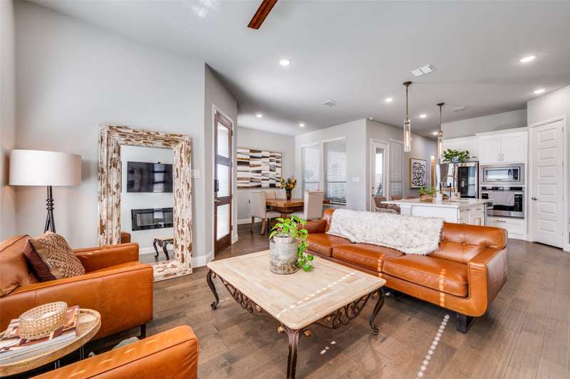 Easy Care Elevated Living in the Heart of Frisco! Welcome to this stunning two-story, 3 bedroom, 2.5 bath home in the highly desirable Park West subdivision offering low-maintenance luxury and unbeatable convenience! Designed for effortless living, this home features soaring ceilings, abundant natural light, and rich hardwood floors throughout. The chefs kitchen impresses with stainless steel appliances, quartz countertops, a large island with breakfast bar, and a 5 burner gas cooktop and open to outside oasis. The open-concept layout flows perfectly into the living and dining areas, making entertaining a breeze.Upstairs, unwind in the spacious primary suite with a spa-like ensuite bath complete with dual vanities, an oversized shower, and a walk-in closet. Two additional bedrooms and a flexible gameroom or flex room offer plenty of space for work, guests, or play.Enjoy easy outdoor living with a tiled patio area, artificial turf, string lighting, and a separate dog run giving you beauty and function without the upkeep. Dont miss the epoxy-finished 2 car garage with rear entry adds even more practicality. Convenient to the PGA headquarters, World Cup soccer, dining and entertainment, the North Dallas Tollway and Sam Rayburn Tollway, the Star, and soon to be Universal Studios theme park and all that Frisco has to offer!
