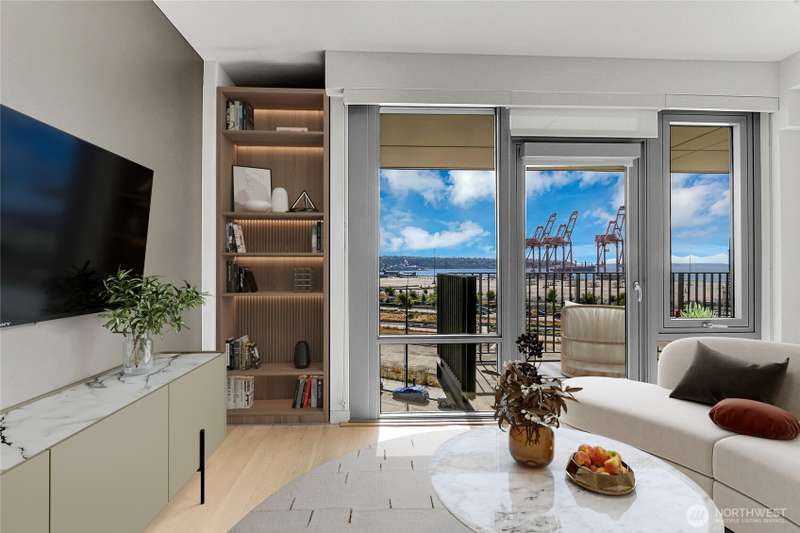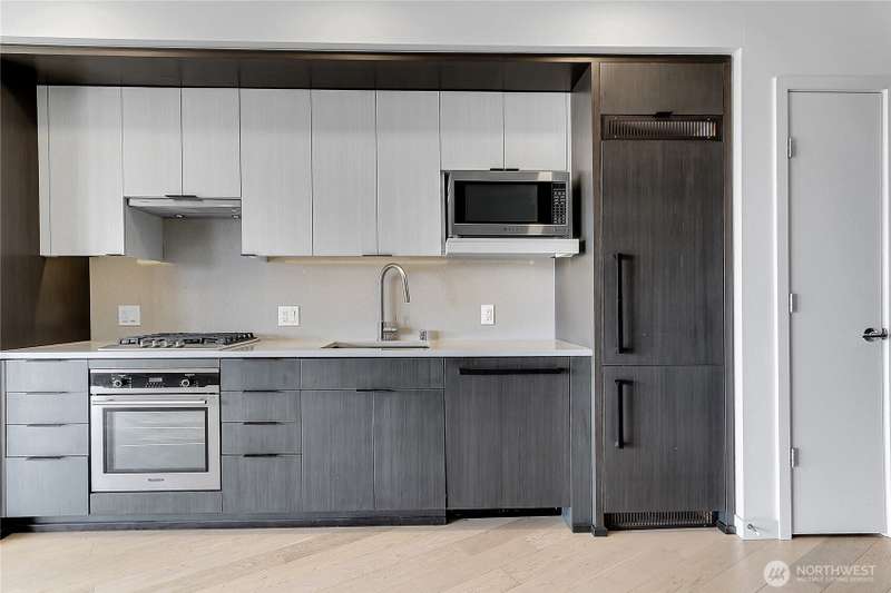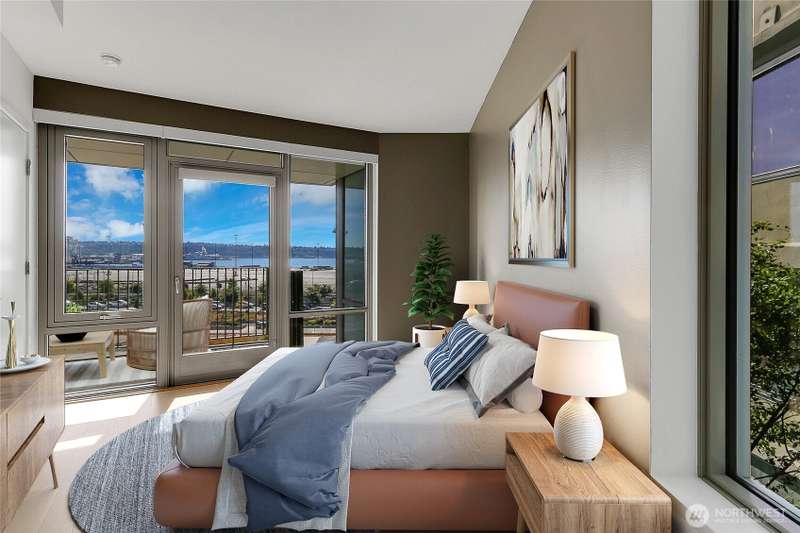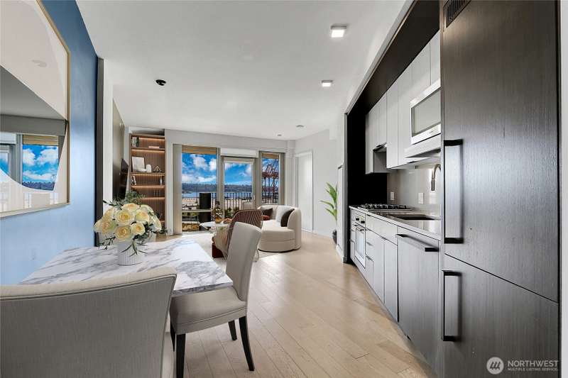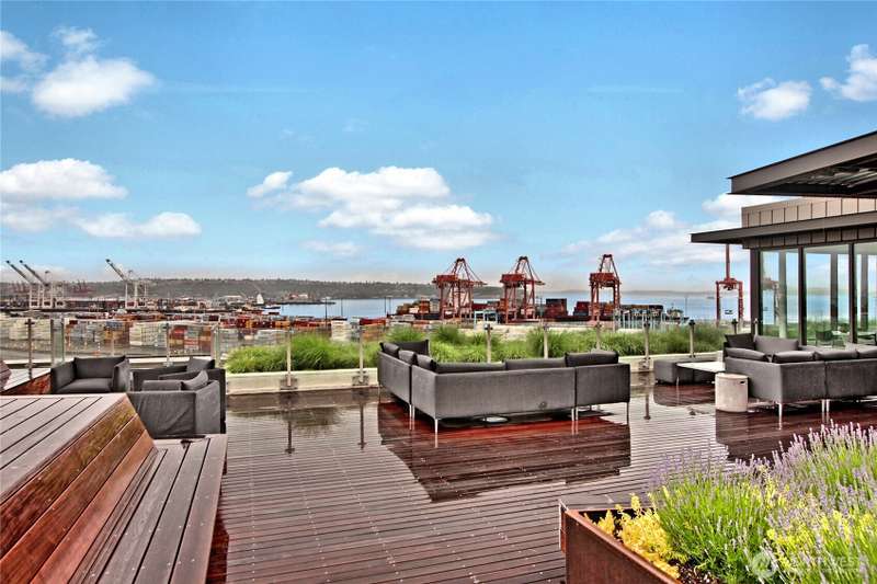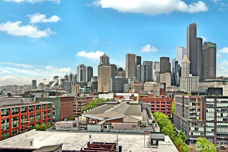 Experience iconic Pioneer Square living in this modern 1-bedroom home within the historic Johnson Plumbing Building. Sleek designer finishes, premium appliances with gas range, quartz countertops, and hardwood floors throughout. Enjoy unobstructed Puget Sound views from your spacious deck accessible from both the living room and bedroom. Floor-to-ceiling windows, A/C, and a full-sized washer/dryer complete the home with 1 parking spot. Luxury amenities including a 24/7 concierge, fitness center, and a rooftop deck with 360° views. Located next to Lumen Field, Gridiron is steps from Seattle’s best dining, entertainment, waterfront trails, with easy access to Pike Place Market, Link Light Rail, train station and major freeways.