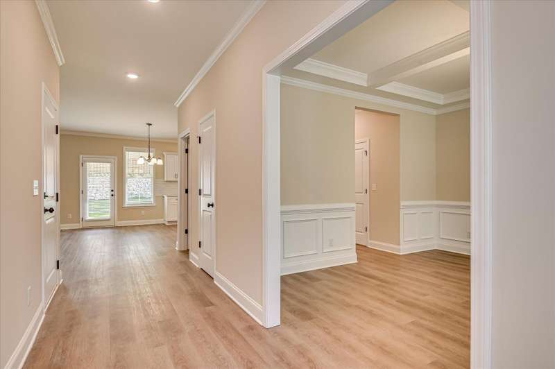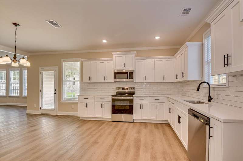 Fabulous new construction in Baldwin Place (off Columbia Road). Featuring 4 large bedrooms (all upstairs) and 2.5 baths. LVP throughout except stairs, baths and laundry. Great open plan for today's living. Formal dining room with coffered ceiling, huge kitchen with quartz counters, backsplash and two pantries! Kitchen open to great room which features electric fireplace and access to large covered patio. Upstairs you will find all the bedrooms plus the laundry. Owner bedroom with tray ceiling and huge closet. Owner bath w/quartz counters, large tile floor, separate shower, garden tub and separate toilet room. Hall bath also with quartz counters and dual vanities. Smooth finish ceilings up and down. Large secondary bedrooms with ample closet space. Outside with privacy fence w/gate and extra wide driveway to accommodate extra car. Sodded front and back and with mini blinds!