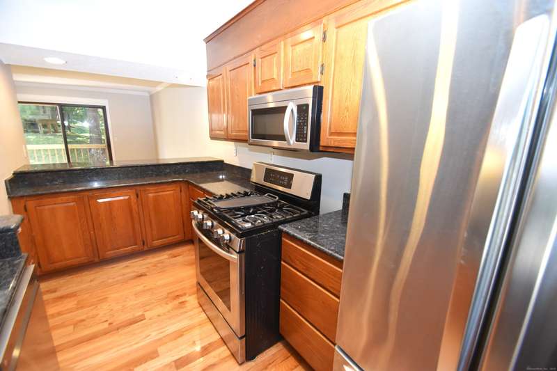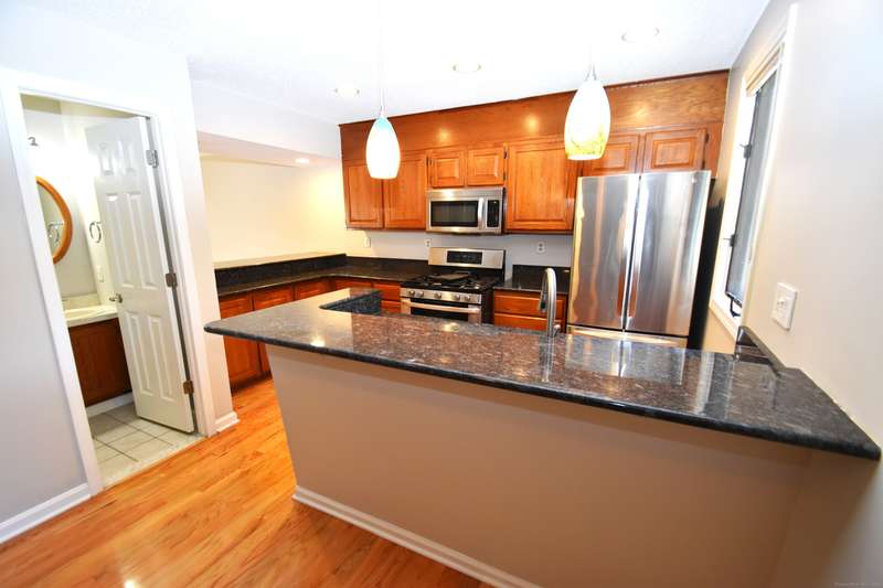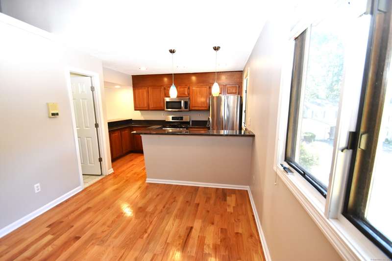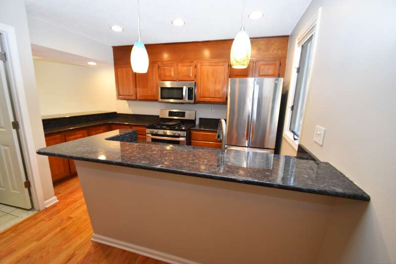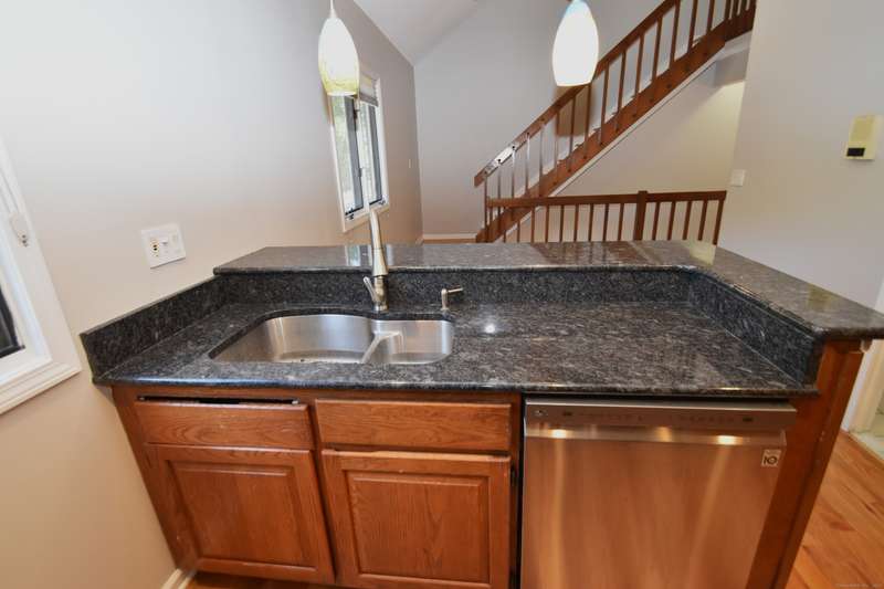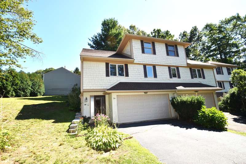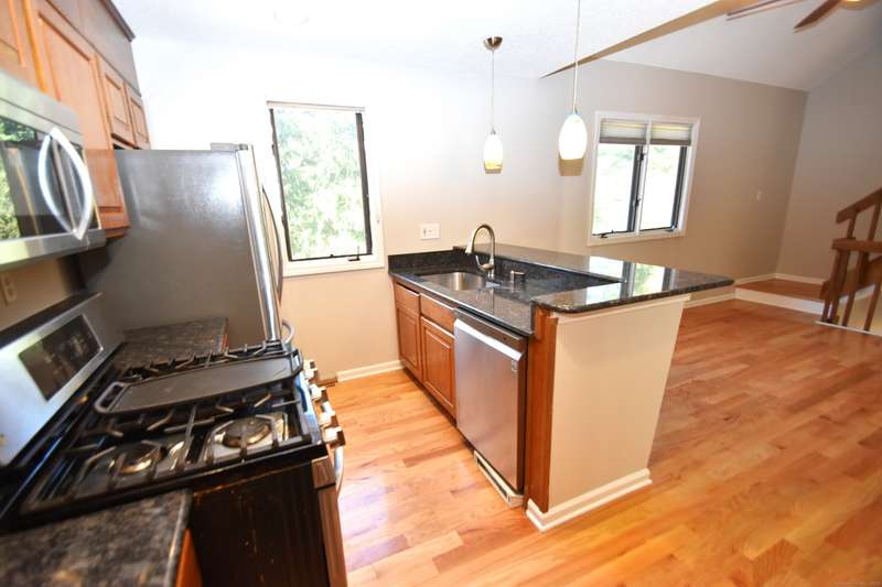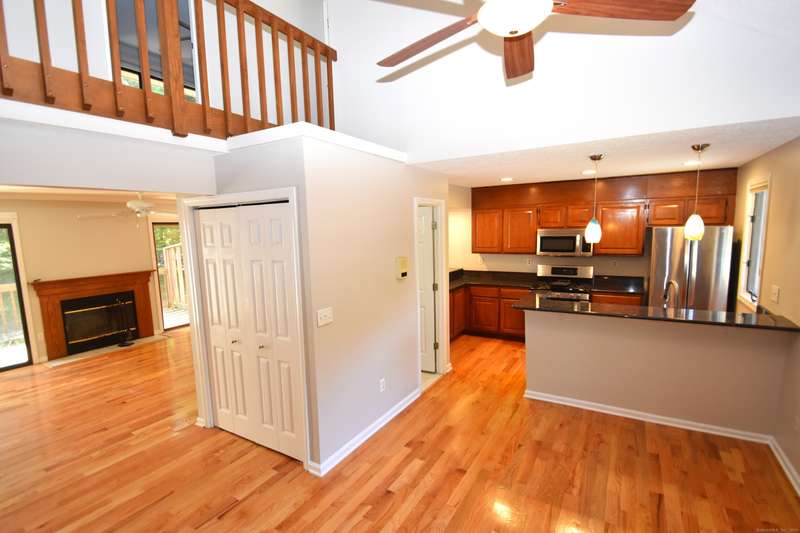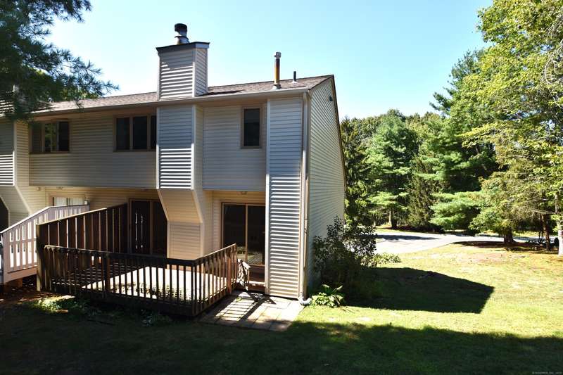 Discover the charm of The Woods Condominium Complex, conveniently located just off New London Turnpike. This end-unit condominium, nestled in a quaint cul-de-sac, offers a thoughtfully designed layout. The open eat-in kitchen features granite countertops, a breakfast bar, and an island, seamlessly connected to a dining area with a cathedral ceiling. The spacious living/family room boasts a cozy fireplace and dual sliders that open to a rear deck, perfect for relaxing or entertaining. The upper level includes a large primary bedroom with an ensuite bathroom and a second bedroom, providing comfortable living spaces. The lower level is equipped with a laundry area and a versatile den. Situated just minutes from Downtown Glastonbury and Country Farms, this property combines convenience with serene living.