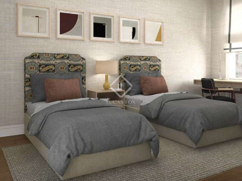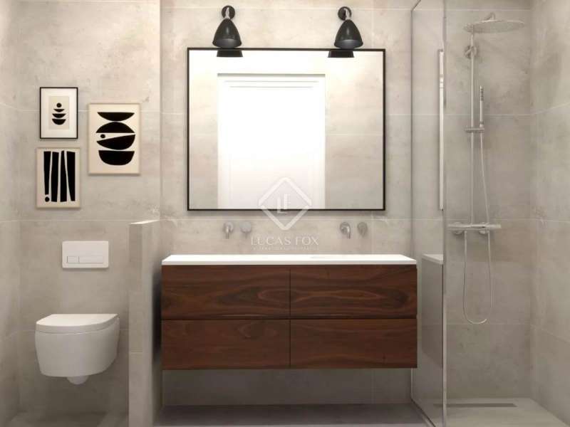 This new development is strategically located on the exclusive Plaza de Bilbao, in the Romantic Area of San Sebastián. The emblematic building, the former Chamber of Urban Property, has been fully refurbished with a concrete structure, but maintaining its beautiful and classic original curved stone façade and modernist entrance, combining the elegance of a building from the beginning of the 20th century with the comforts of the 21st century. The development has a total of 17 apartments, all of them exterior-facing with large windows and views towards Plaza de Bilbao. The building has a commercial premises on the ground floor, storage rooms and there is the possibility of finding a parking space just 50 metres away. The property is very bright as it has two balconies overlooking the Plaza de Bilbao and also a large balcony overlooking the Calle Alfonso VIII, a pedestrian street with quiet terraces, which connects the square with the Catedral del Buen Pastor. The apartment has a surface area of 110 m² built and 83 m² usable, distributed in a spacious living-dining room, with access to two balconies with frontal views of the fountain in Bilbao square and two double bedrooms, with built-in wardrobes. The main bedroom has an en-suite bathroom and a bay window overlooking Alfonso VIII street. In the corridor there is another complete bathroom. There is the possibility of a third service bedroom which connects with a small laundry room leading to the courtyard. The refurbishment is being carried out with high quality materials and installations and will have thermal-acoustic insulation throughout. The architecture and engineering project, as well as the construction management, oversee one of the most prestigious companies in the Basque Country, and the main contractor is one of the best Basque construction companies, specialized in this type of rehabilitation. Two prestigious designers have participated in the project, ensuring an elegant, contemporary finish. Please contact us for further information.