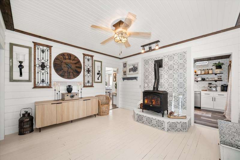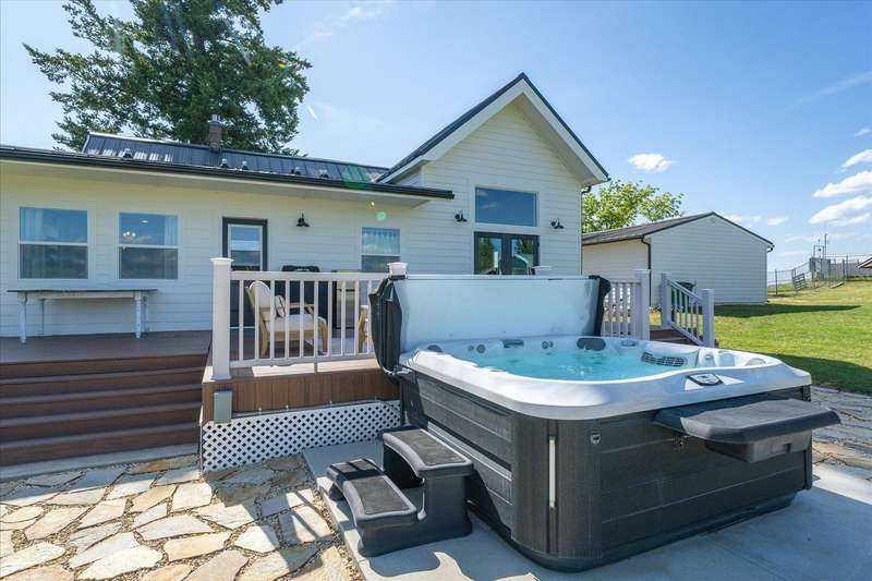 Welcome to this beautifully reimagined modern farmhouse, where timeless charm meets contemporary luxury. Completely remodeled from top to bottom, this flawless & perfect home is situated on 3.4 acres w/ sweeping views & wonderful privacy! Step inside where nothing is left untouched & experience the open & bright floor plan, original hardwood flooring, custom lighting, shiplap, large view windows, wood beams & ceilings, custom tile work, upgraded & NEW kitchen & designer touches throughout. The STUNNING primary suite features cathedral wood ceiling, walk out to deck, dual vanities, freestanding clawfoot tub, walk-in tile shower, walk-in closet & heated tile flooring. The property is a dream with an expansive new deck, hot tub, firepit, Chicken coop, outbuildings, greenhouse, space for animals & an amazing SOLAR Panel system that powers the home! All NEW roof, gutters, plumbing, insulation, windows, house filtration system, water softener, brick on porch, updated electrical, wired for EV charger & so much more!